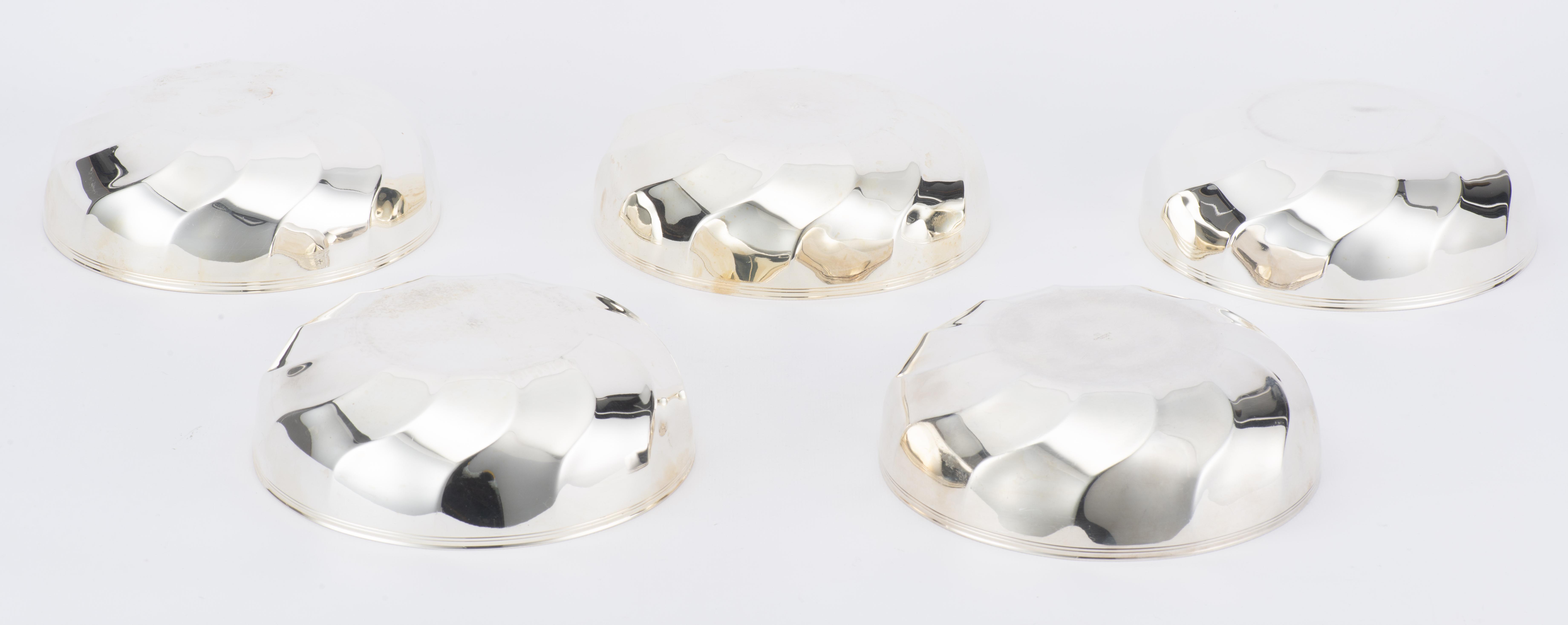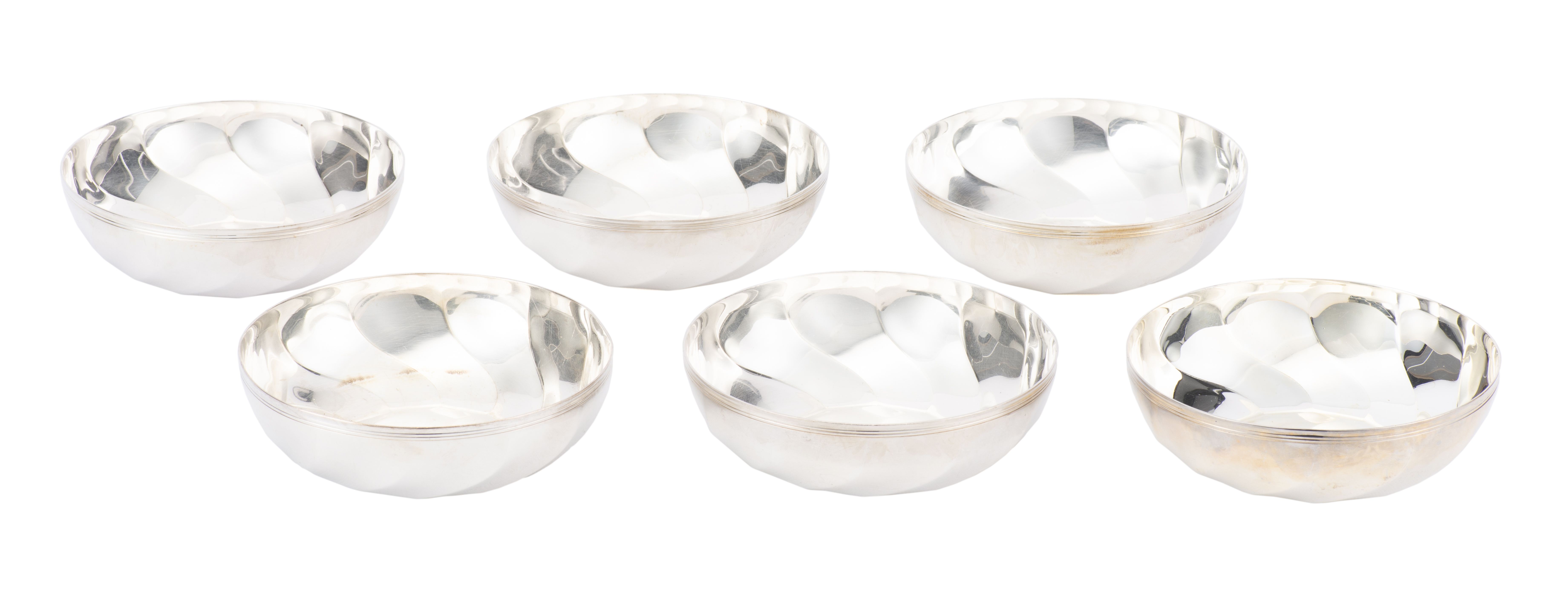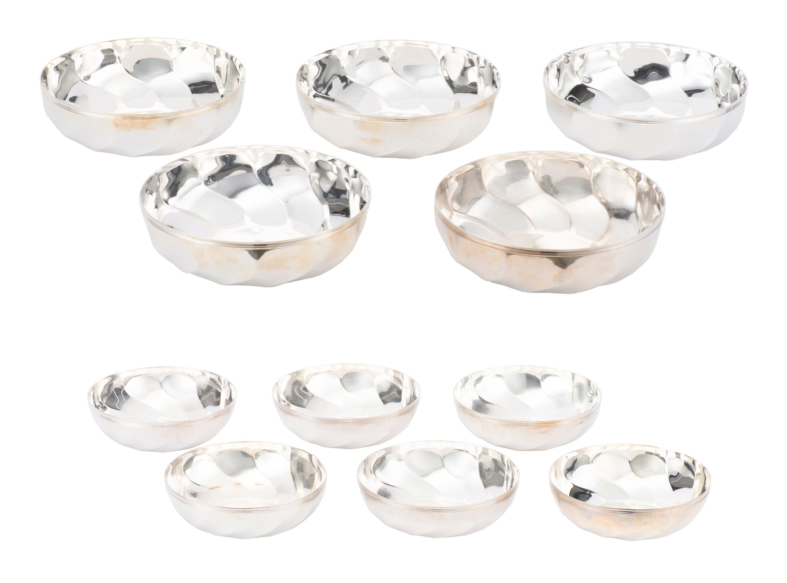 Christofle, suite de 5 petits plats circulaires et 6 bols, à décor de torsade.