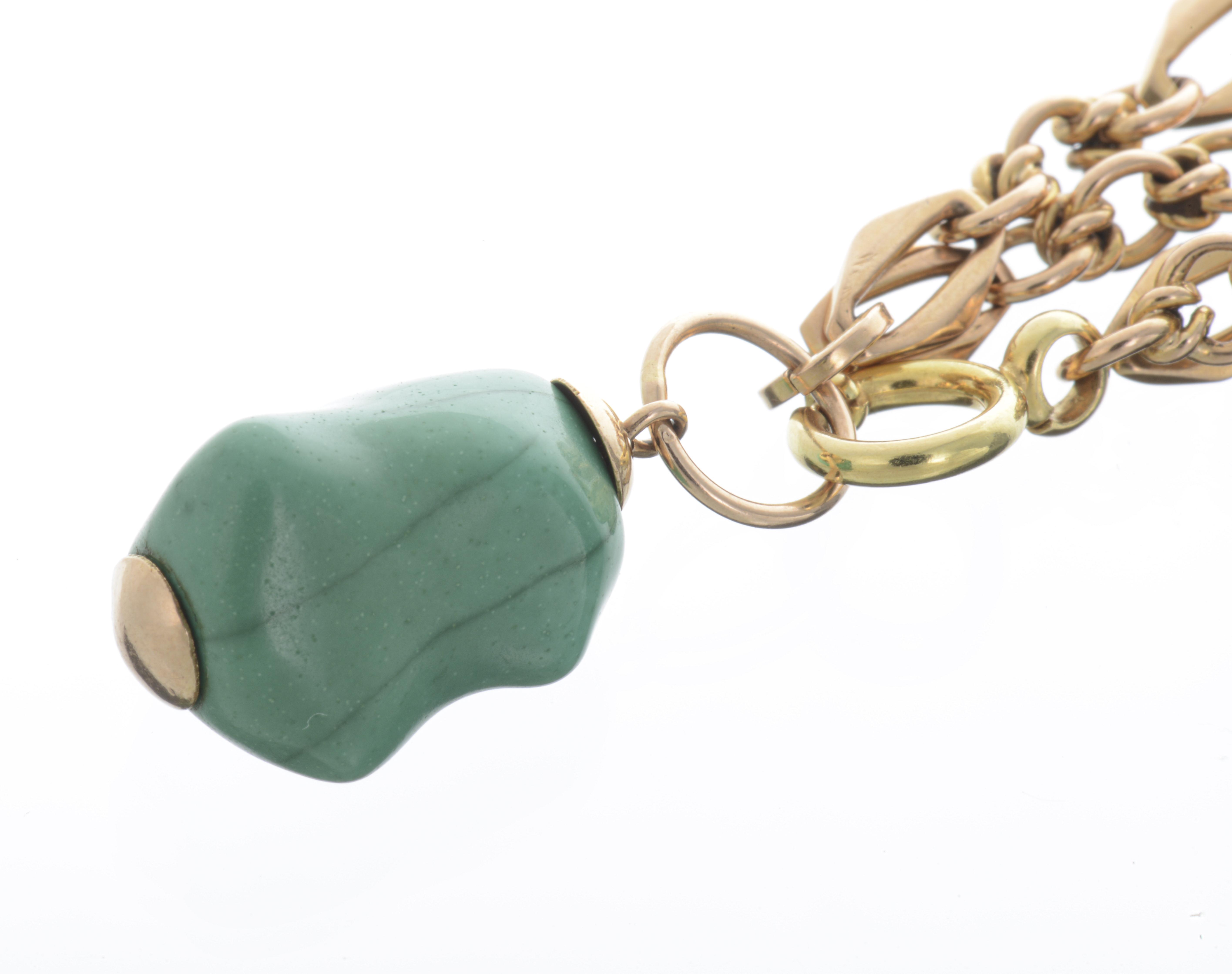 Bracelet en or jaune .750 à 2 chaînes et pendeloque turquoise.