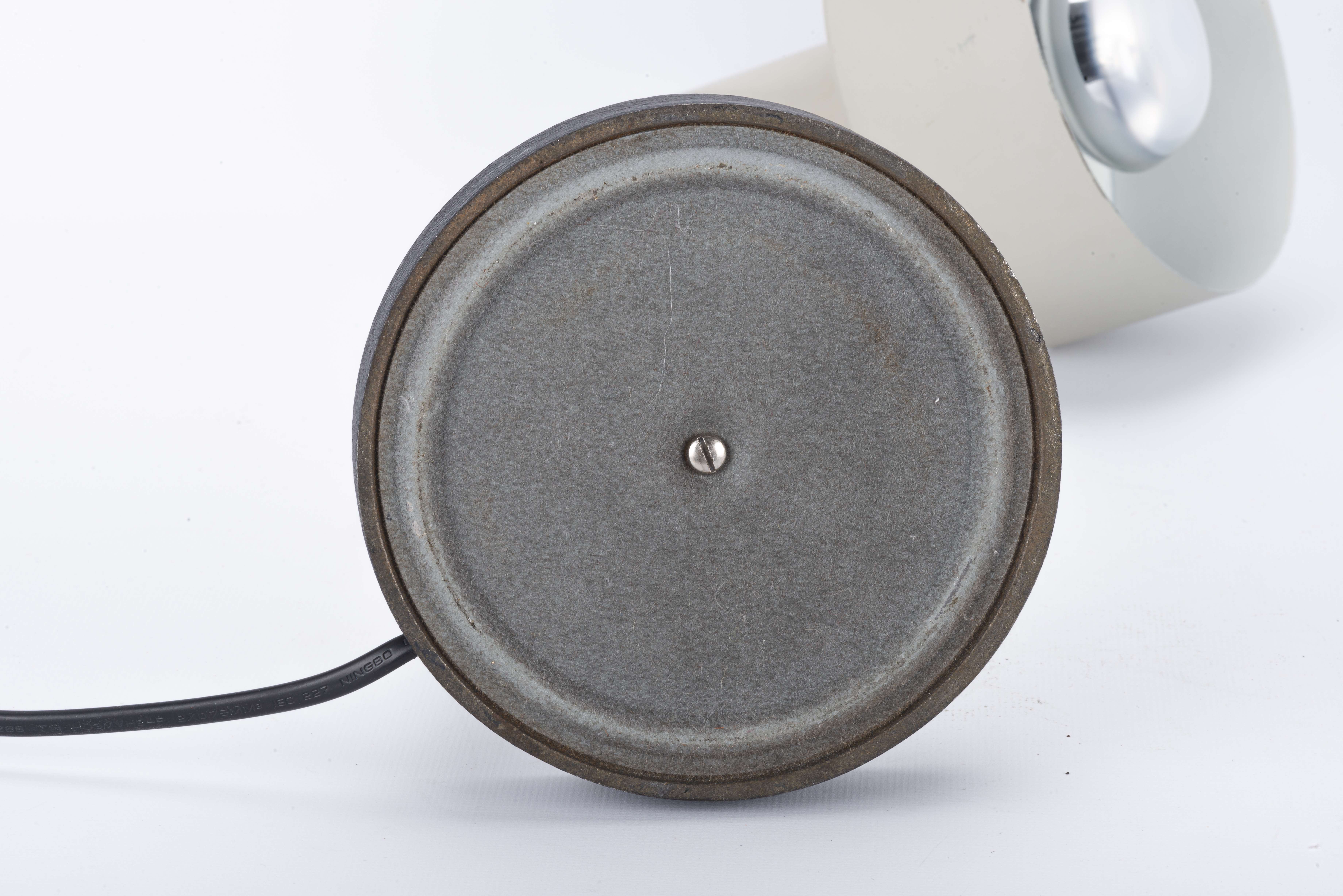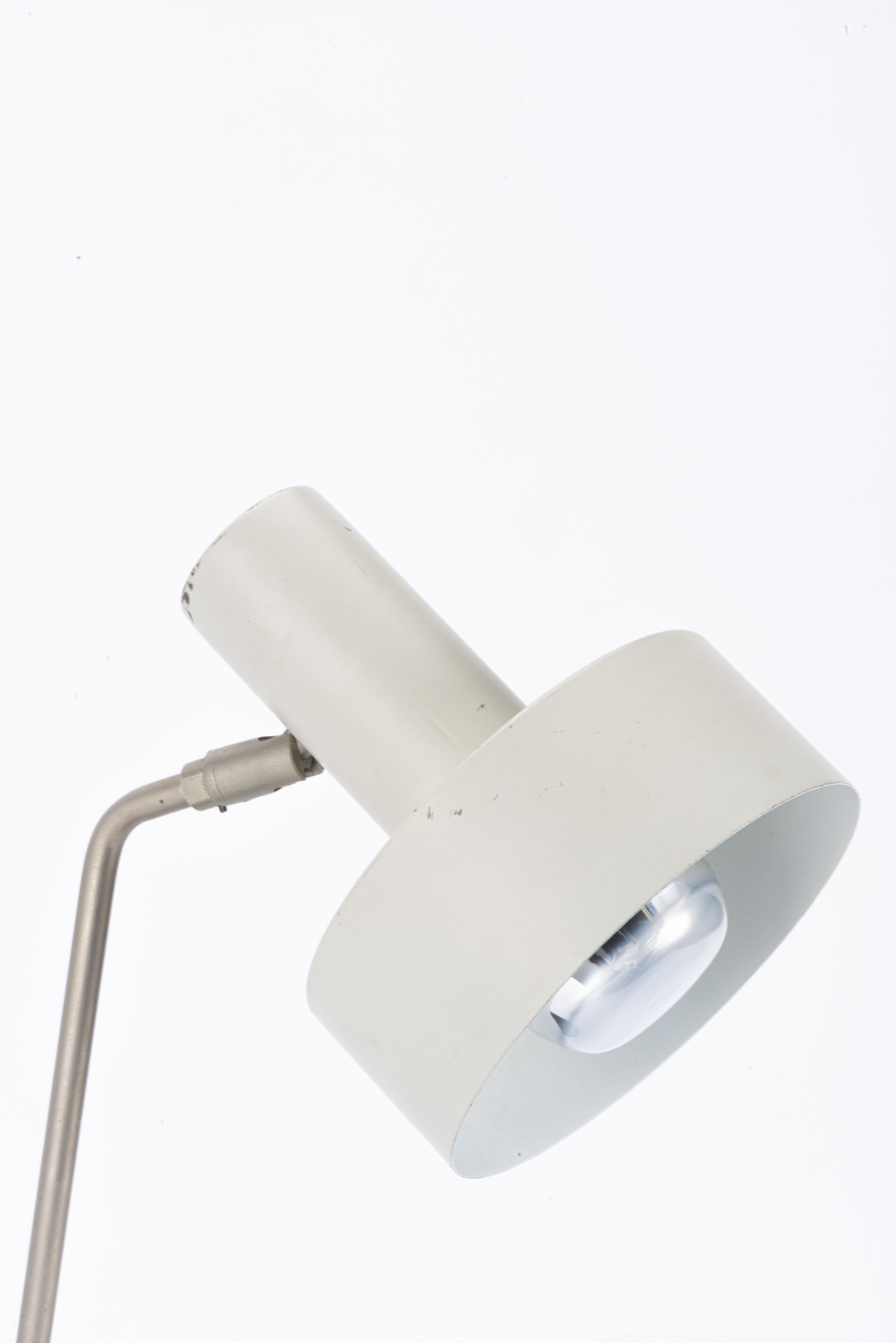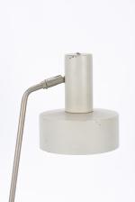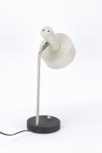 Lampe de bureau, travail italien des années 60 à fût tubulaire articulé en métal et abat-jour en métal laqué gris, socle en fonte.