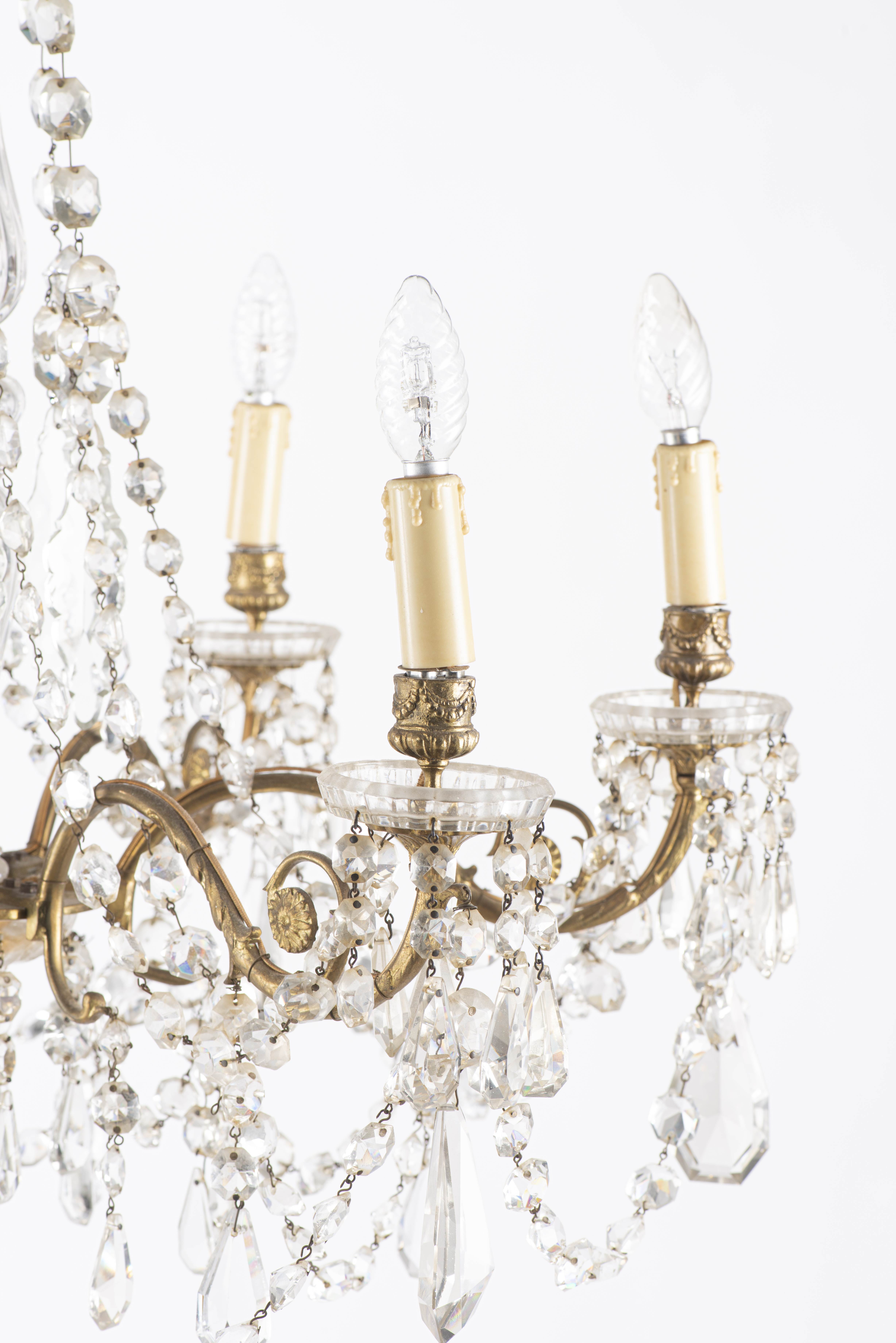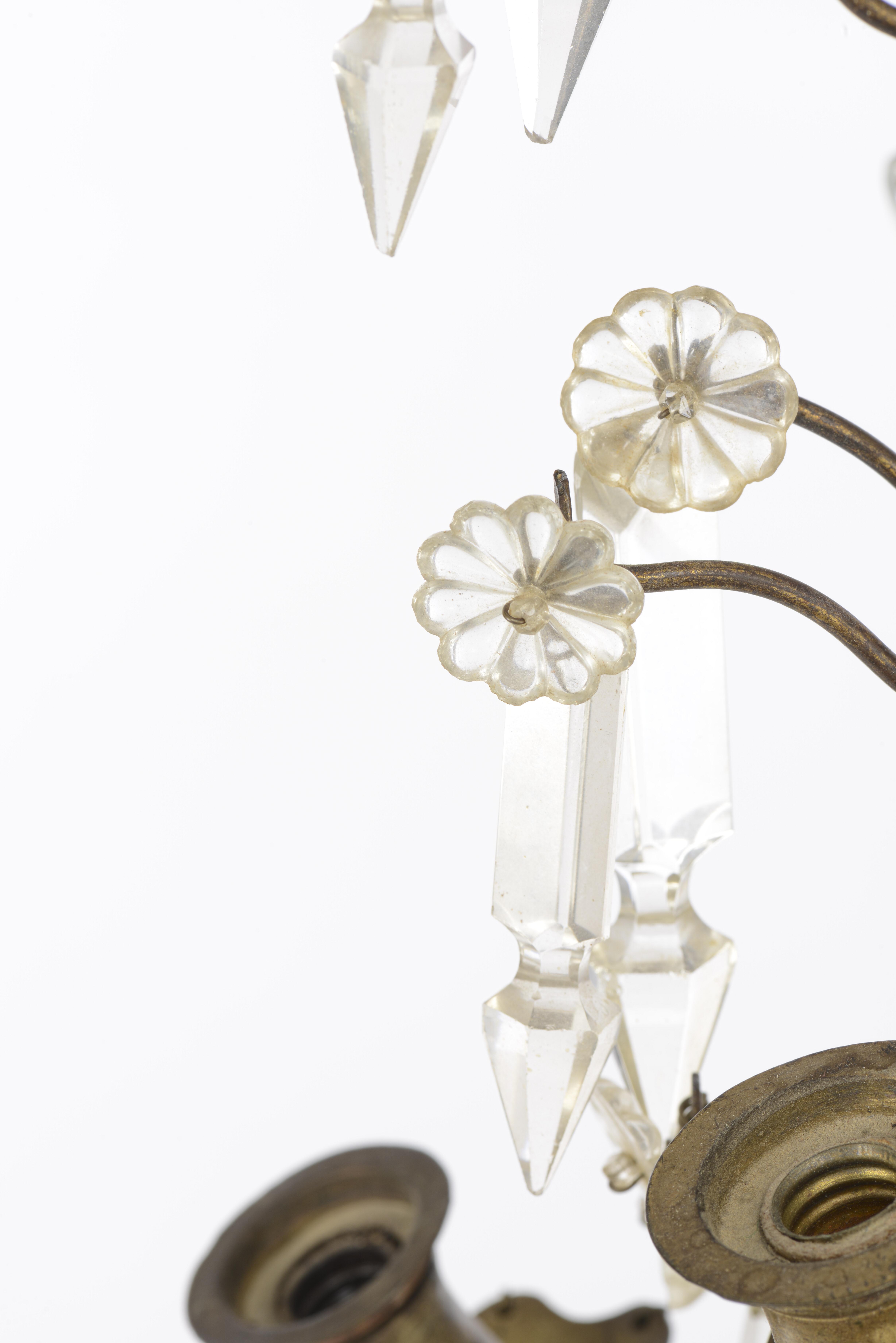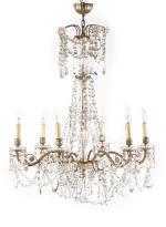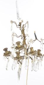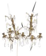 Lustre à pampilles à six feux et paire d'appliques à quatre feux en suite