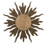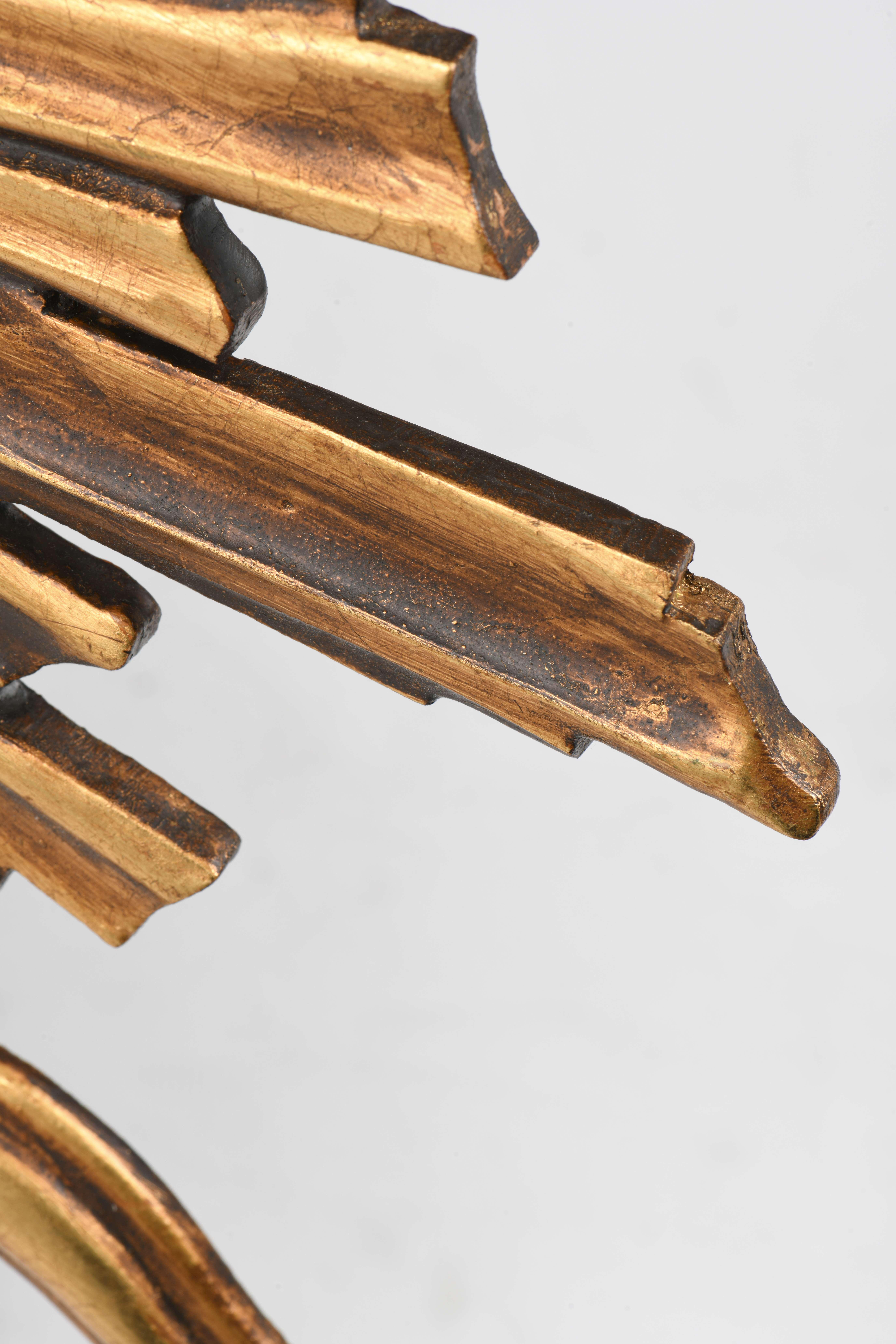 Miroir sorcière à glace déformante et encadrement en bois doré rayonnant.