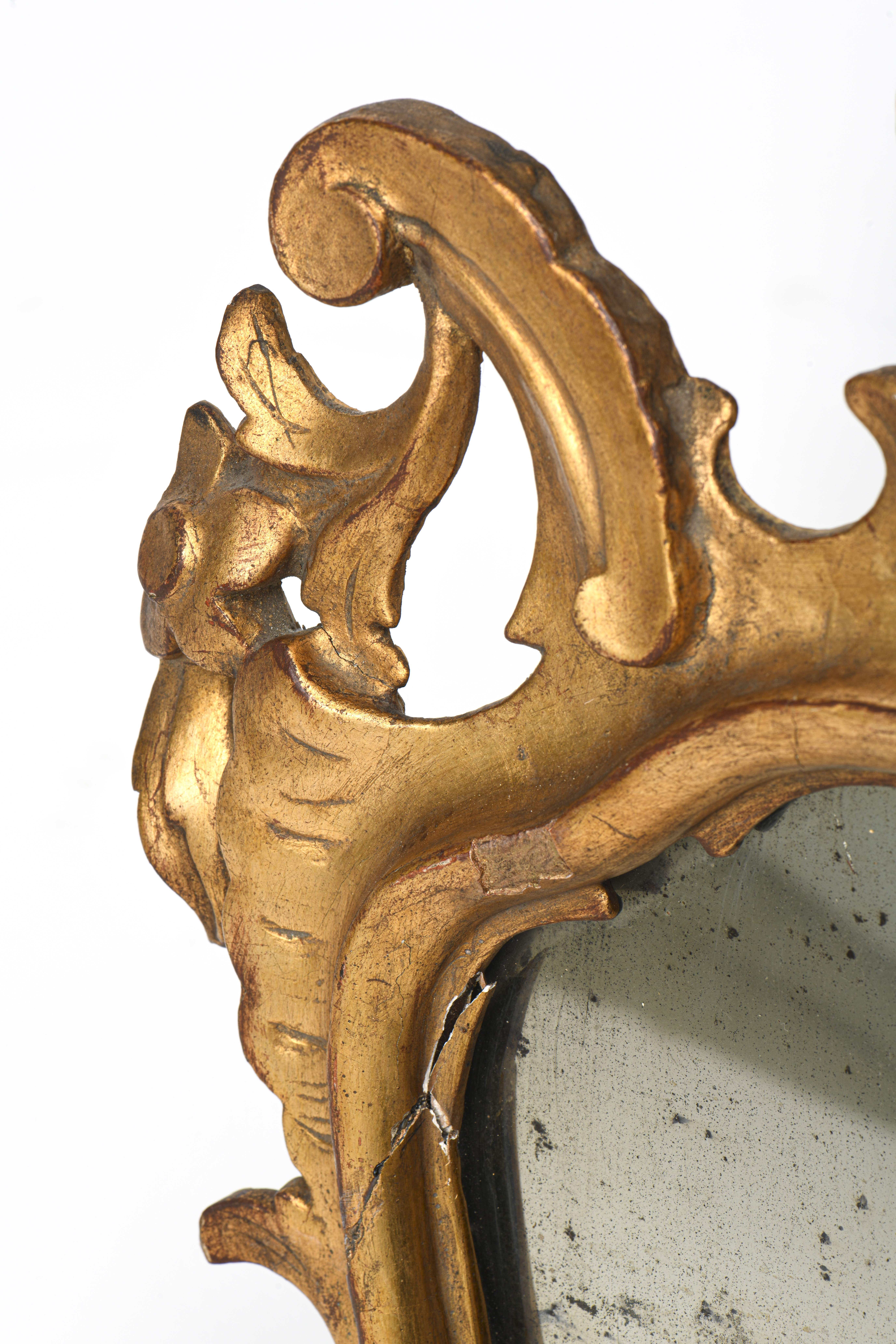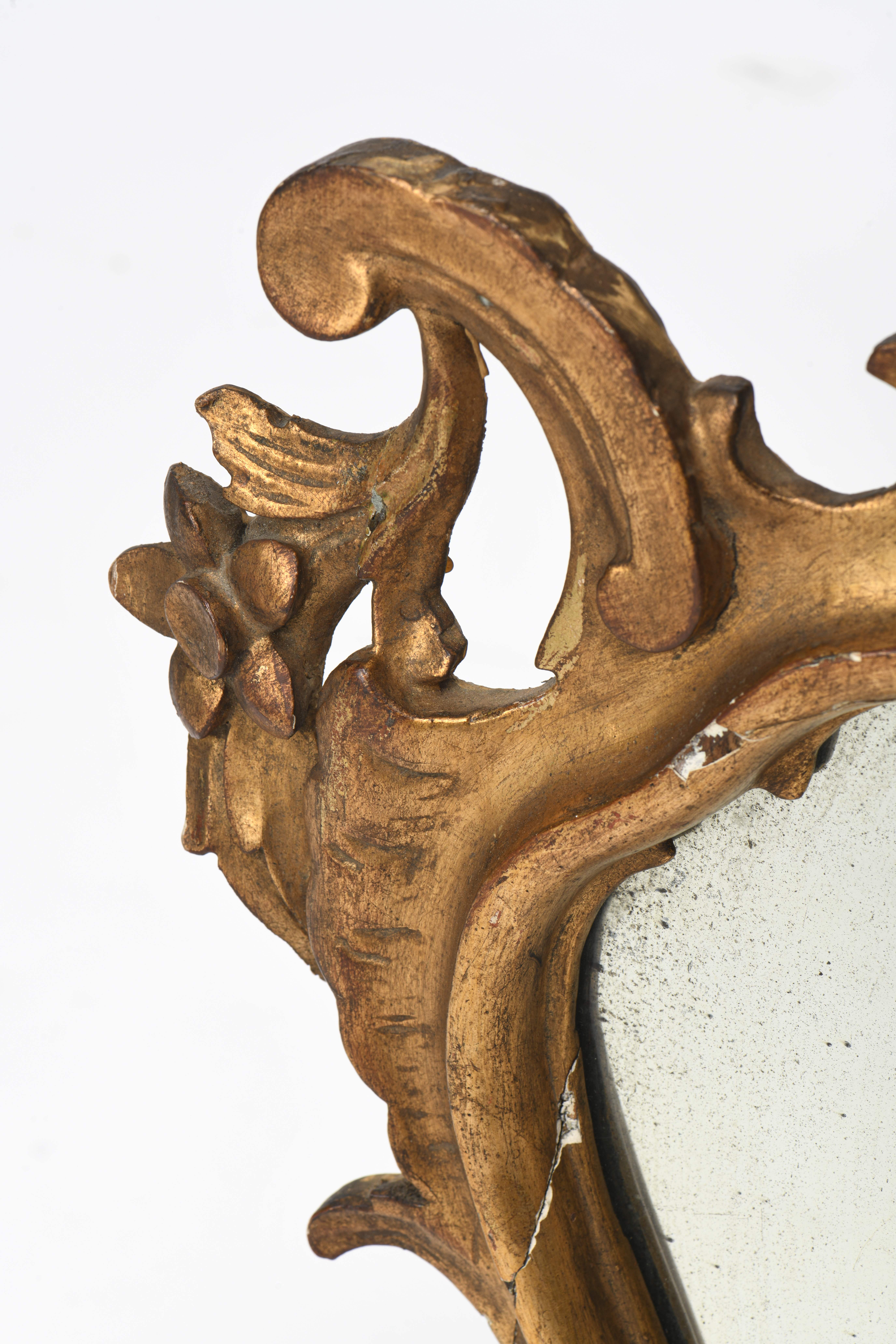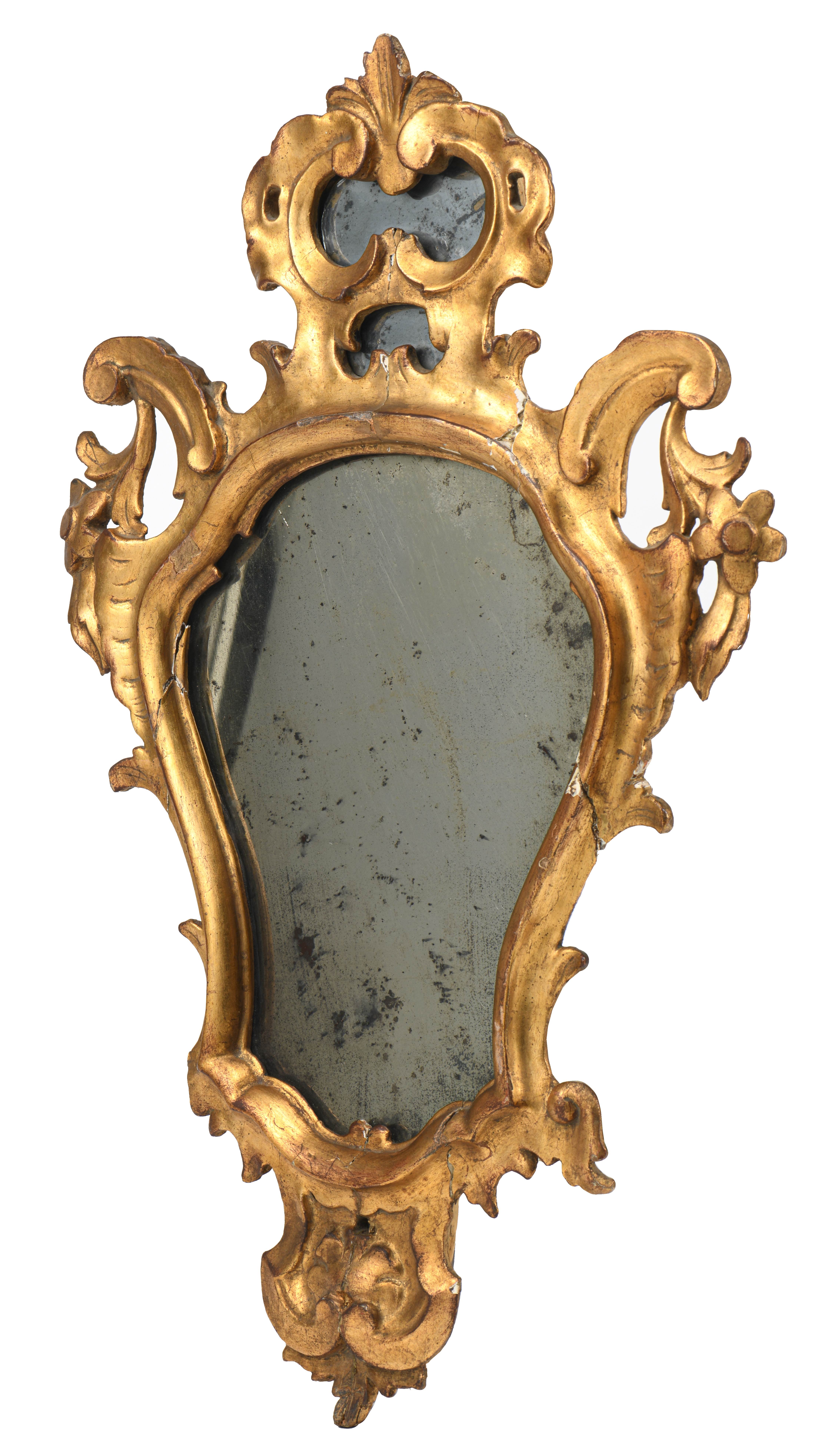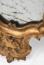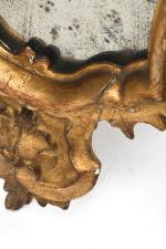 Suite de quatre miroirs réflecteurs en bois et stuc doré, glaces au mercure, époque Louis XV de style baroque XVIIIe.