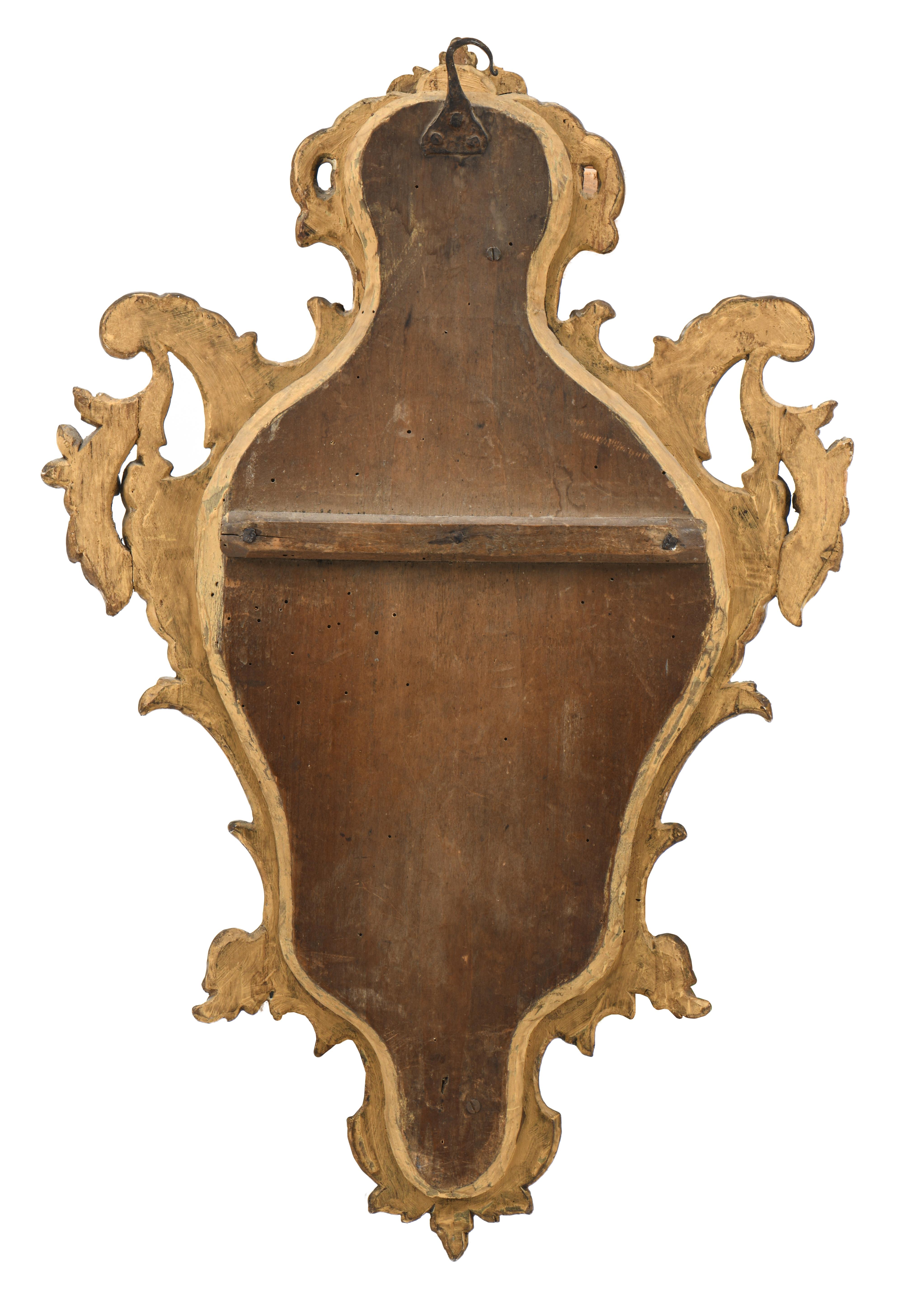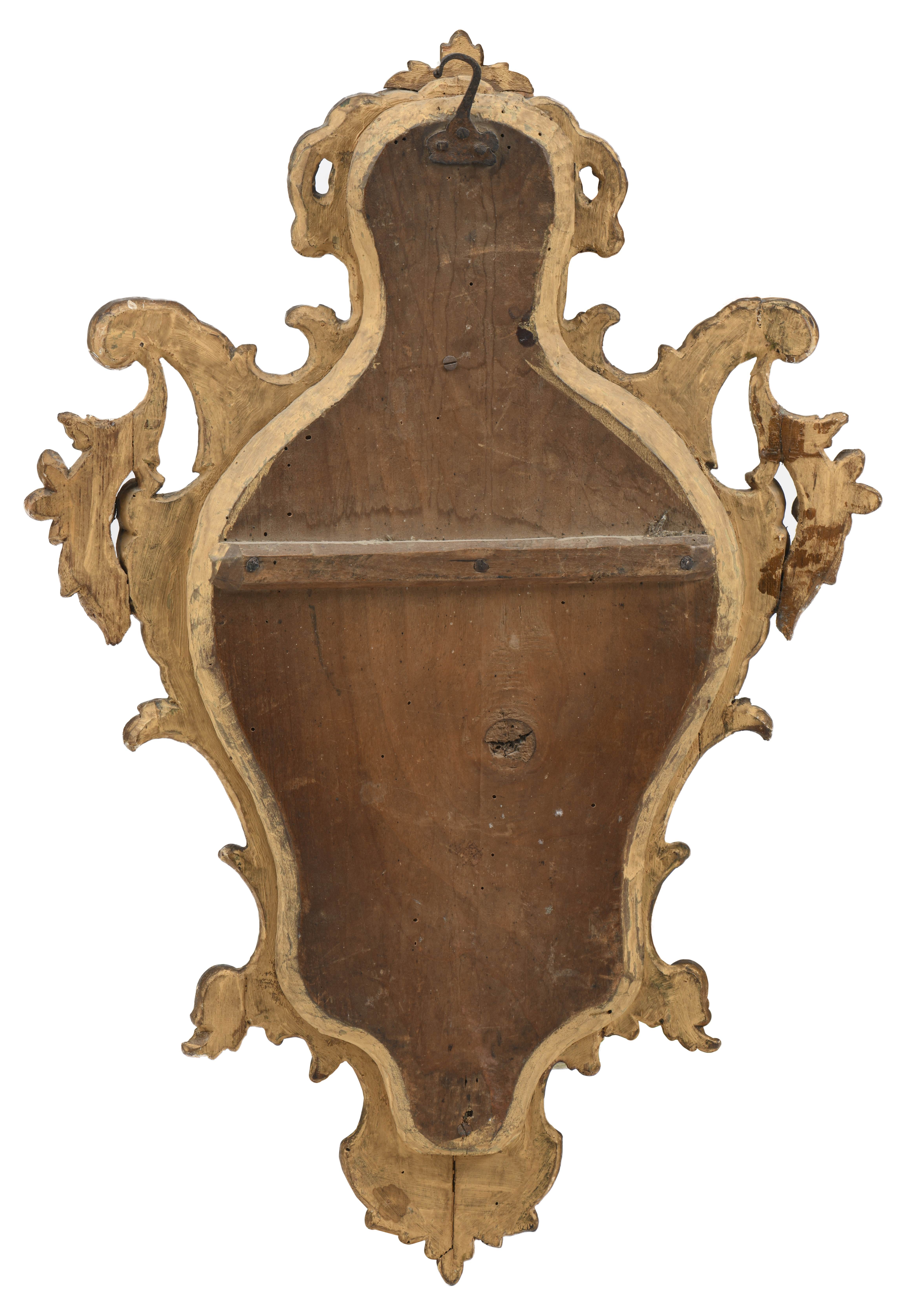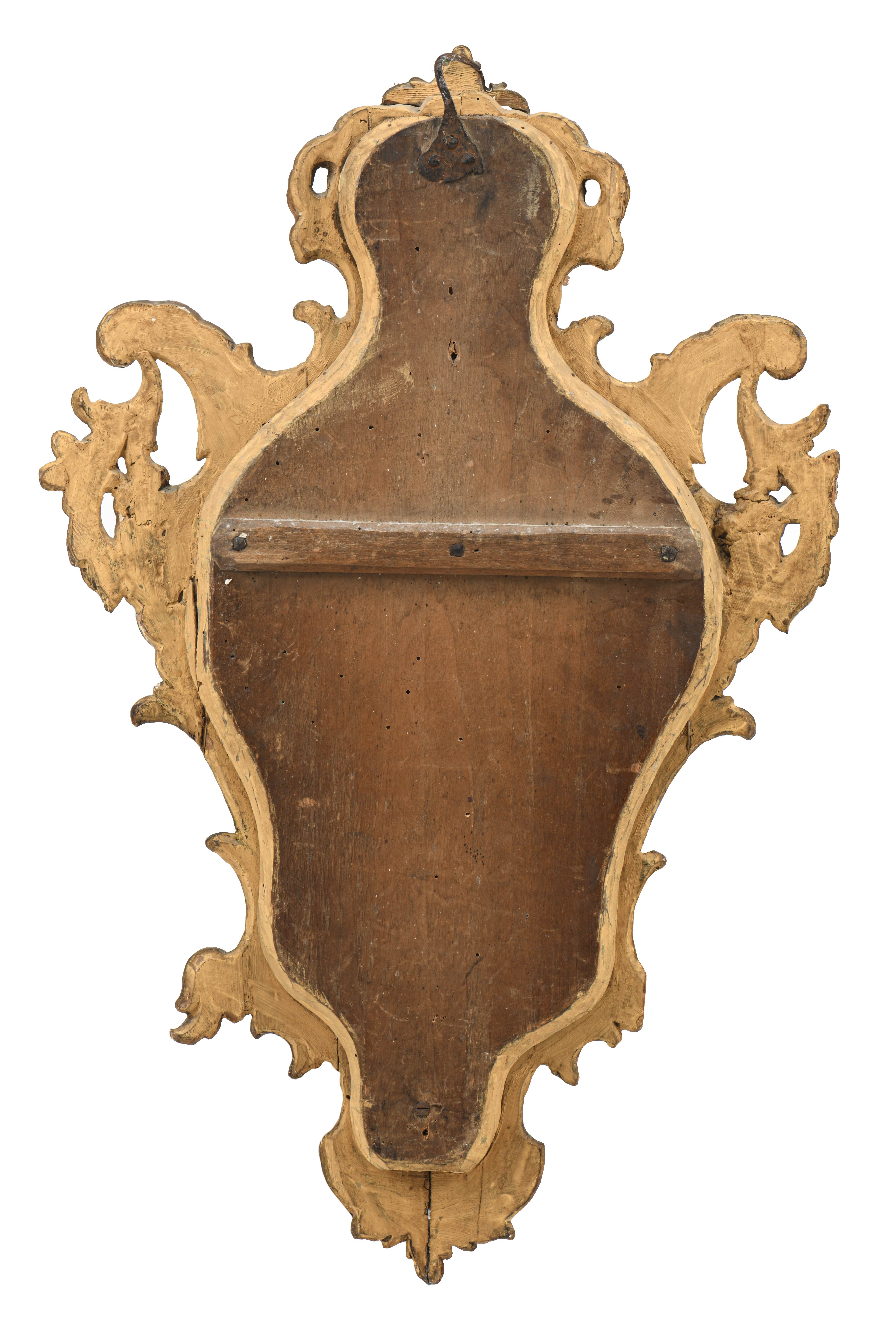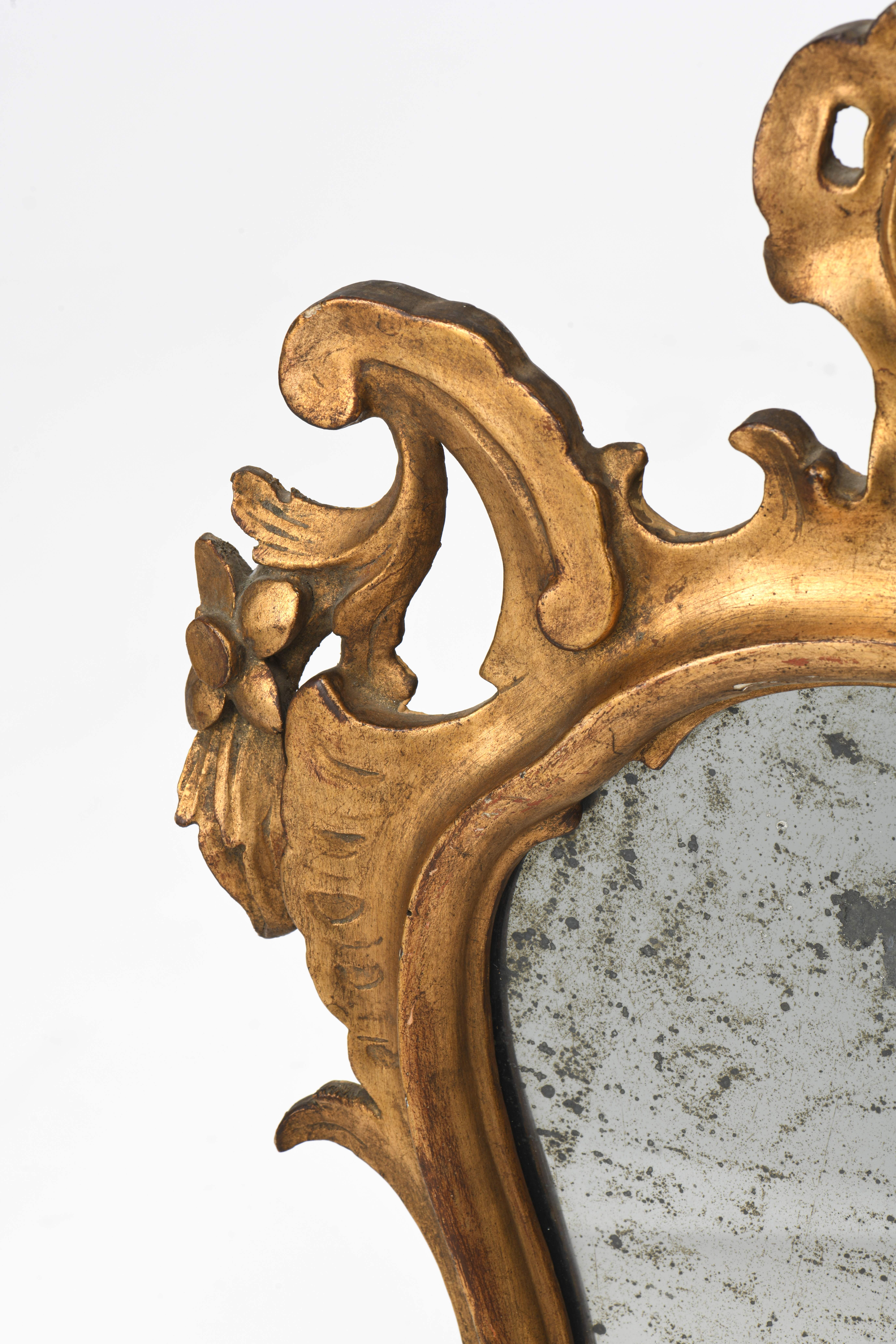 Suite de quatre miroirs réflecteurs en bois et stuc doré, glaces au mercure, époque Louis XV de style baroque XVIIIe.