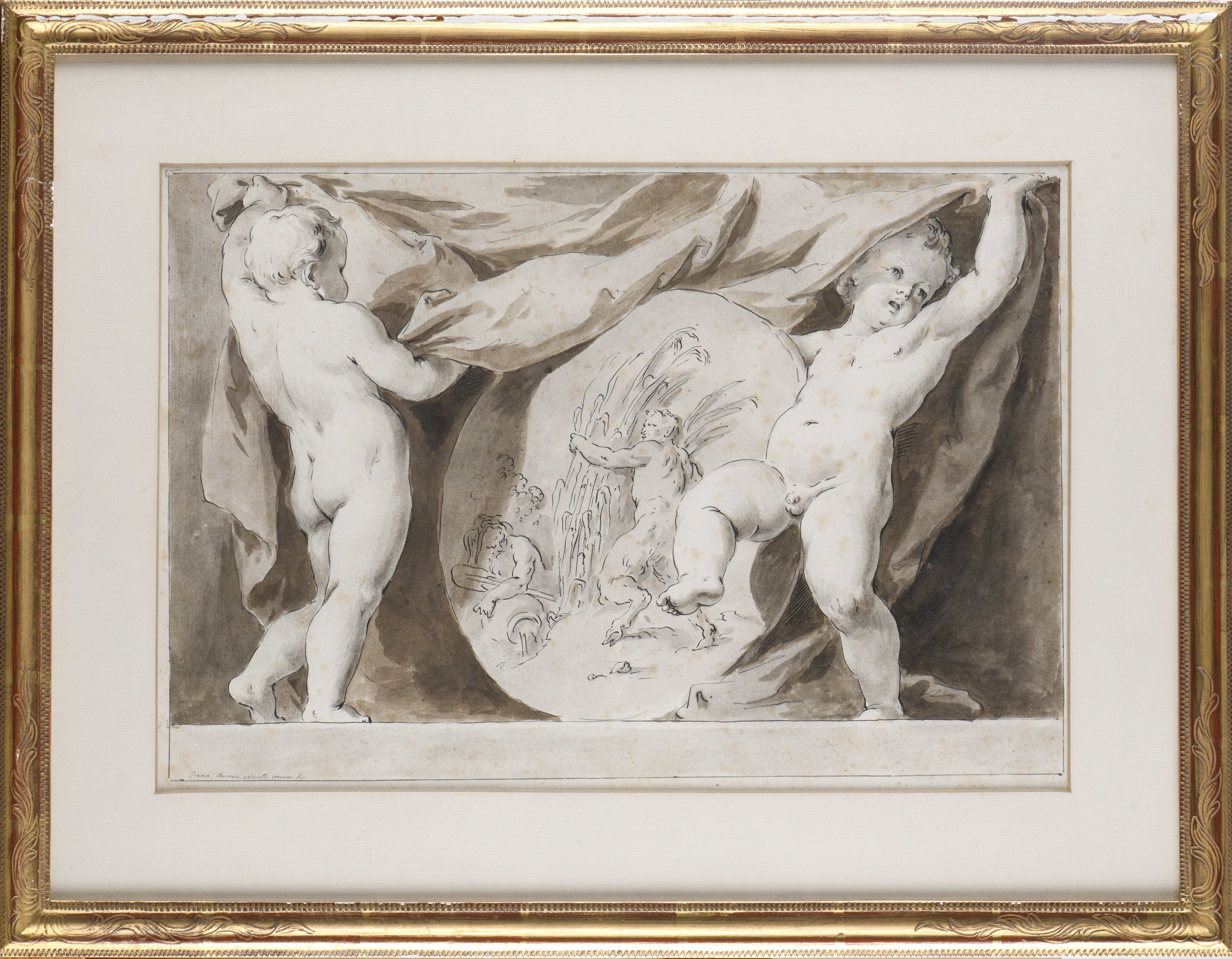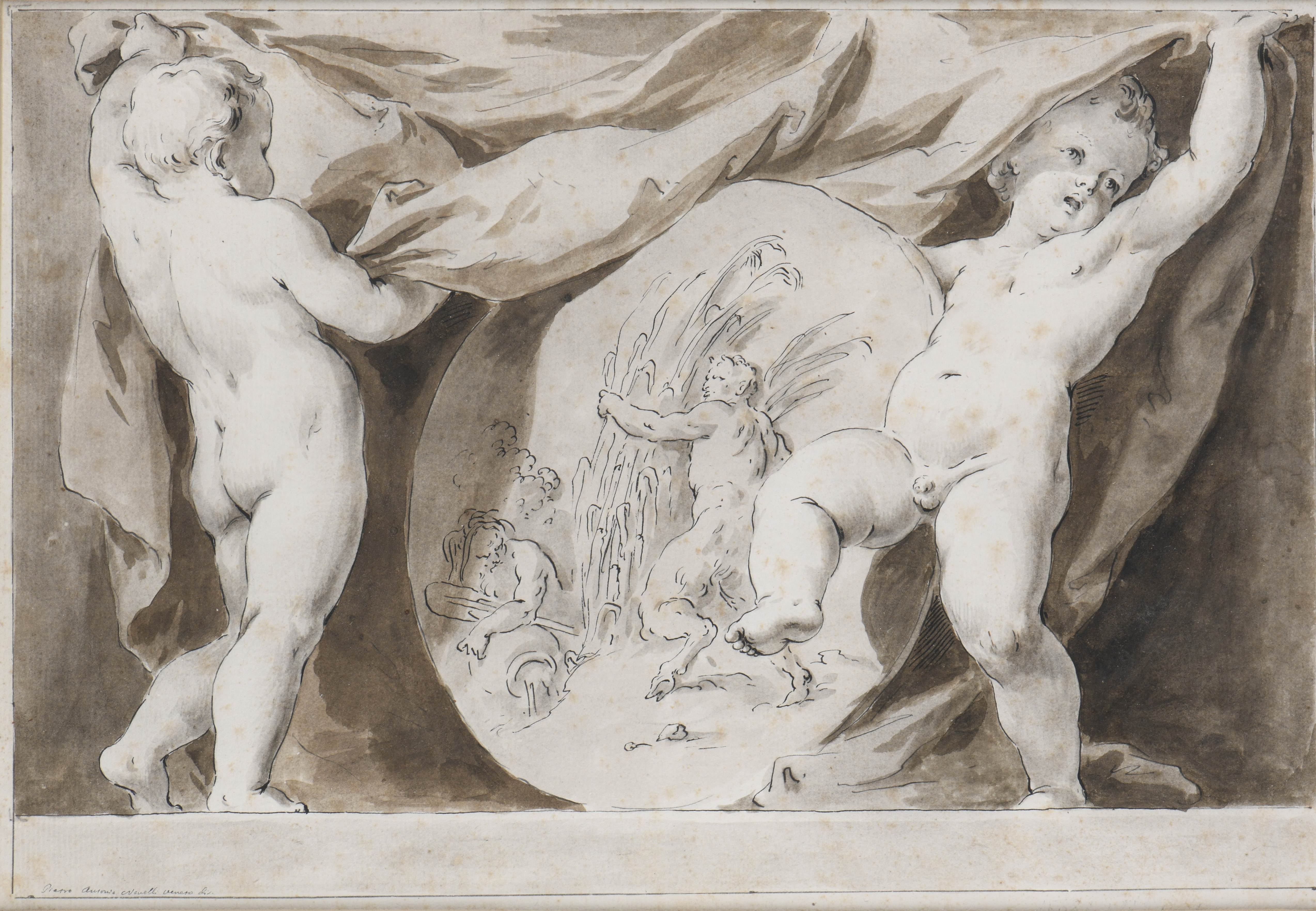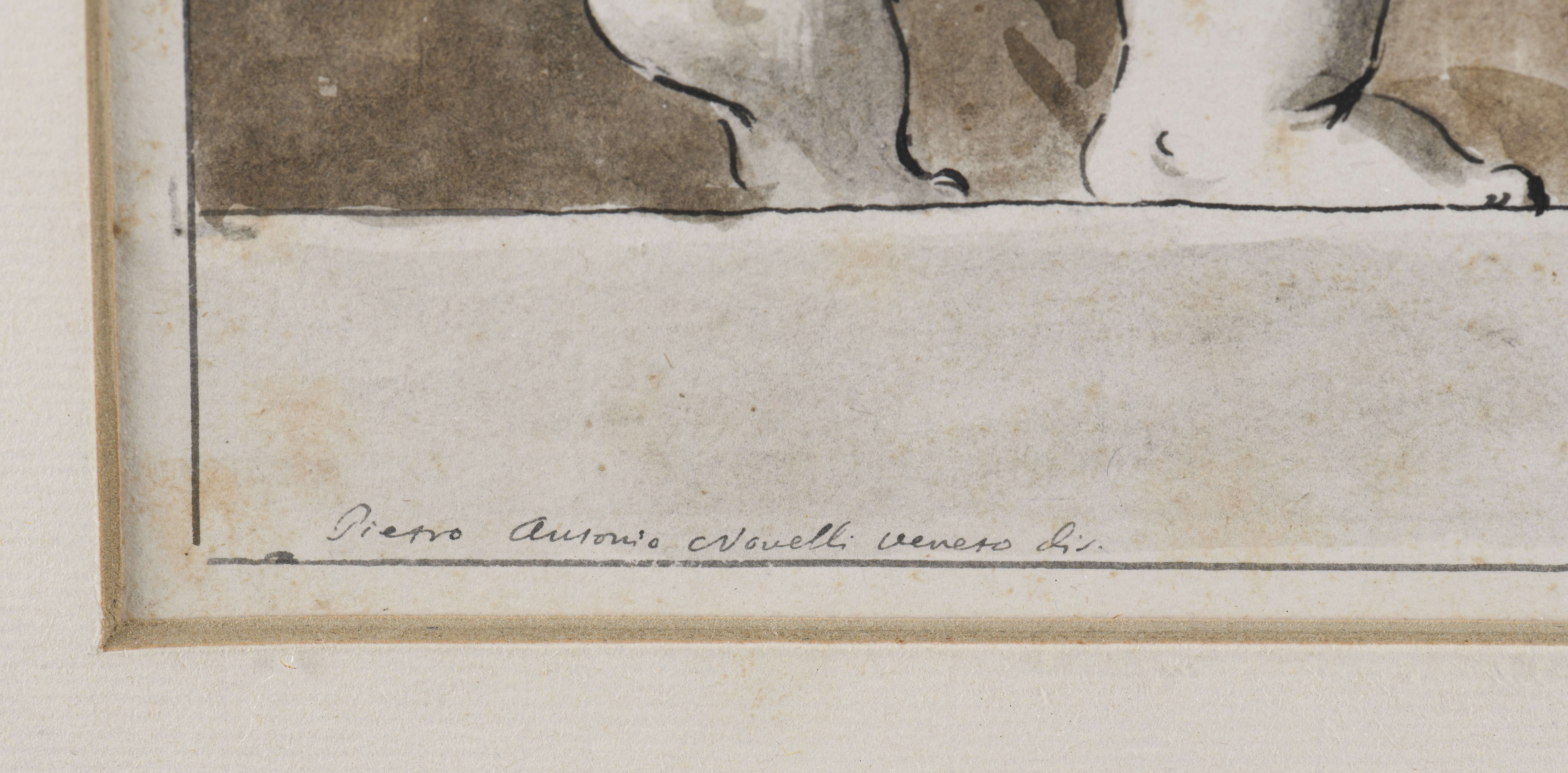 Pietro Antonio NOVELLI (1729 -1804), Scène mythologique et deux bambins, encre et lavis sur papier, signé en bas à gauche.