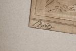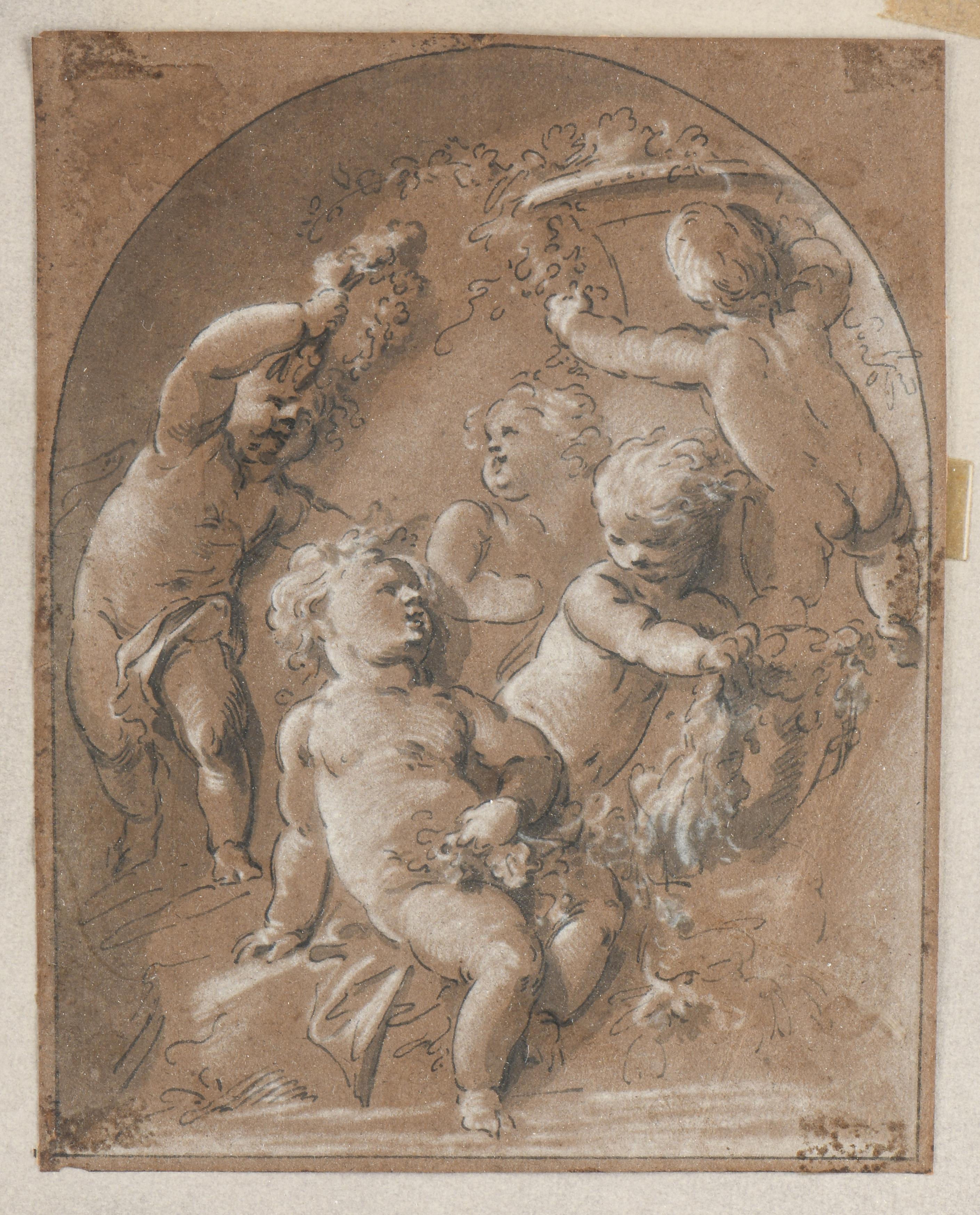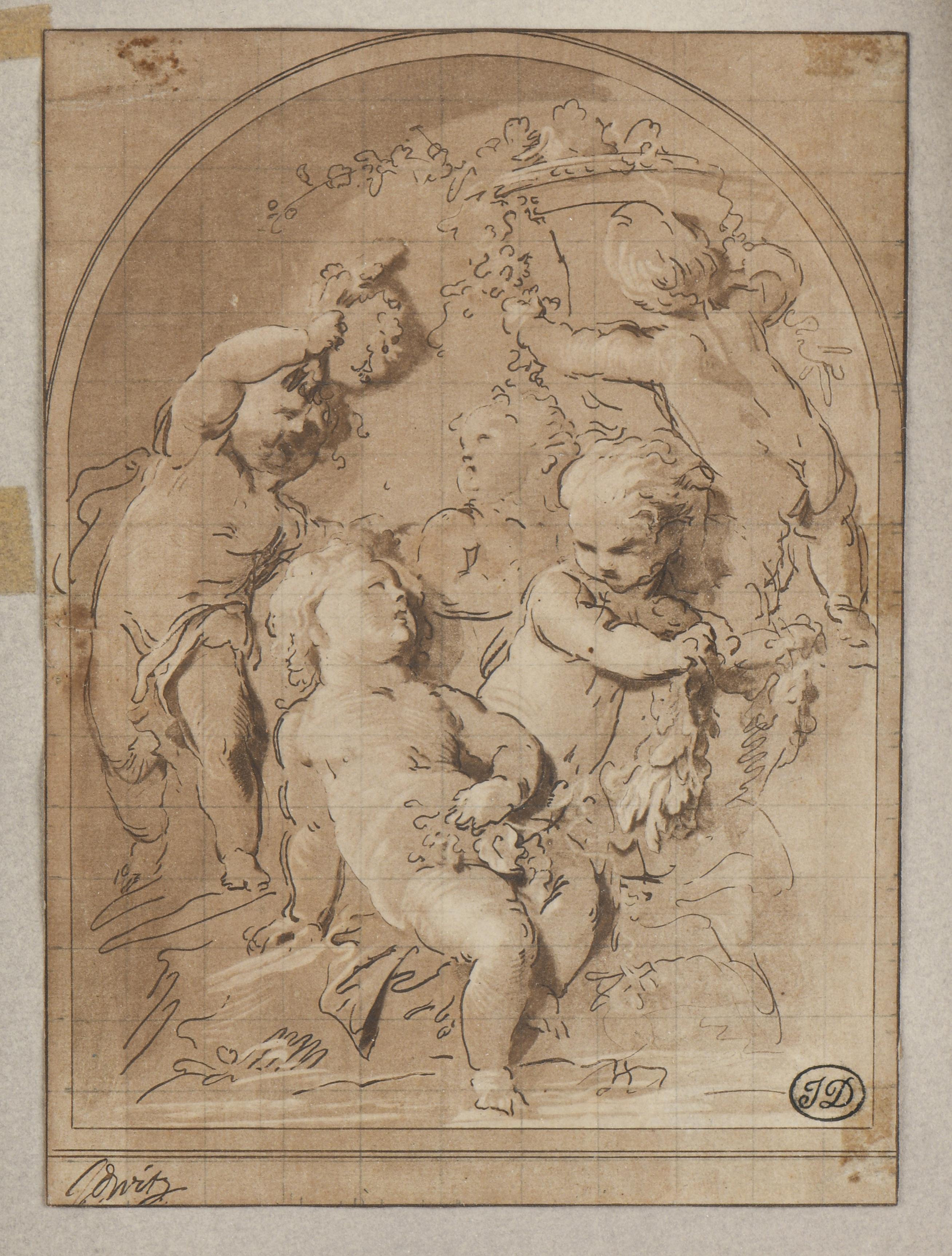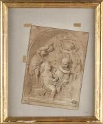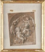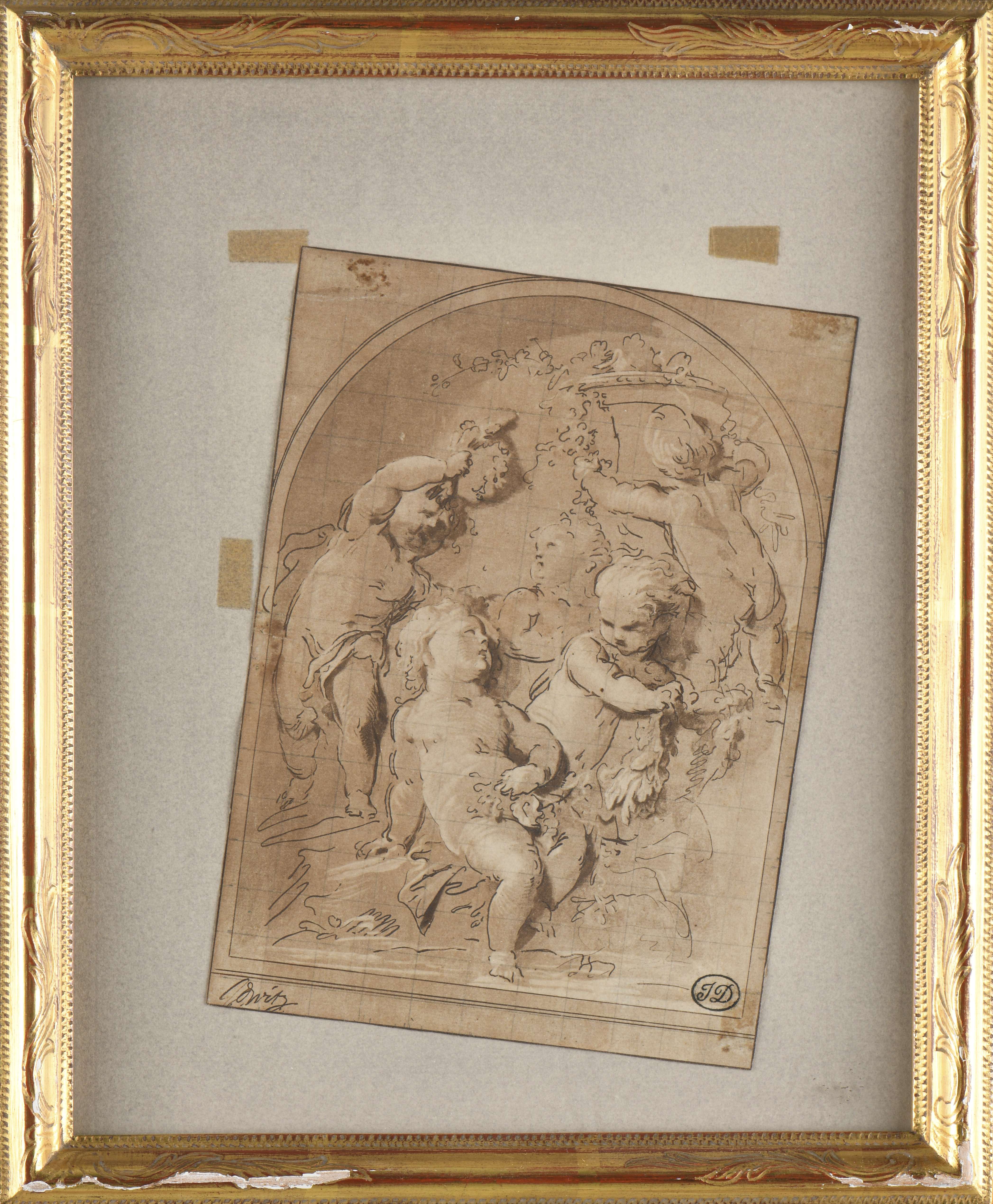 Deux dessins anciens, plume et lavis sur papier rehaussé de blanc, représentant la même composition avec les bambins.