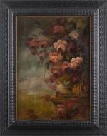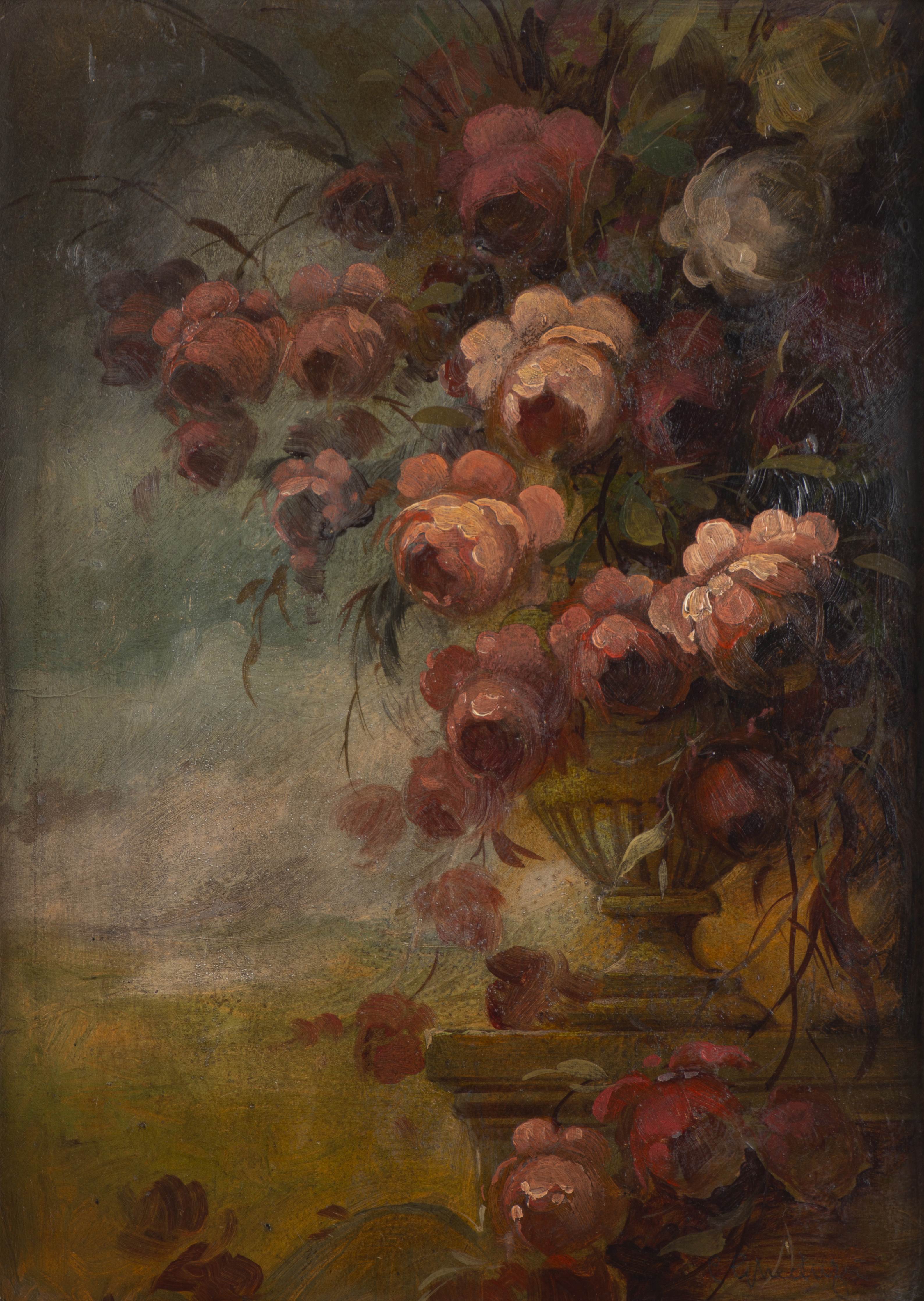 Cesare GHEDUZZI (1894-1944) "Natures mortes aux roses", deux huiles sur carton signé en bas à gauche pour l'un et signé en bas à droite pour l'autre.