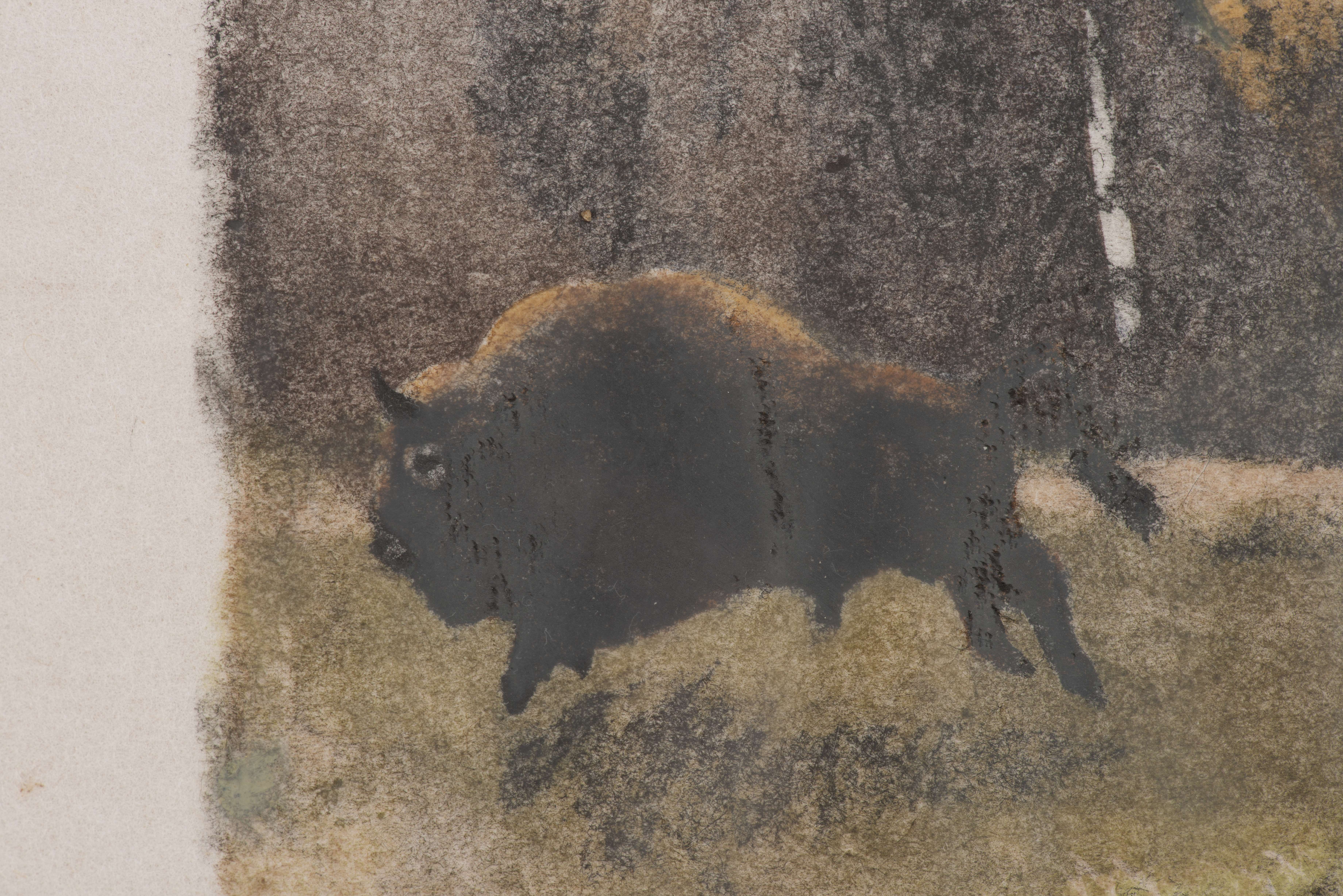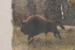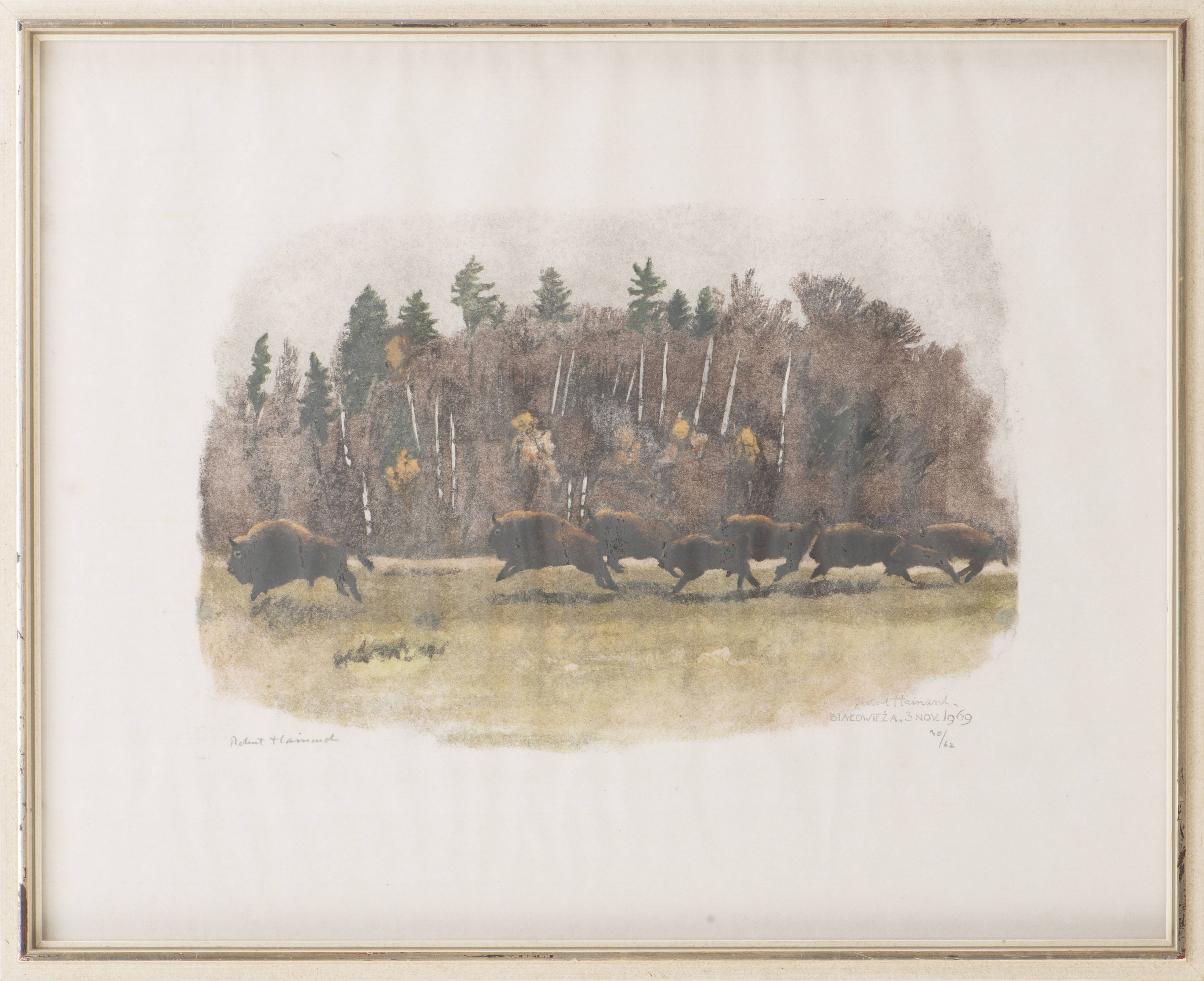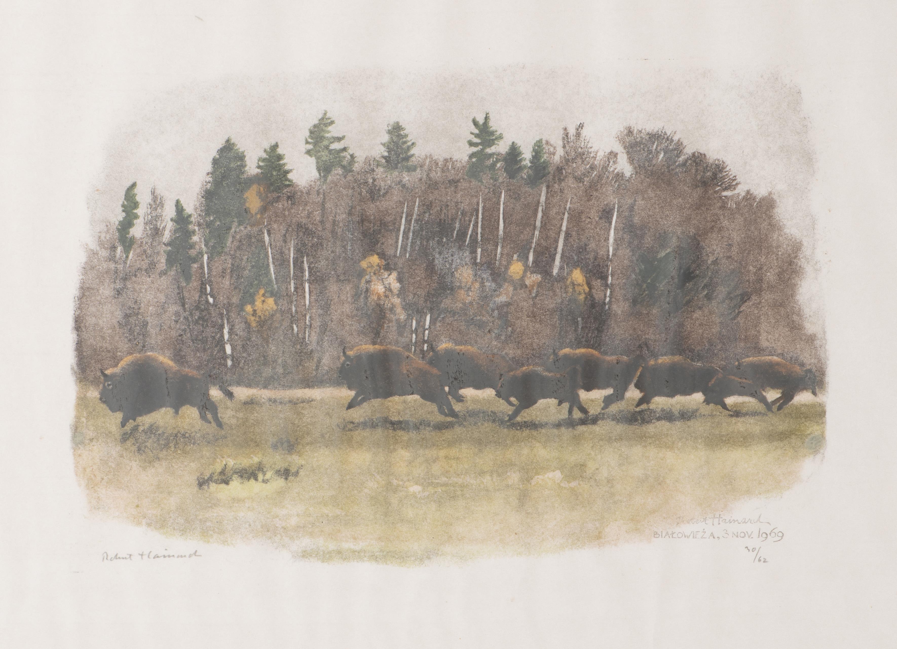 Robert HAINARD (1906-1999) "Horde de bisons", lithographie en couleurs, signée au crayon Robert Hainard et au tampon Robert Hainard, Biatoowieza, 3 nov 1969 num 30/62.