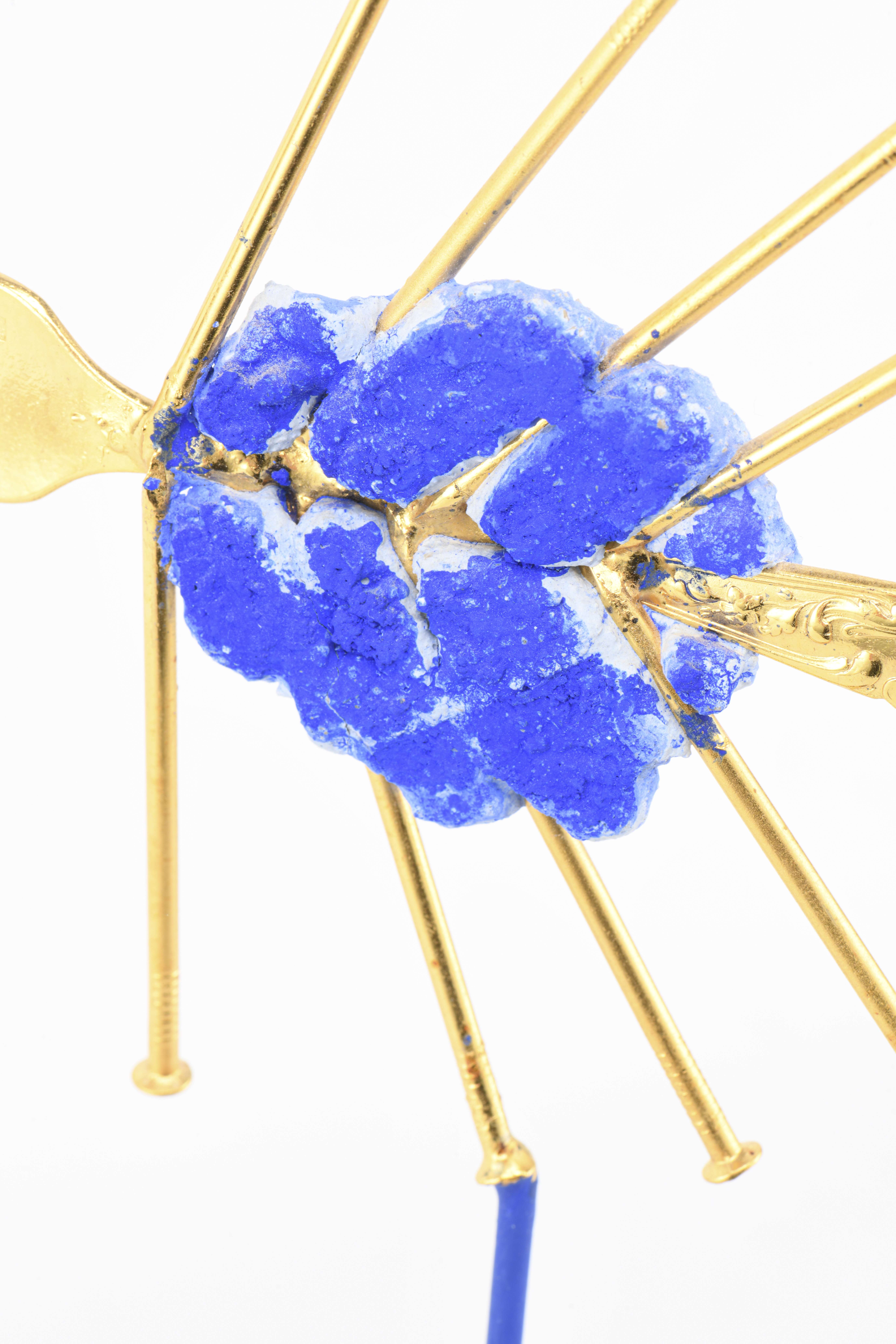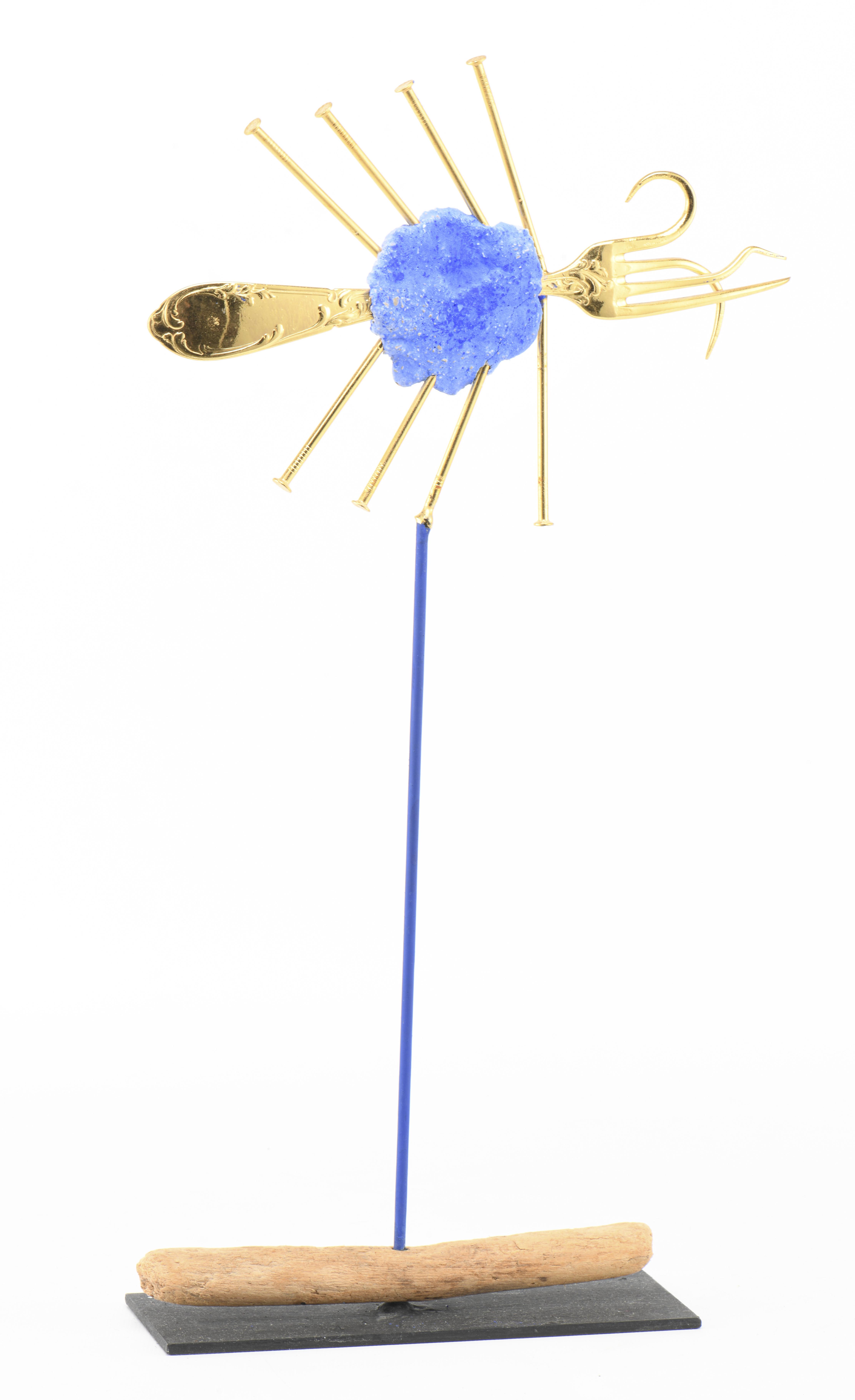 Claude GIORGI (1954-1077) "La fourchette bleue", assemblage de matériaux dorés et couleur bleue, avec morceau de bois signé sur la base GIORGI.