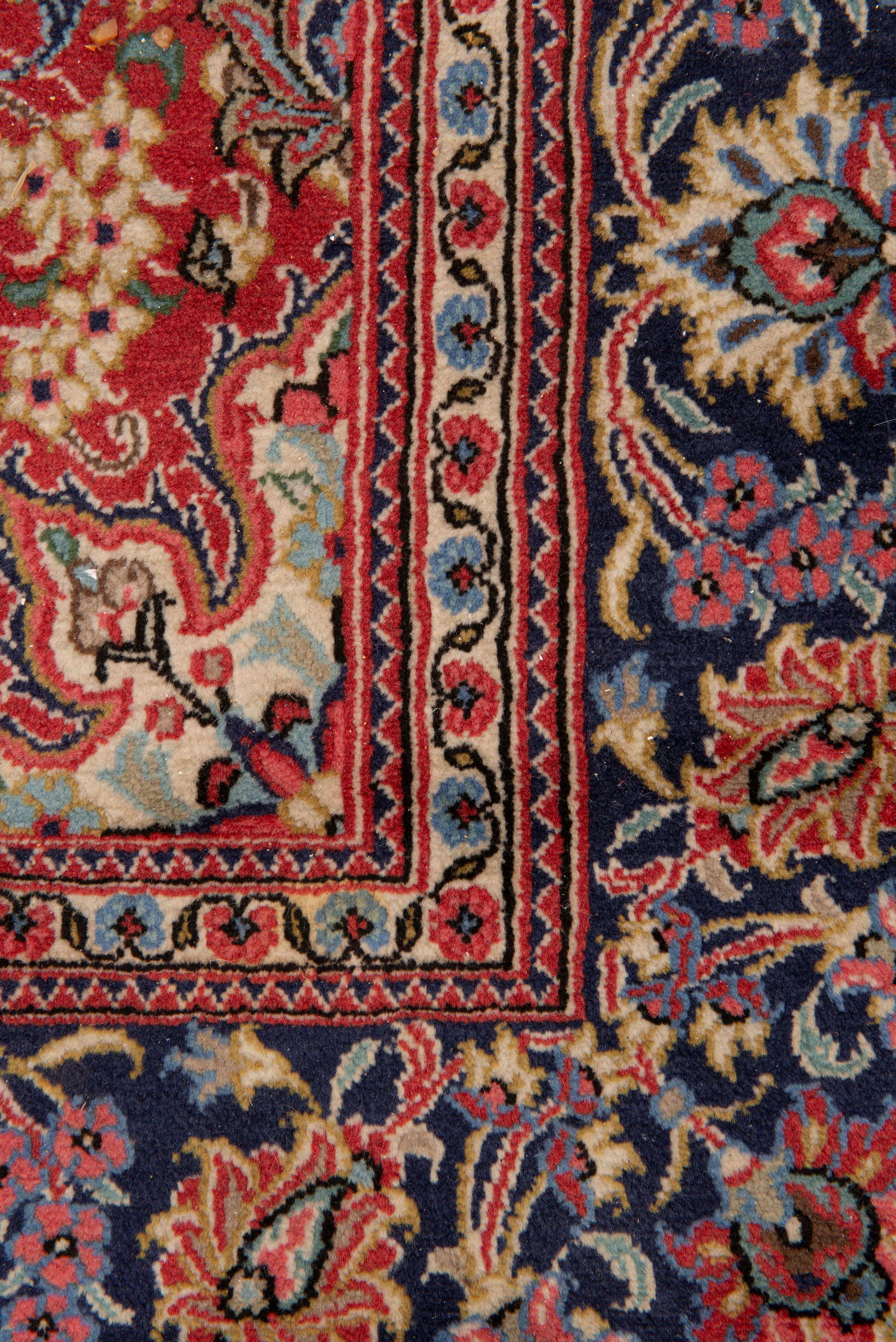 Tapis Ghom en laine à médaillon central floral é décor de lotus sur champ noir, champ principal à rinceaux de lotus sur champ beige, bordure principale à double rinceaux de lotus sur champ noir.