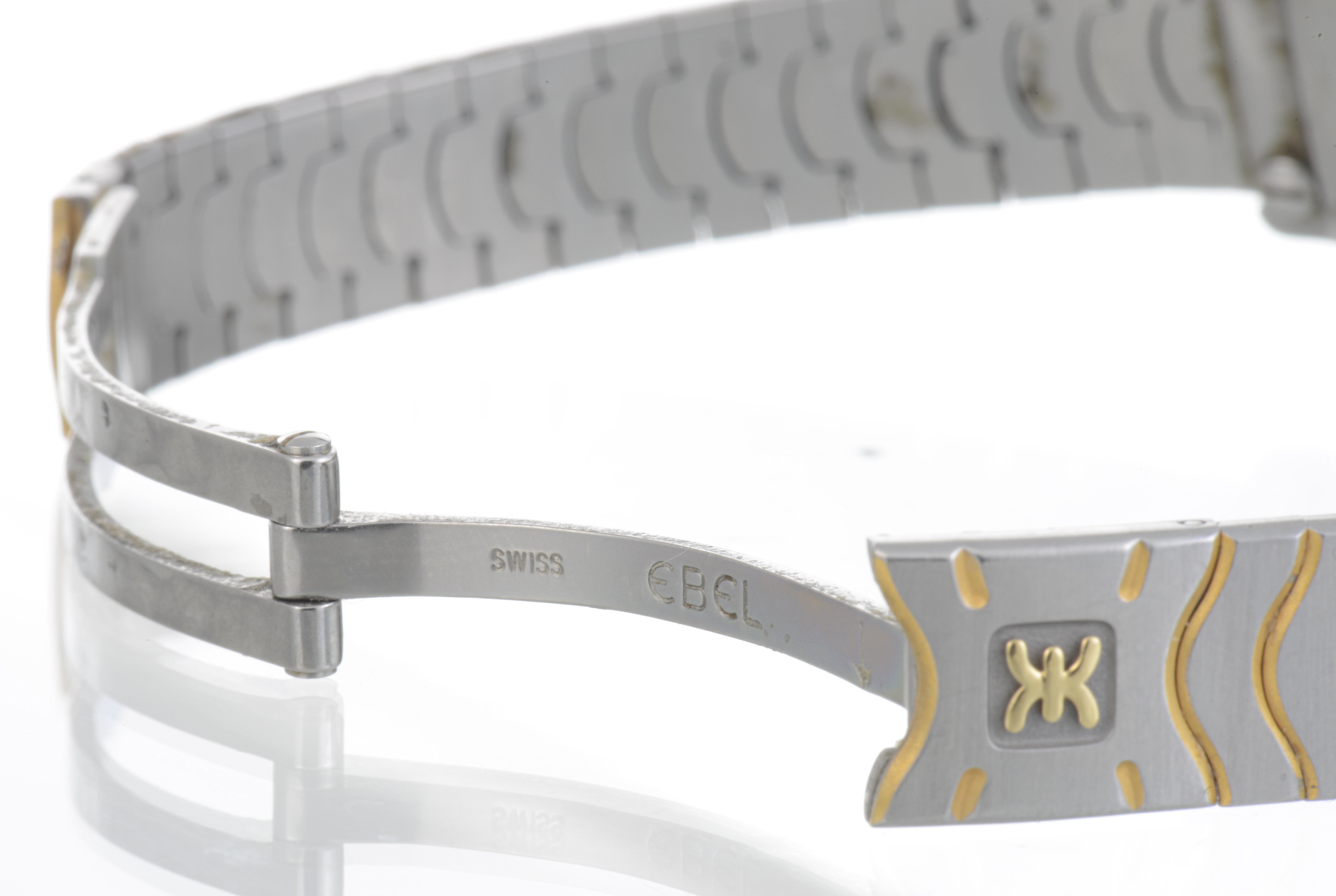 Ebel wave montre-bracelet bi-métal or jaune .750 et acier, cadran blanc, bracelet wave, montre de dame à quartz, boucle déployante.