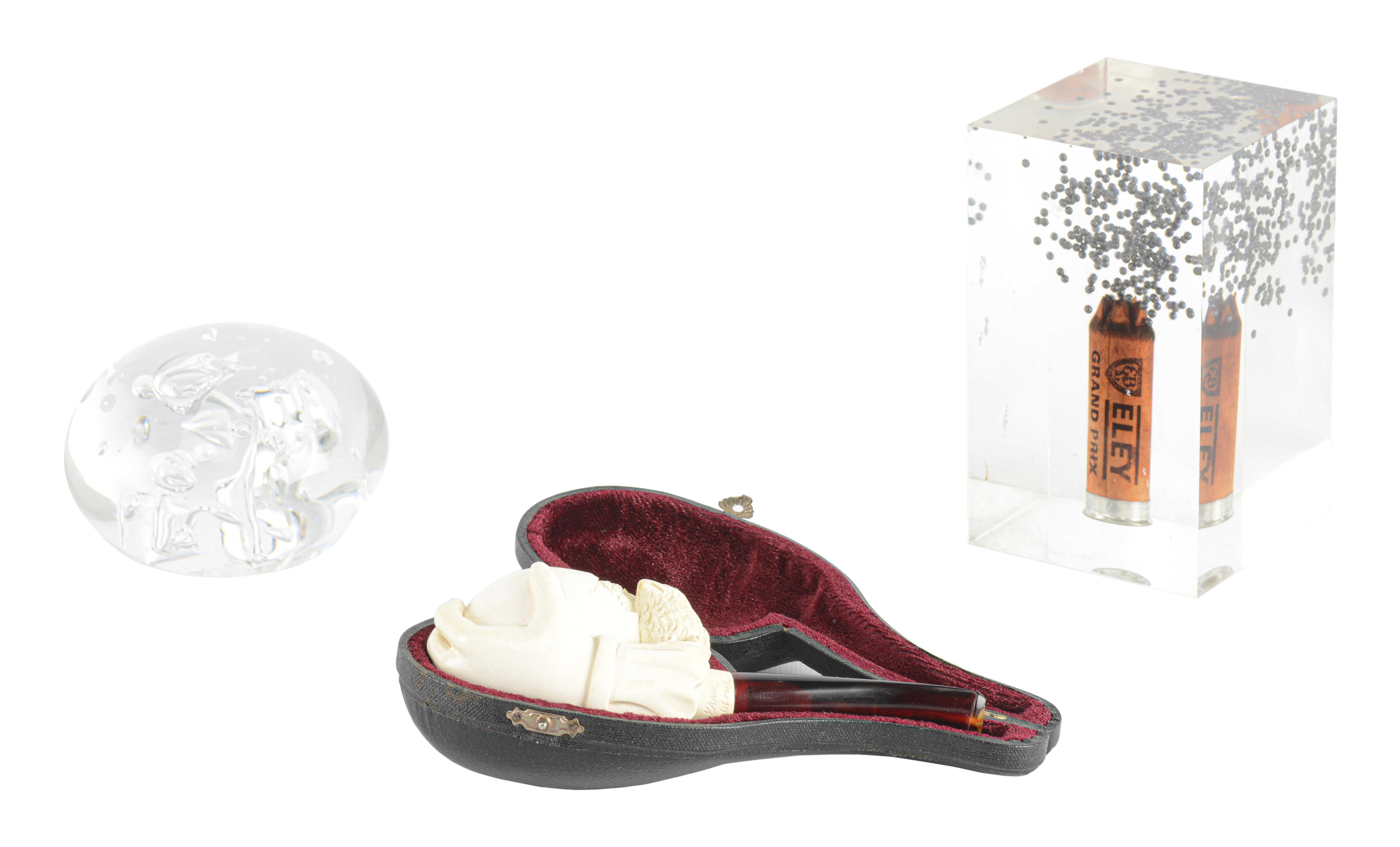 Pipe en écume de mer sculptée & sculpture en résine "Eley Grand Prix"
