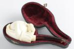 - pipe en écume de mer sculptée représentant une main avec des moineaux, avec son étui. Pièce signée S. Yanik Jademir.