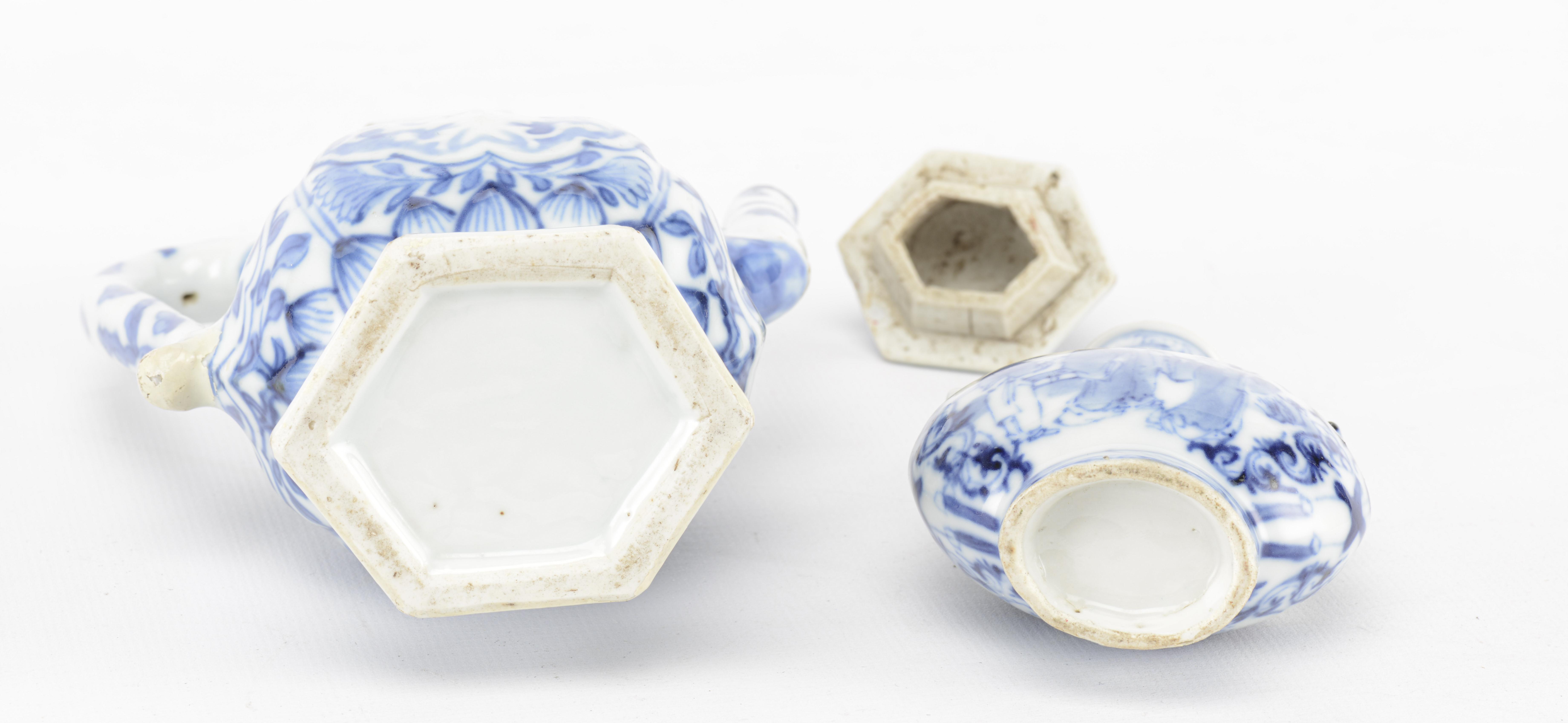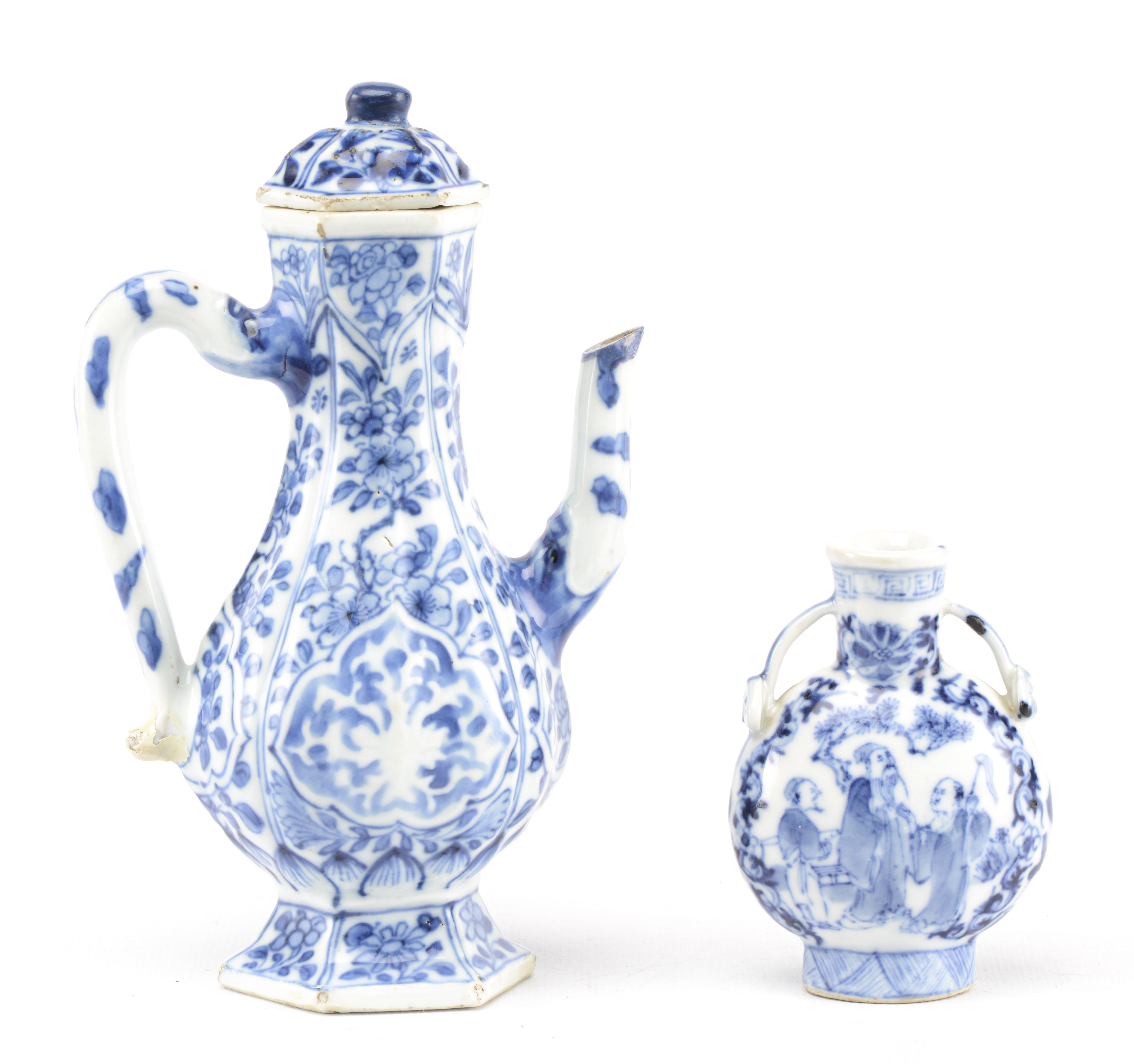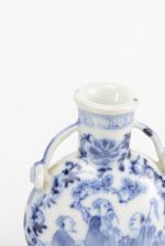 On y joint une mini-gourde en porcelaine de Chine au décor des trois lettrés dans un paysage, anses en forme de ruyi.