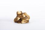 Netsuke d'un petit garçon soulevant un panier de fruits, marque à deux caractères sous la base.