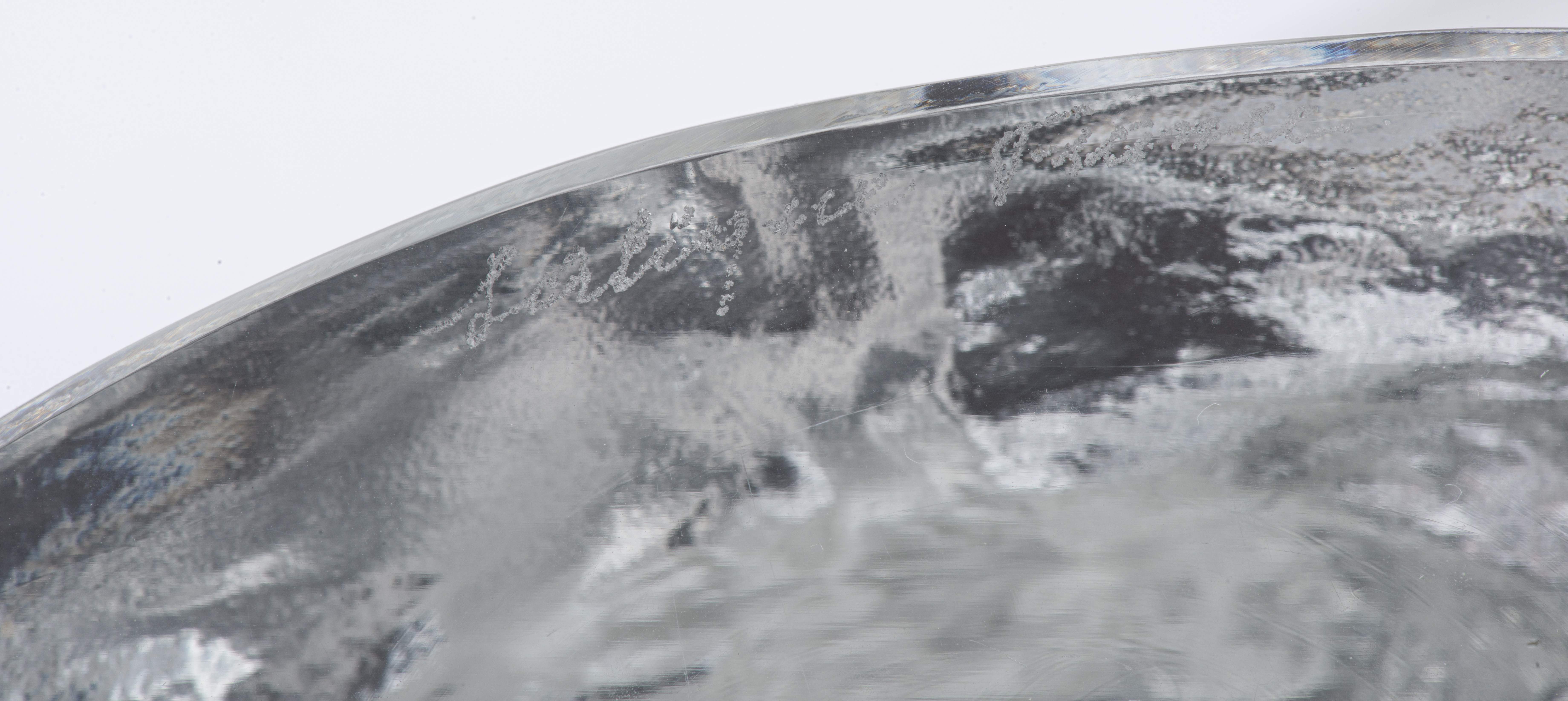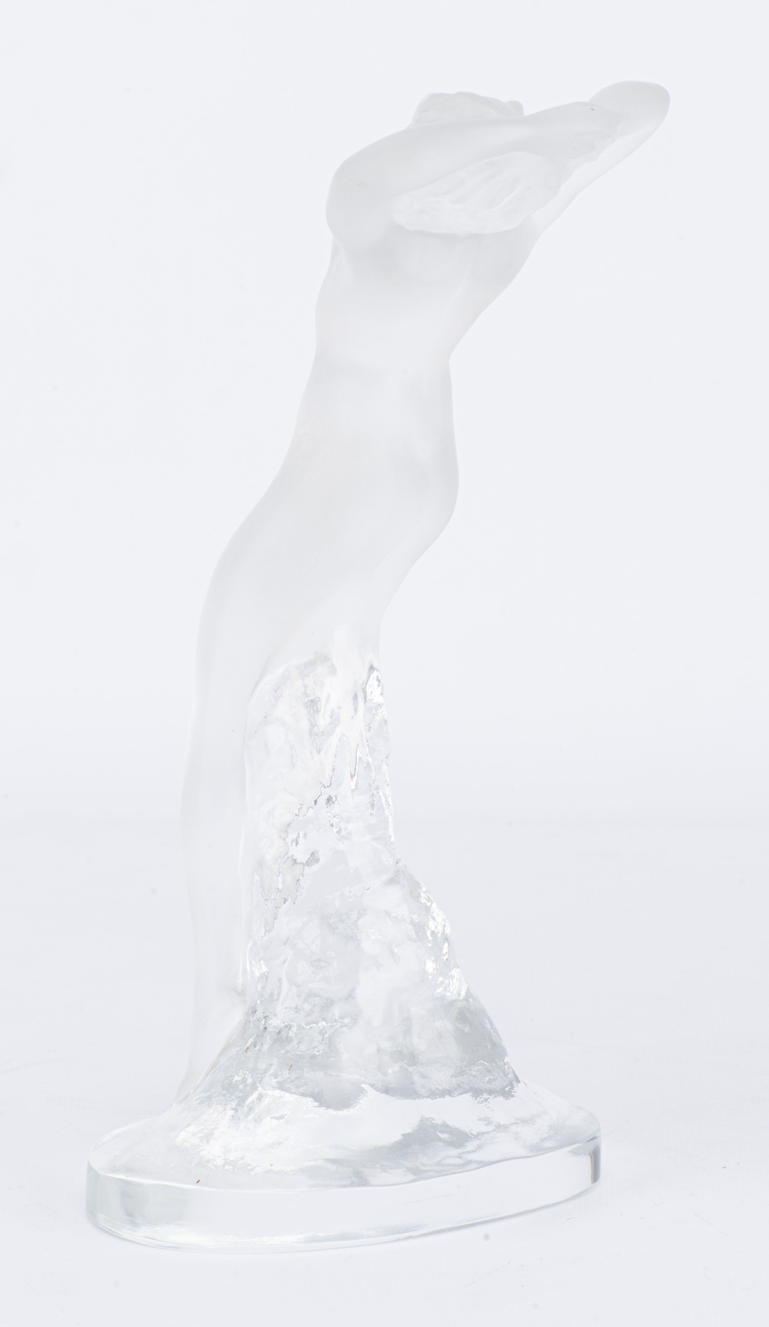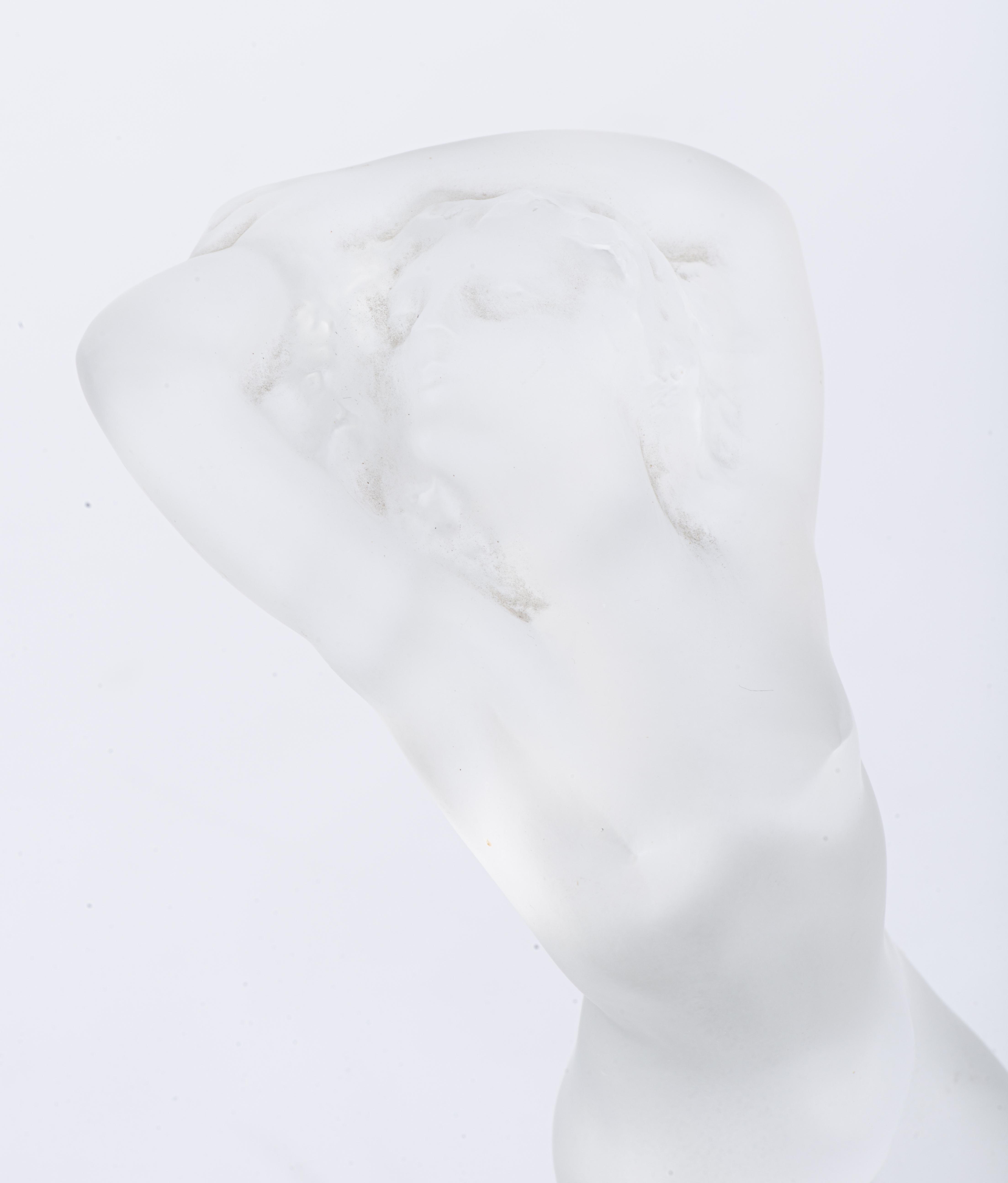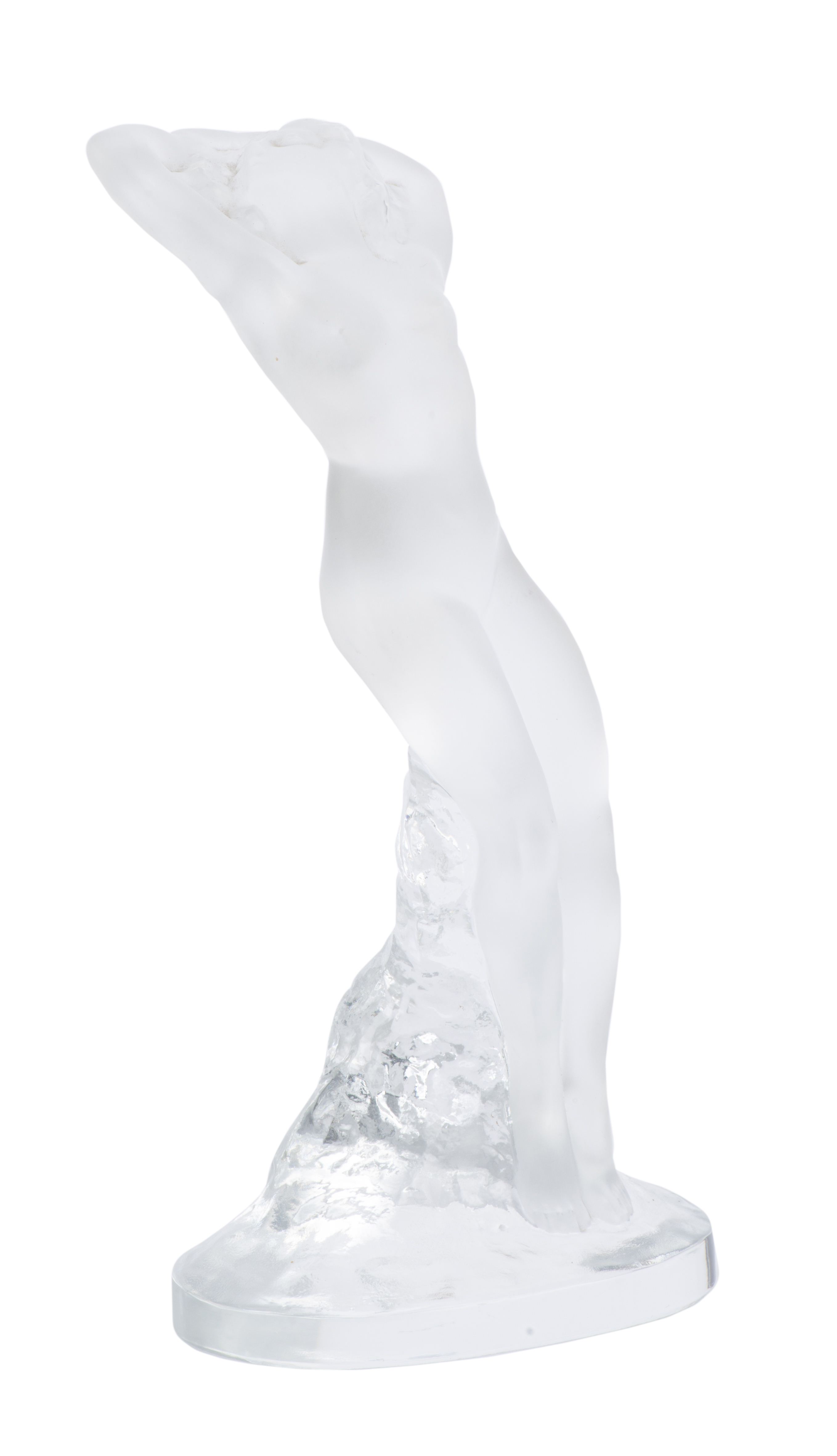 - Statuette en cristal pressé et moulé, poli et satiné, représentant une jeune femme nue, signé à la base H. 23,5 cm
