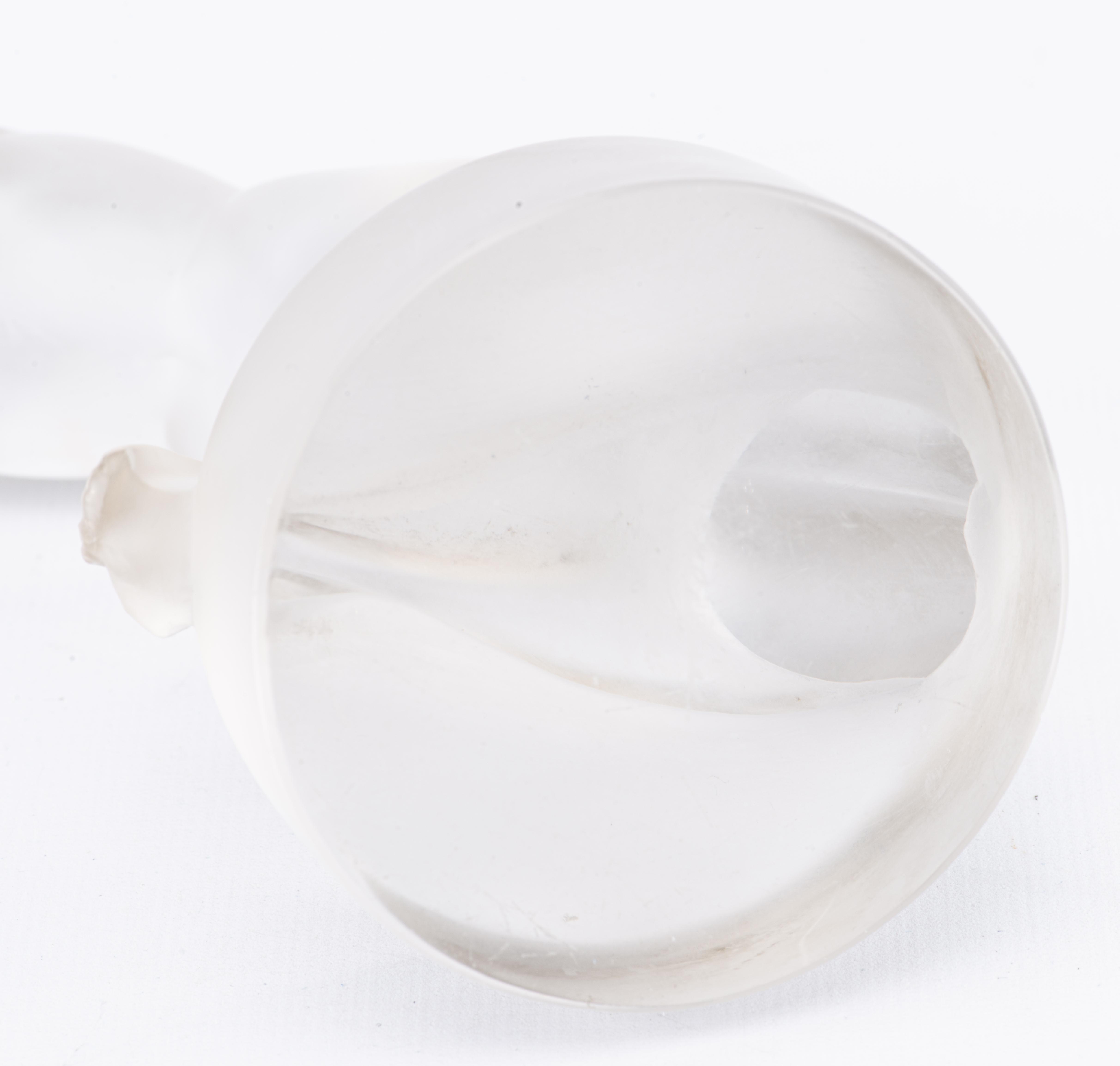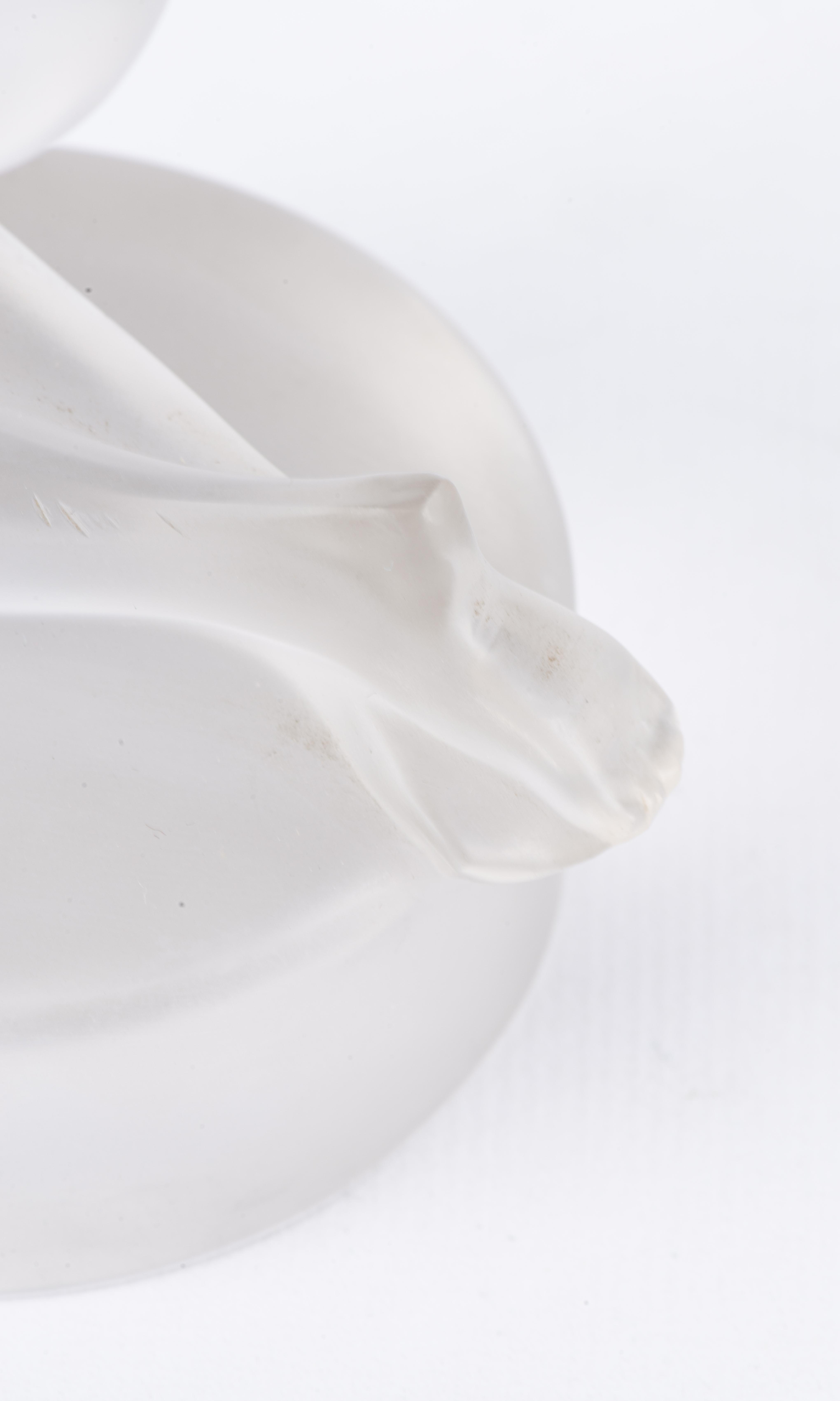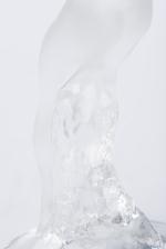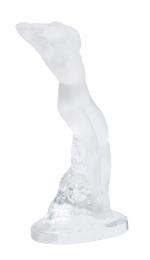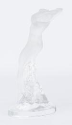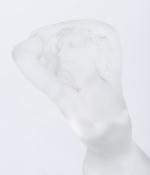 - Statuette « Chrysis » en cristal pressé, moulé et satiné, représentant une femme nue agenouillée et cabrée en arrière, signé à la base. H. 13 cm.