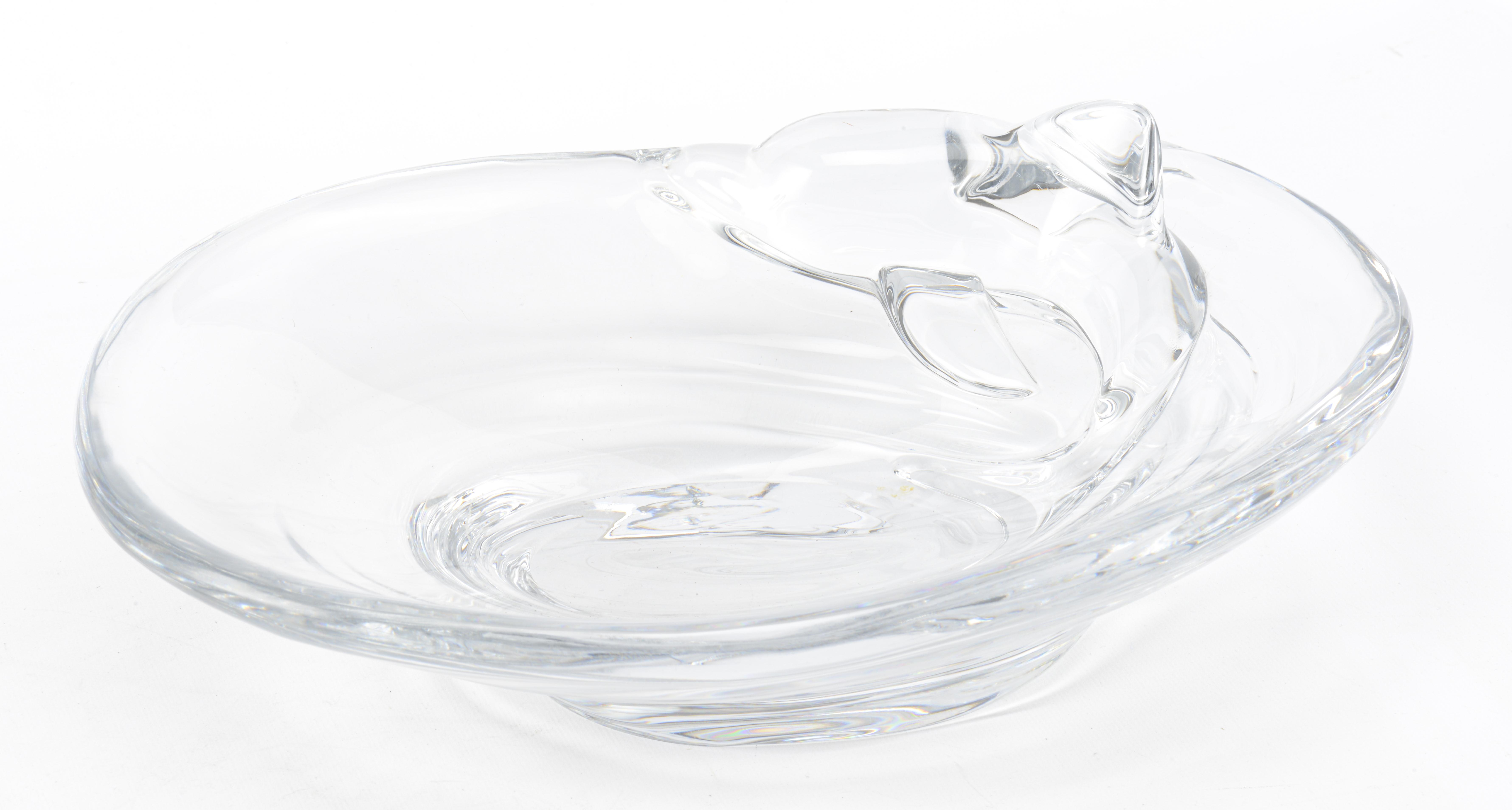 Daum, coupe en cristal translucide à décor d'un Dauphin, marque gravée Daum France au pied.