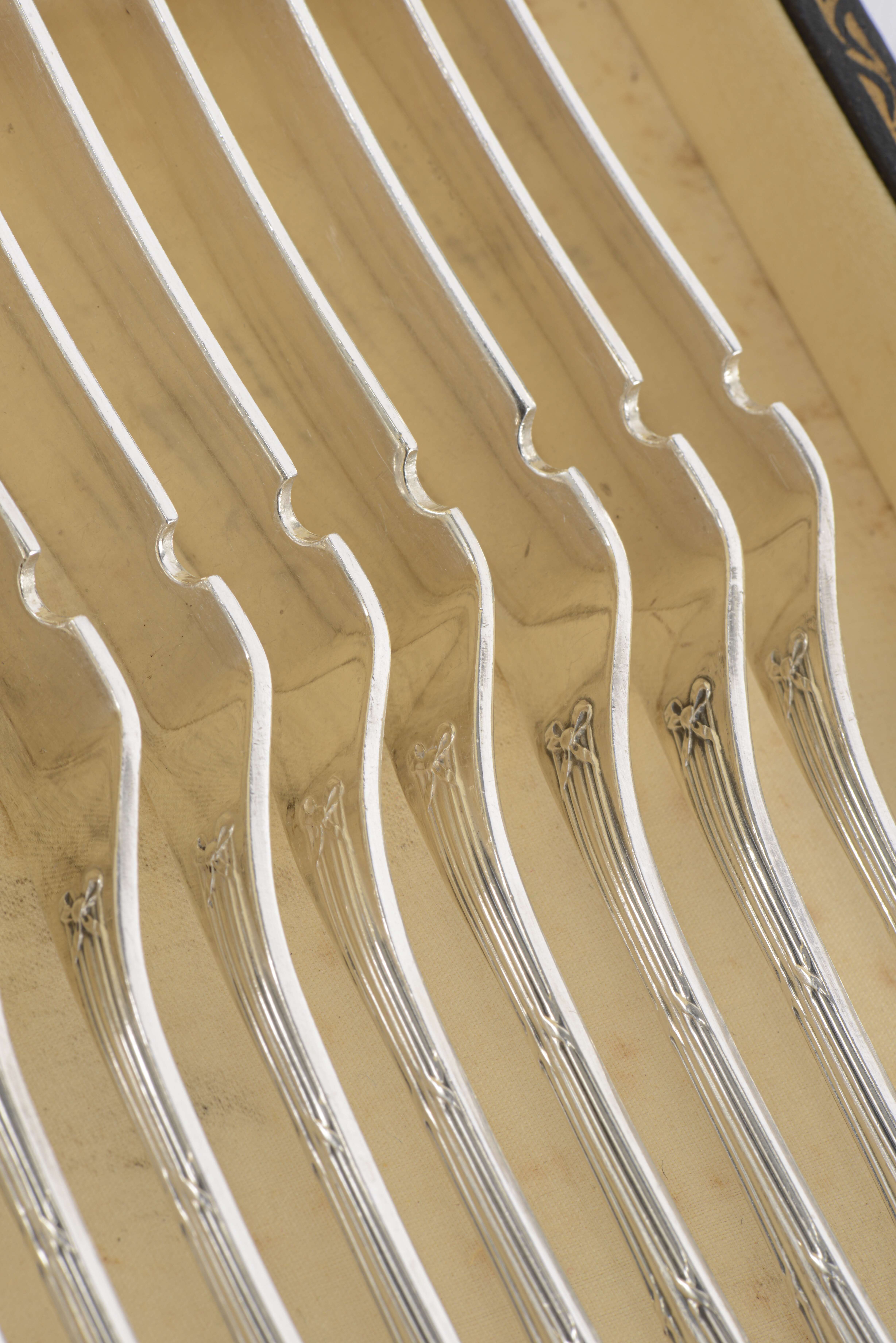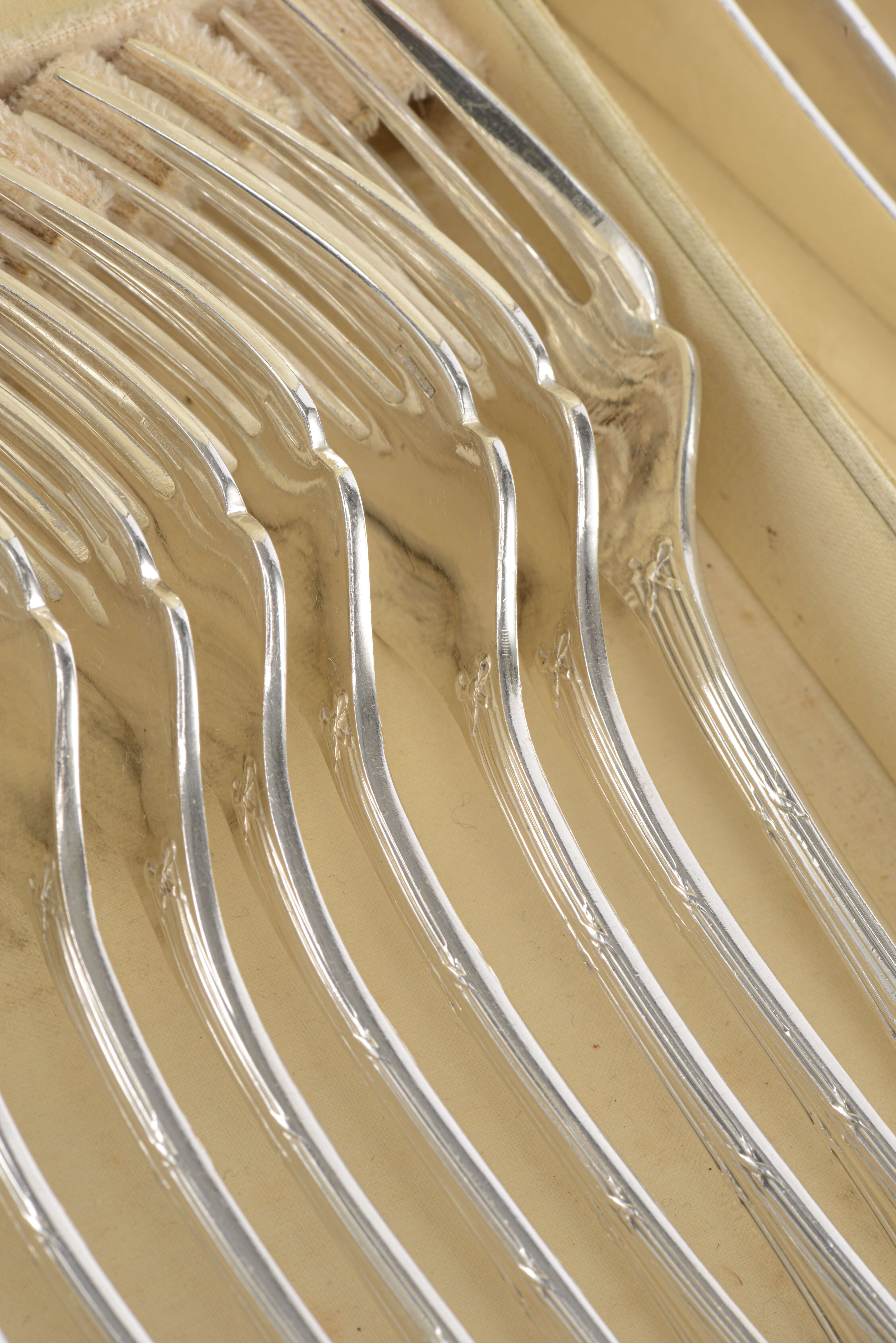 Christofle, service à poisson pour onze personnes, modèle ruban croisé.