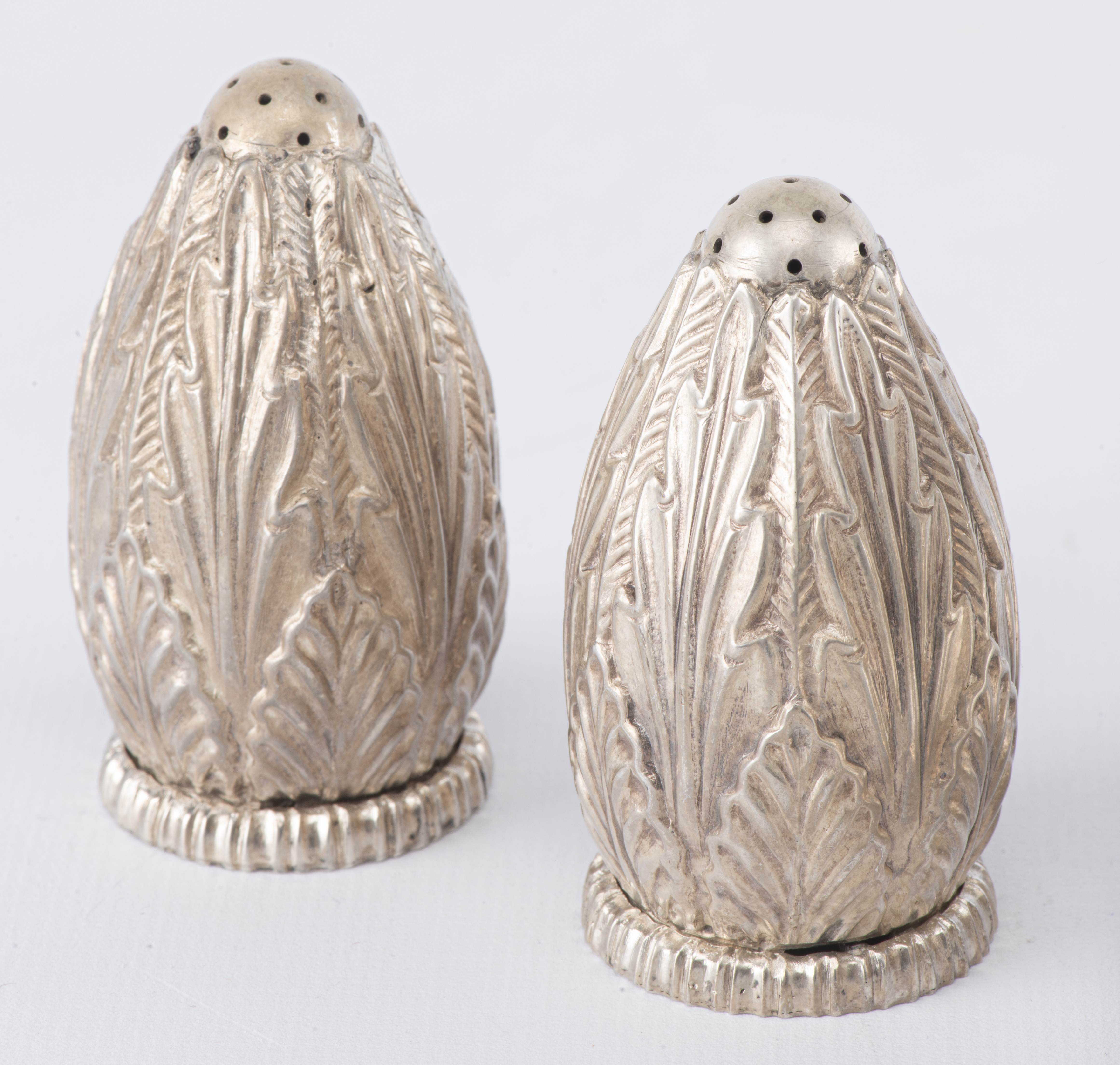 - deux salières en argent espagnol .915 à décor en repoussé avec des motifs de feuilles