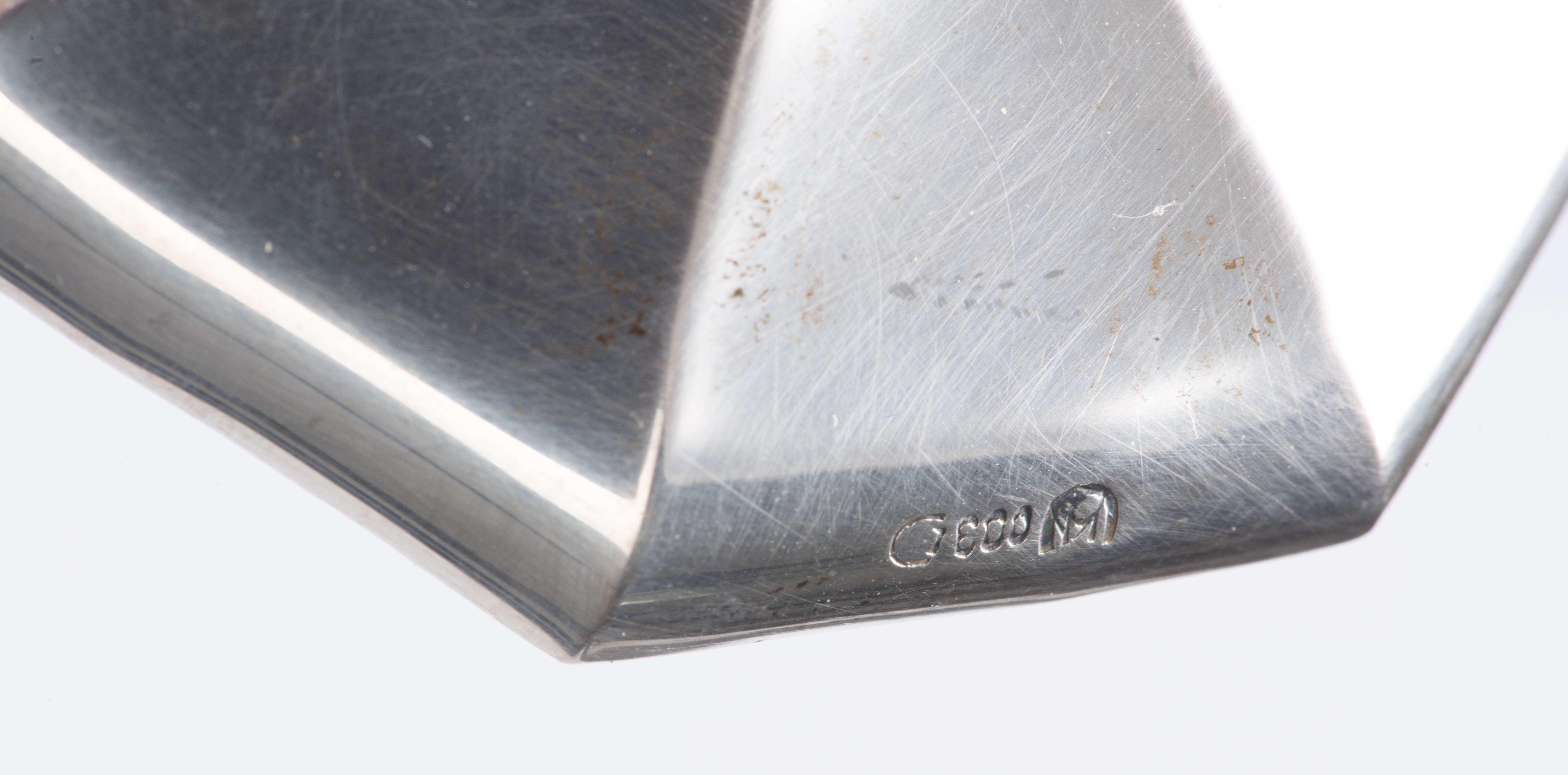 - 1 vase octogonal à col rentrant, en argent 800 (lesté), H. 19,1 cm