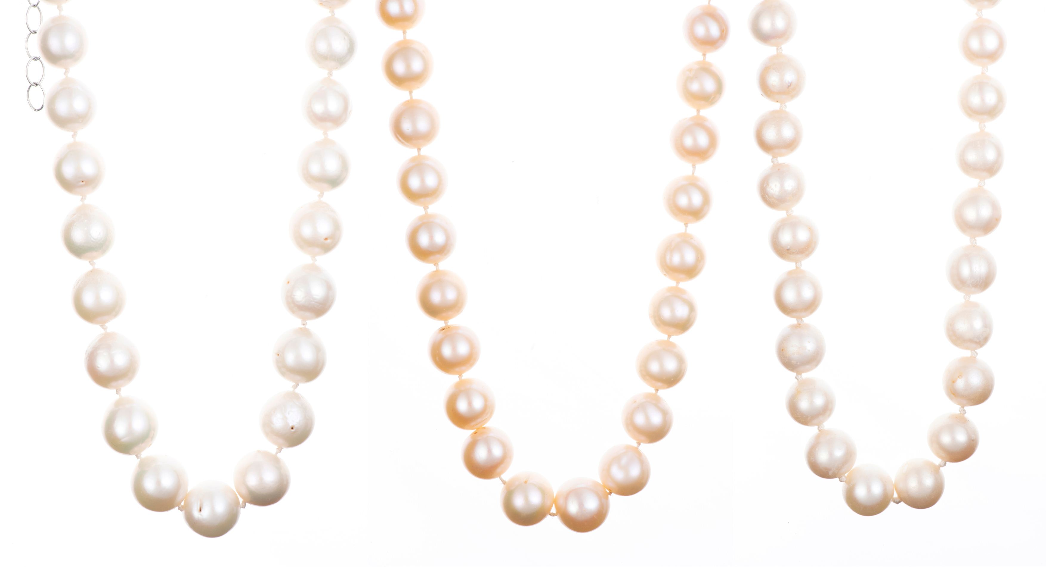 Trois colliers de perles de culture de Chine