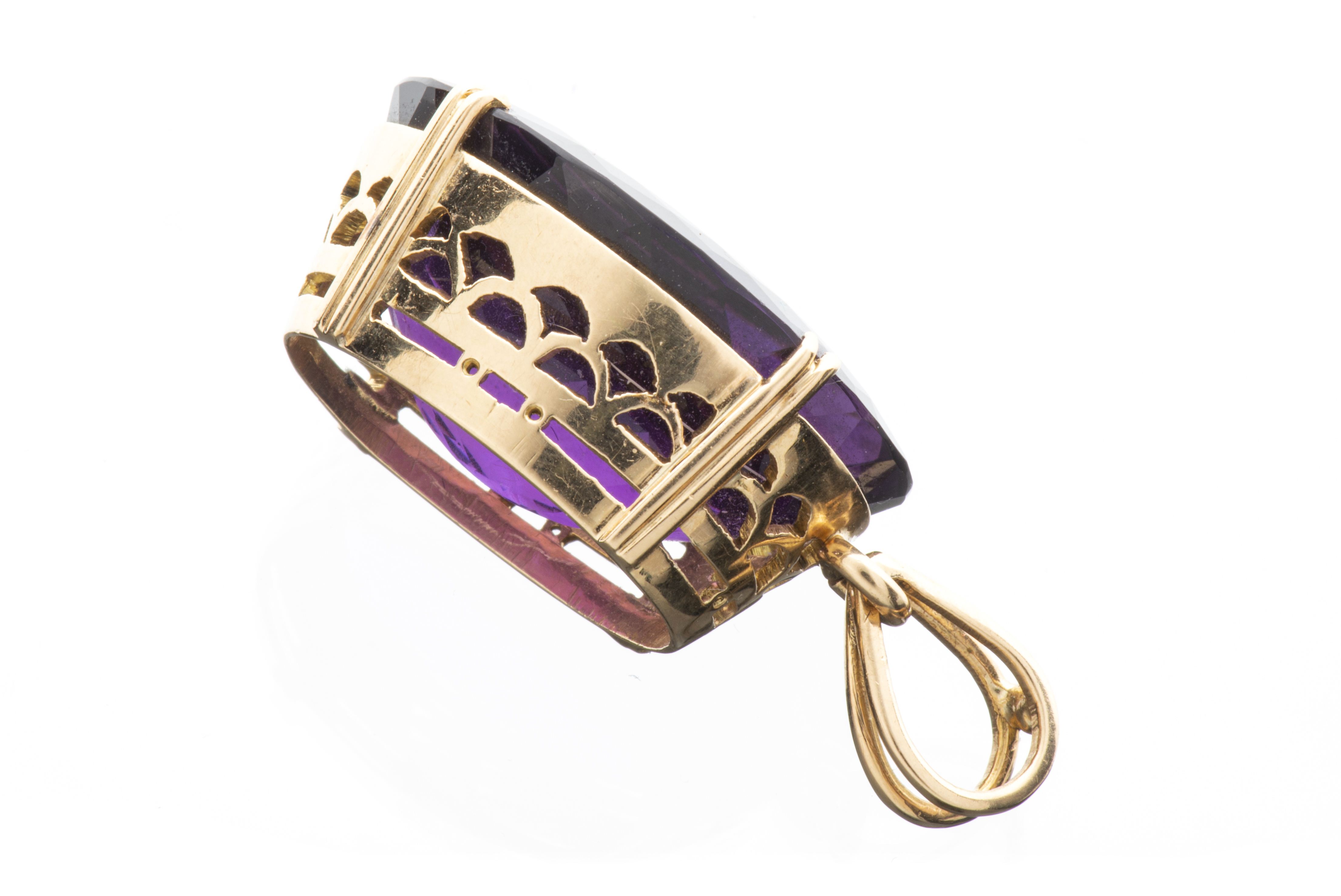 Pendentif en or jaune .750 avec une améthyste ovale sertie à quatre griffes de environs 35 cts.