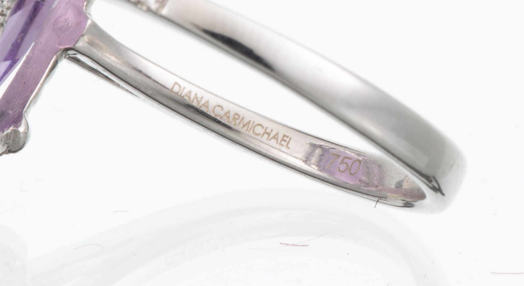 Diana CARMICHAEL, bague en or gris avec améthyste et diamants