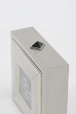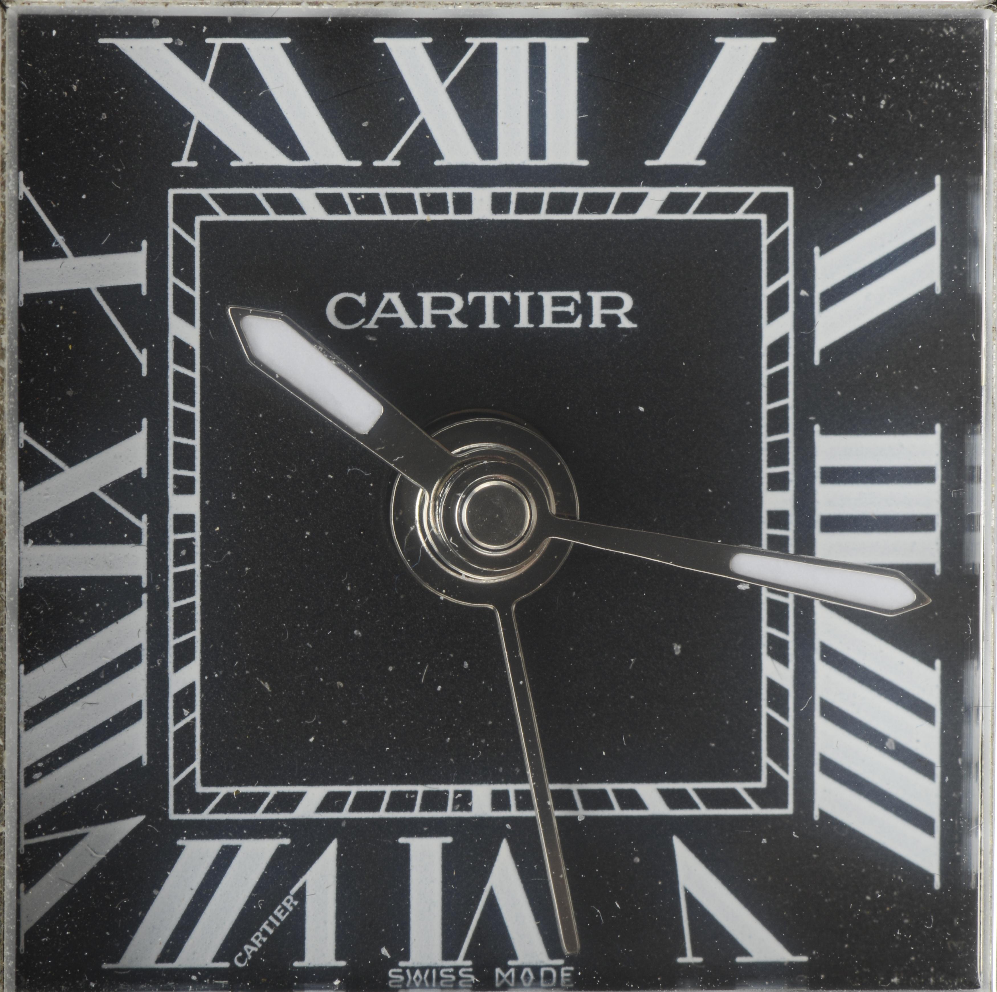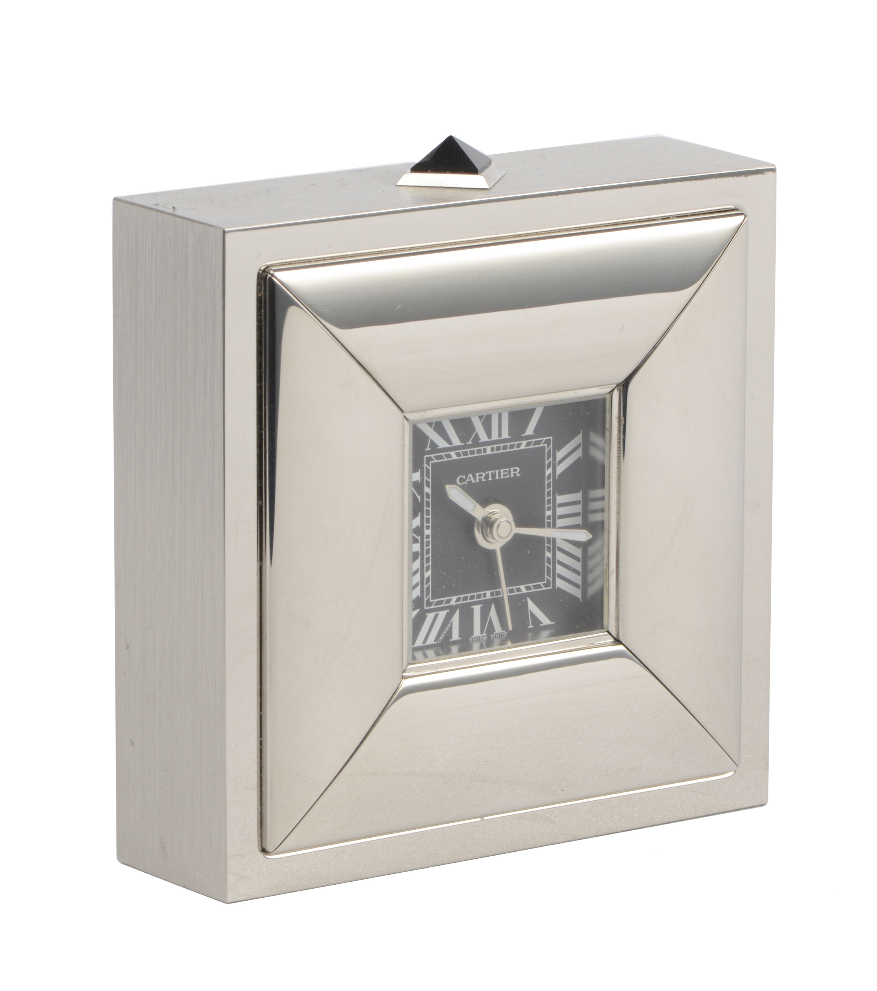 CARTIER réveil à boîtier carré en acier chromé