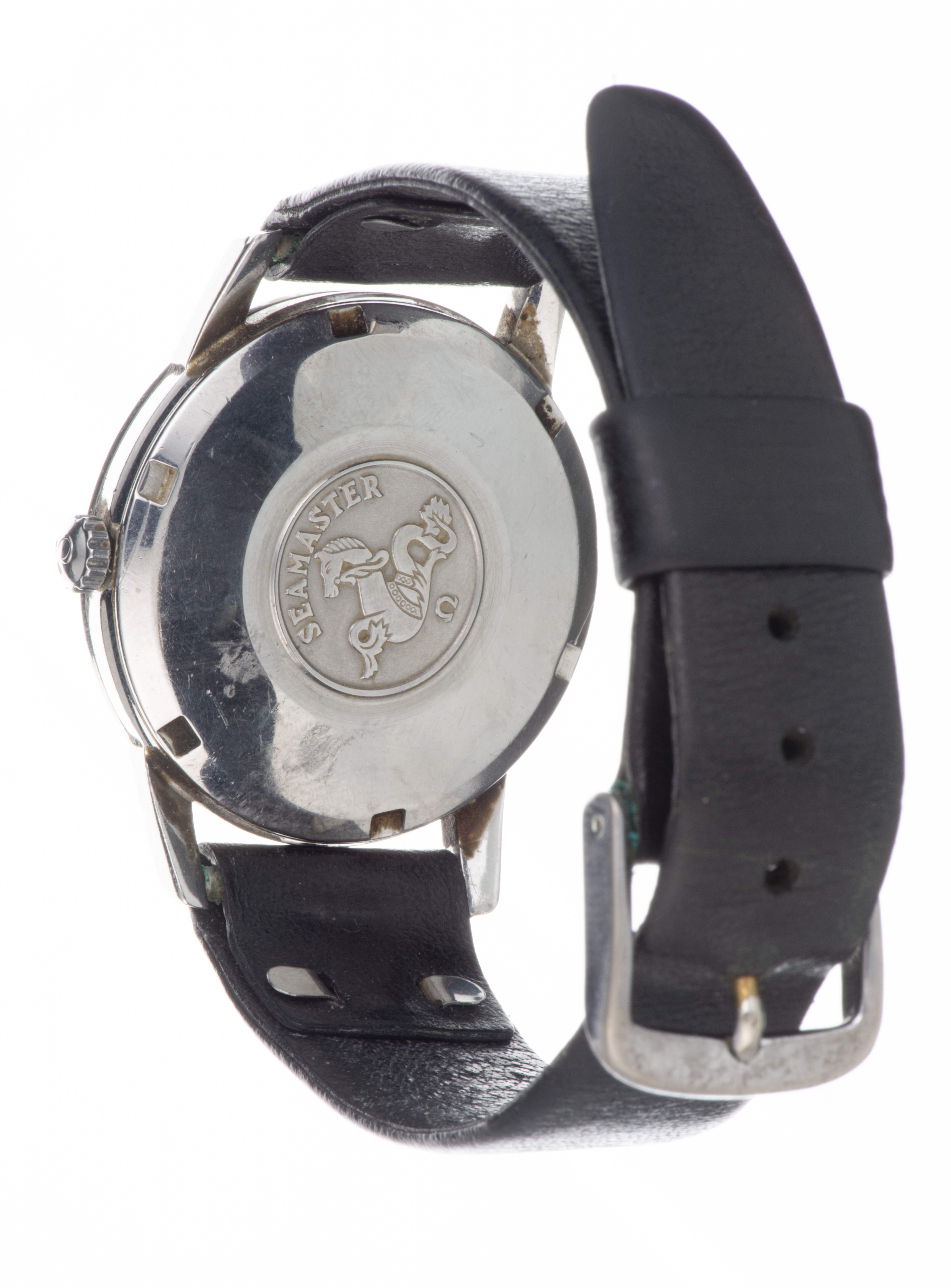 OMEGA Seamaster avec cadran argent, index bâtons, aiguilles dauphines et boîte en acier chromé, couronne d'origine, avec boîte d'origine.