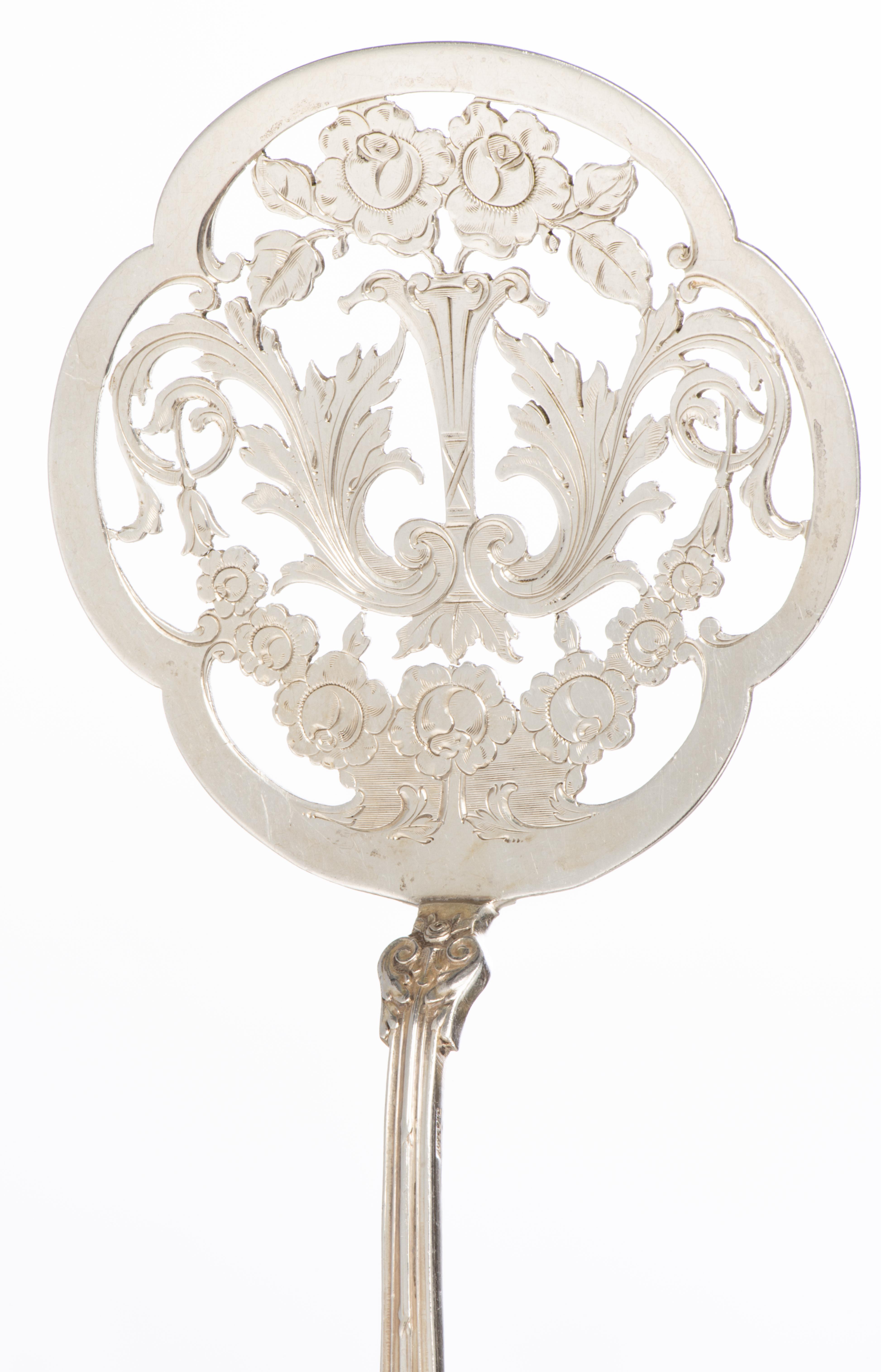 - une truelle ajourée à gâteau en argent .800 Jezler à décor de roses. Poids 46.7 g
