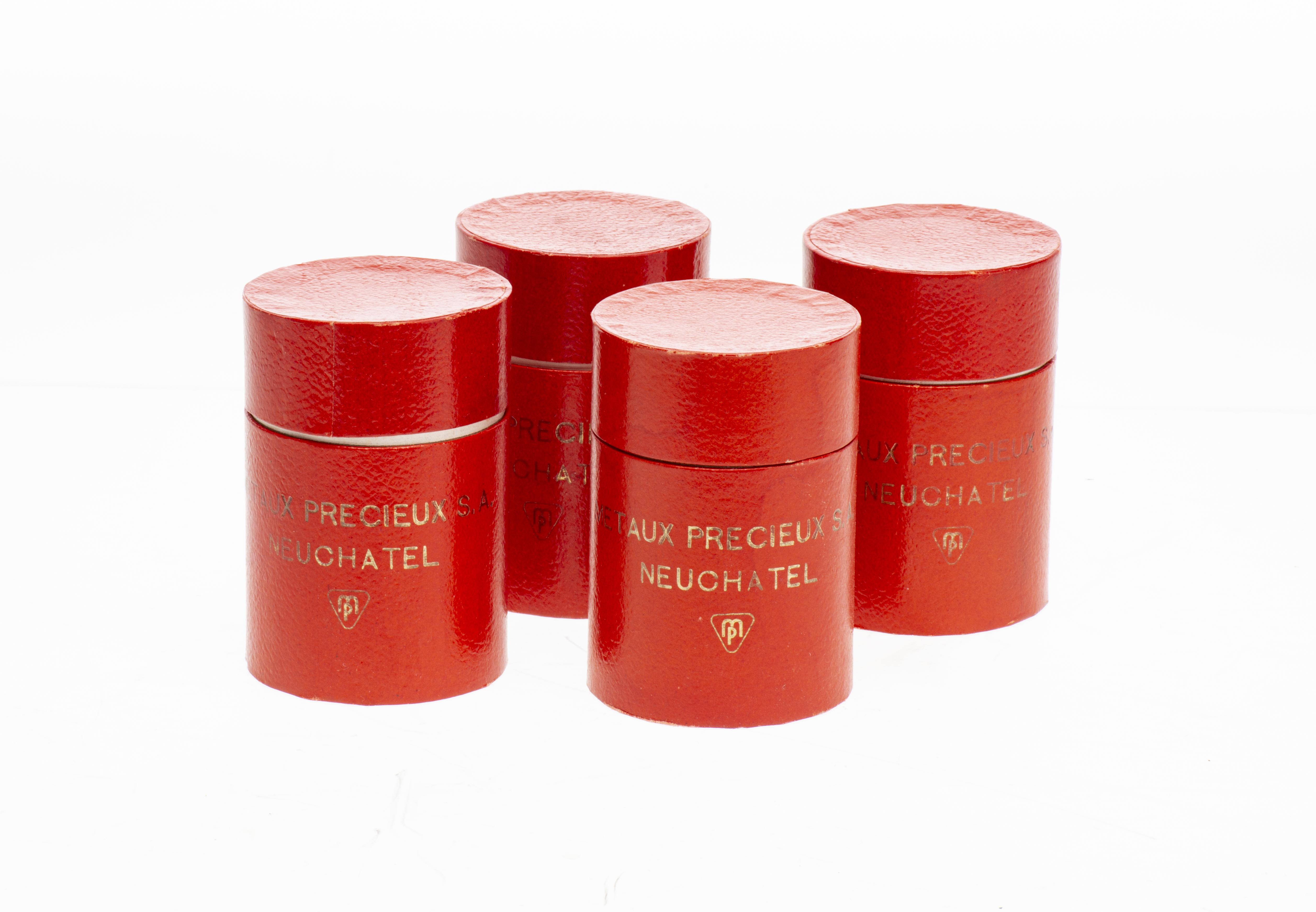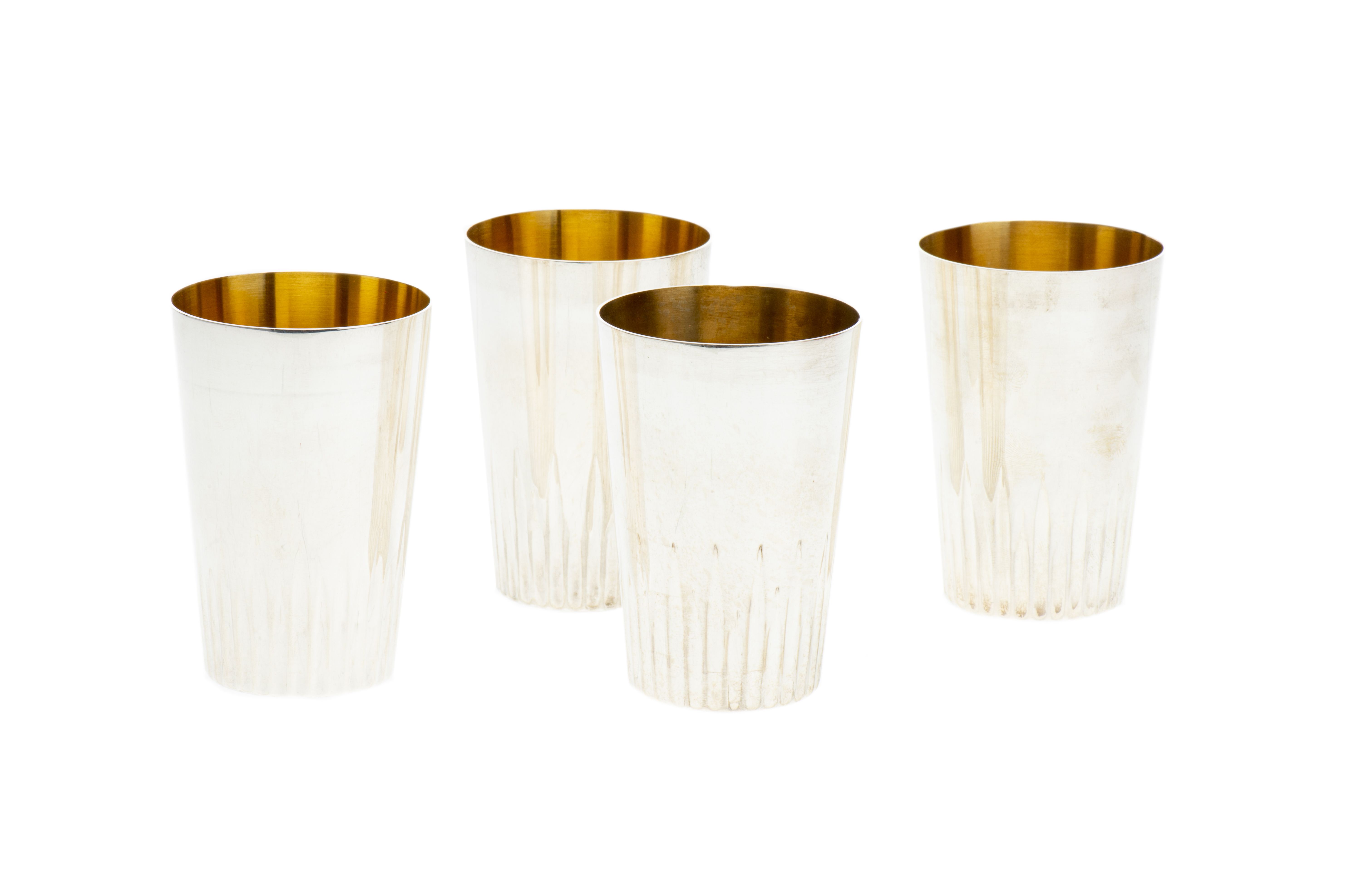 Travail XXe en argent .800 et intérieur en vermeil. Ensemble de 4 timbales dans leur coffret individuel, poinçon argent .800