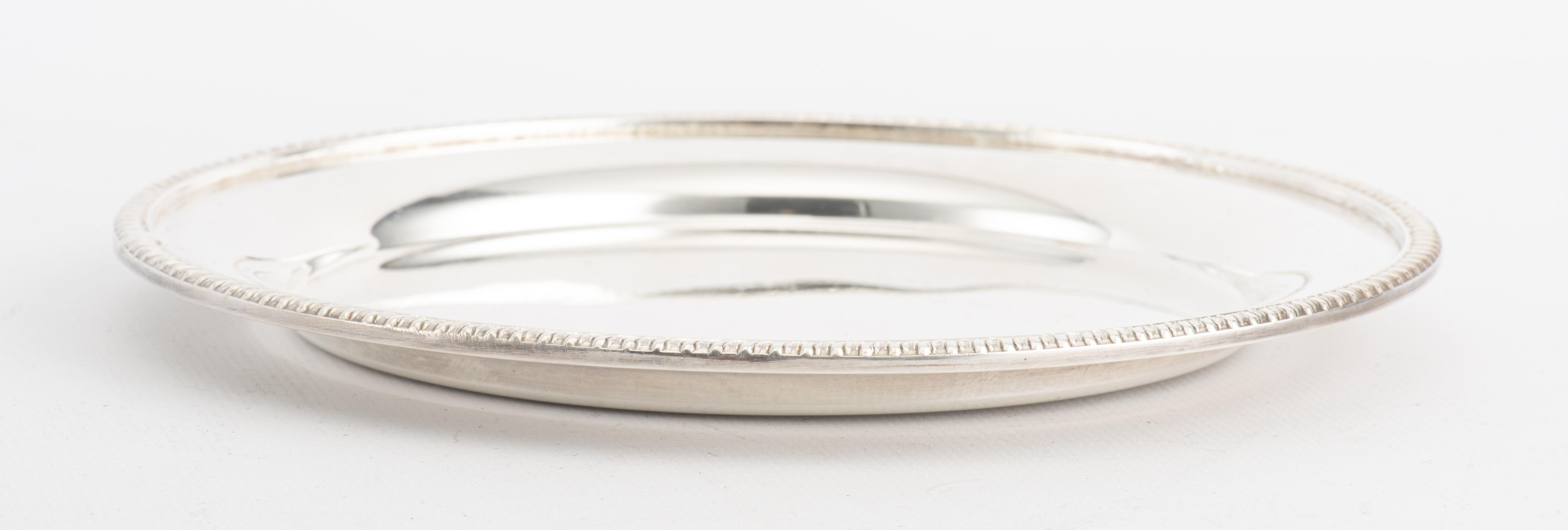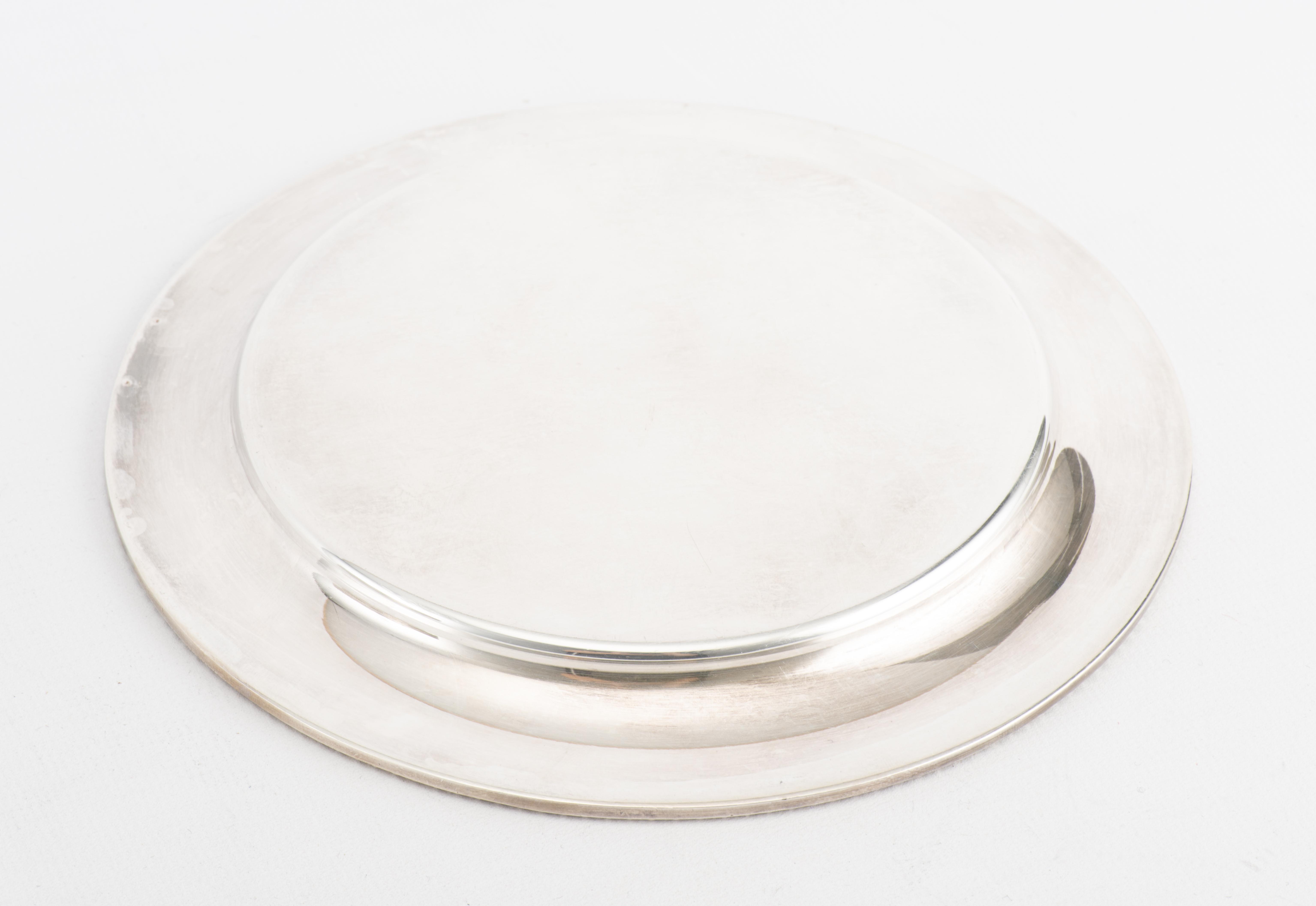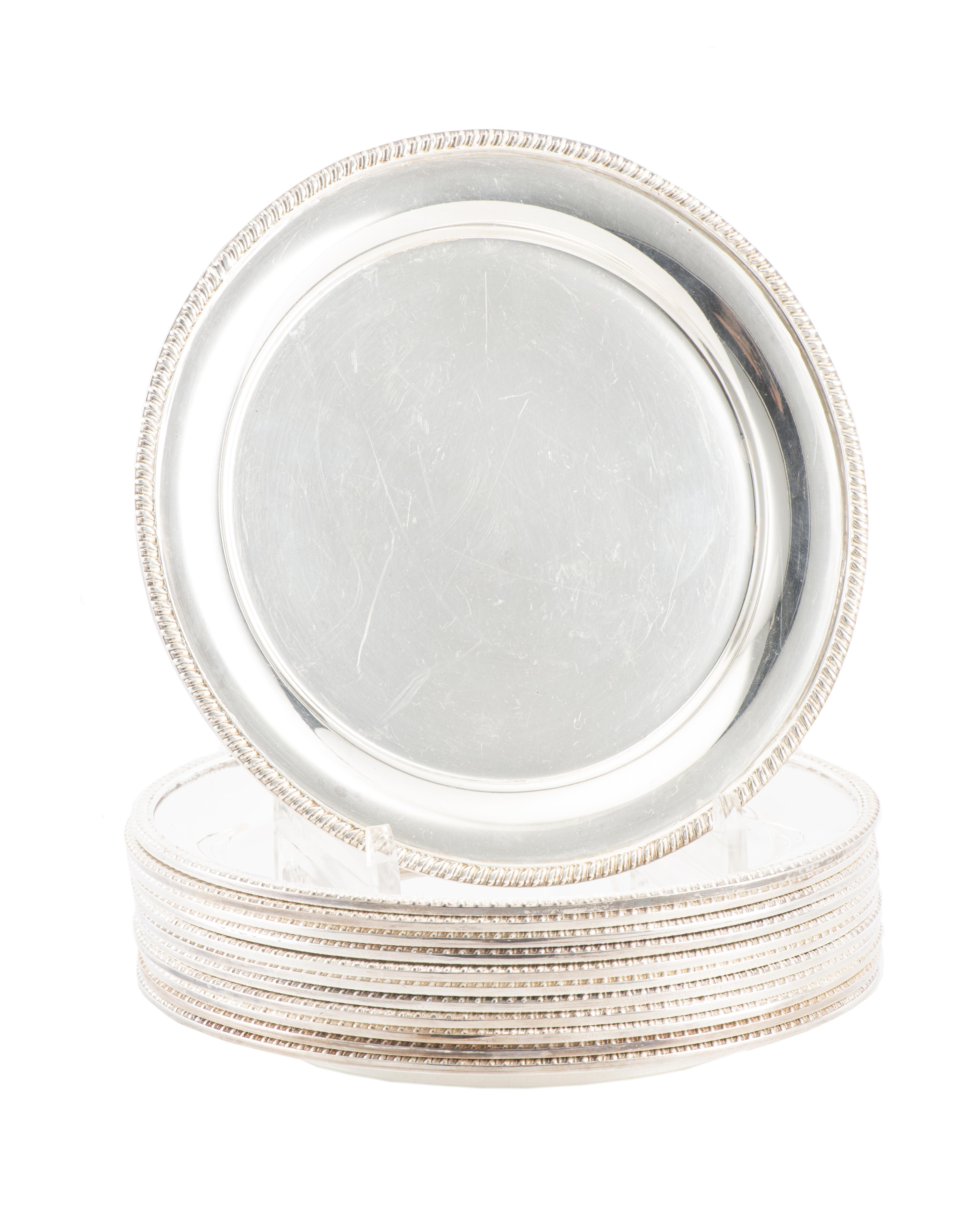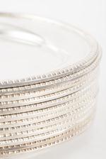 Douze dessous de bouteilles en métal argenté, bordure torsadée.