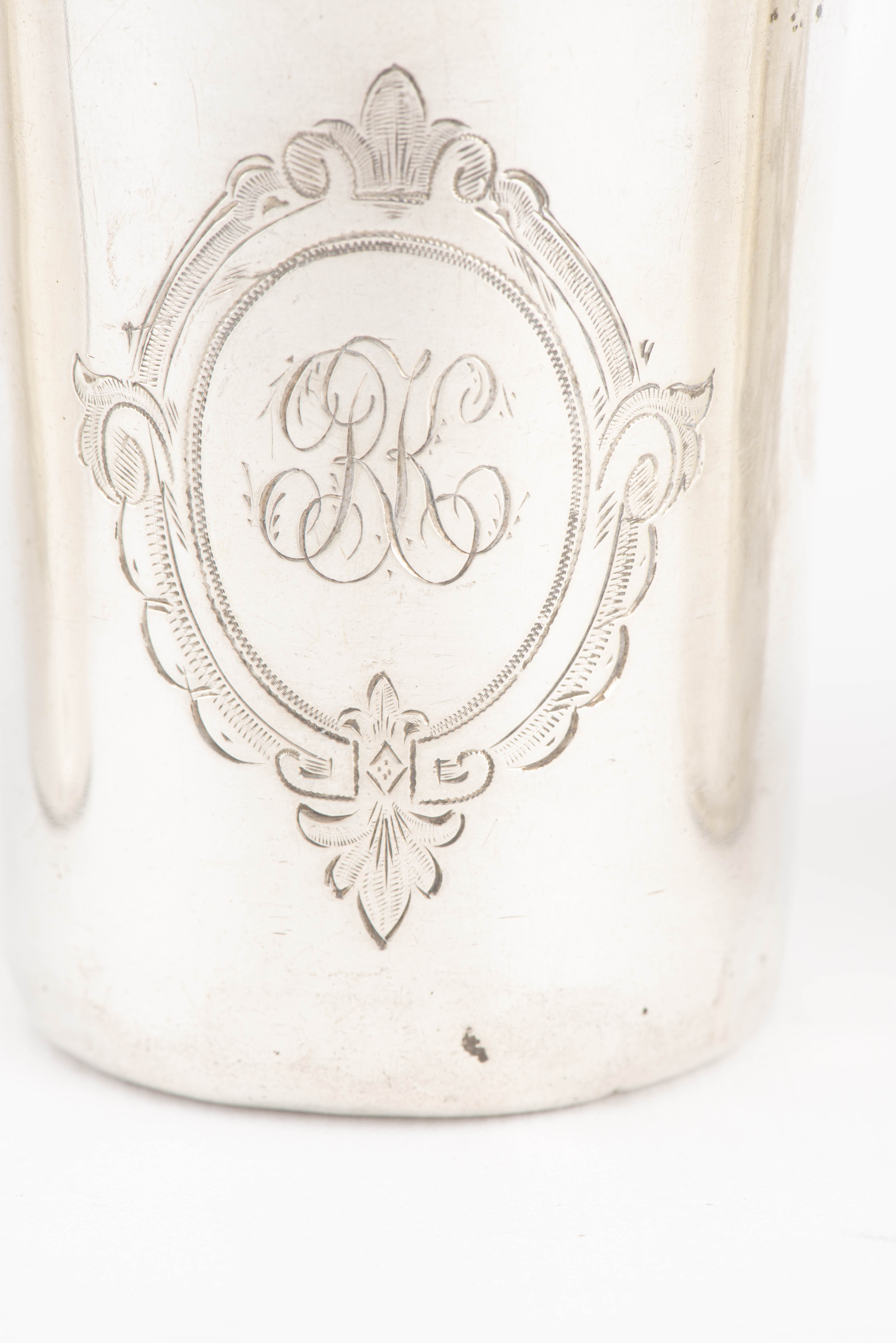 - timbale en argent .800, mon. dans un médaillon. H. 7.4 & D. 6.2 cm