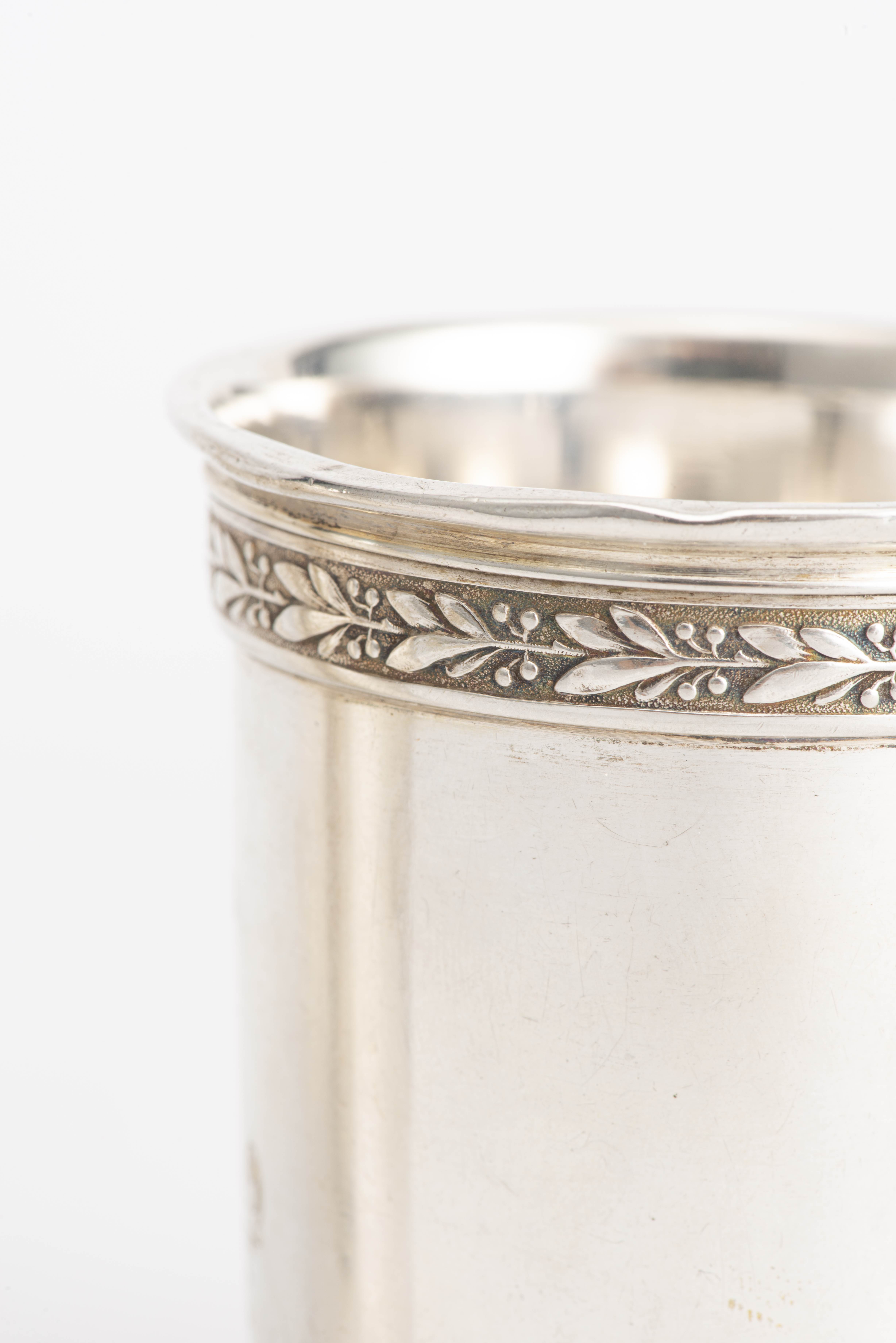 - timbale en argent .800 Jezler, mon. Modèle Laurier. H. 7.2 & D. 6.1 cm