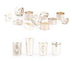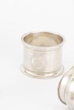 Ensemble de dix ronds de serviettes et quatre timbales en argent