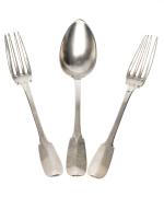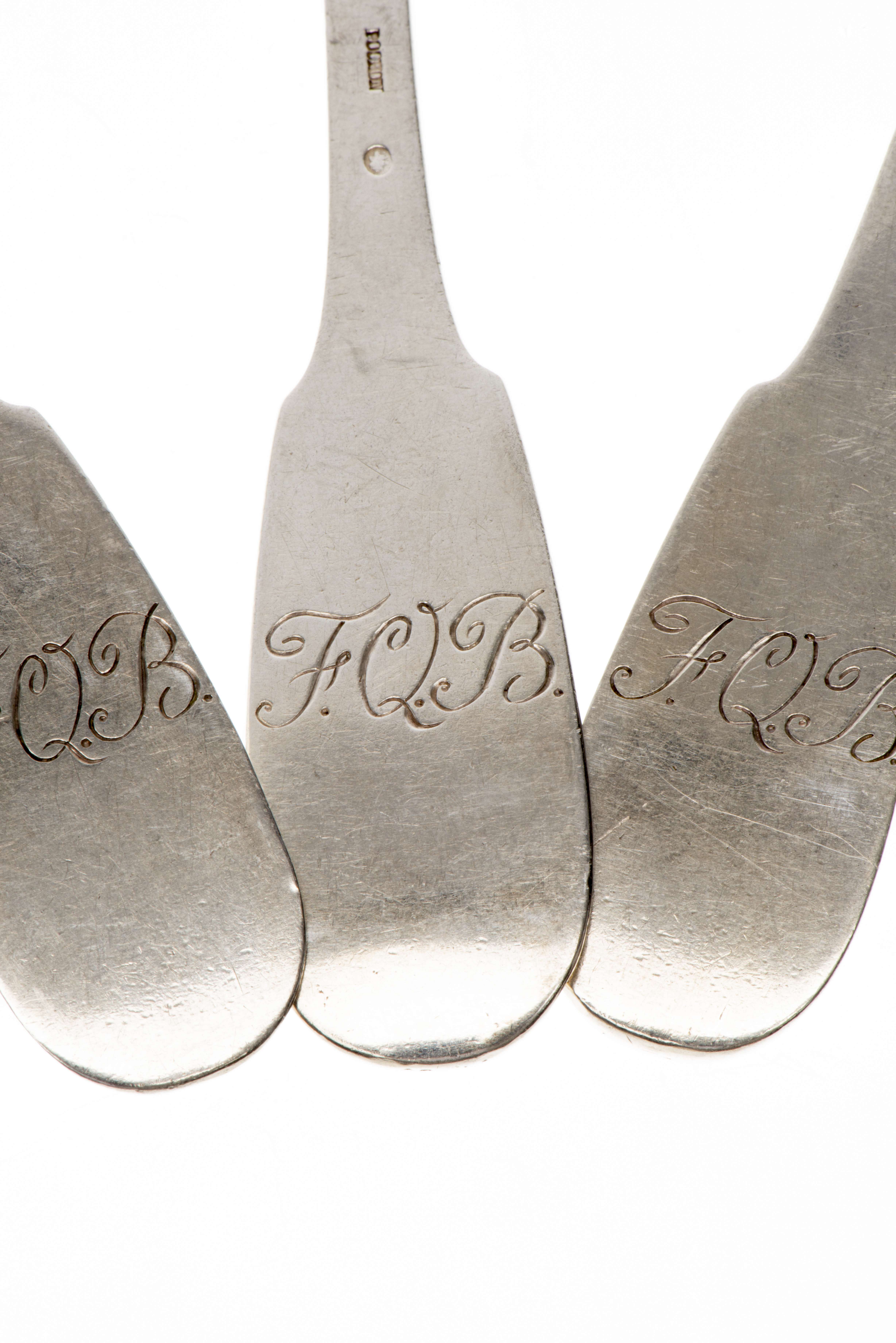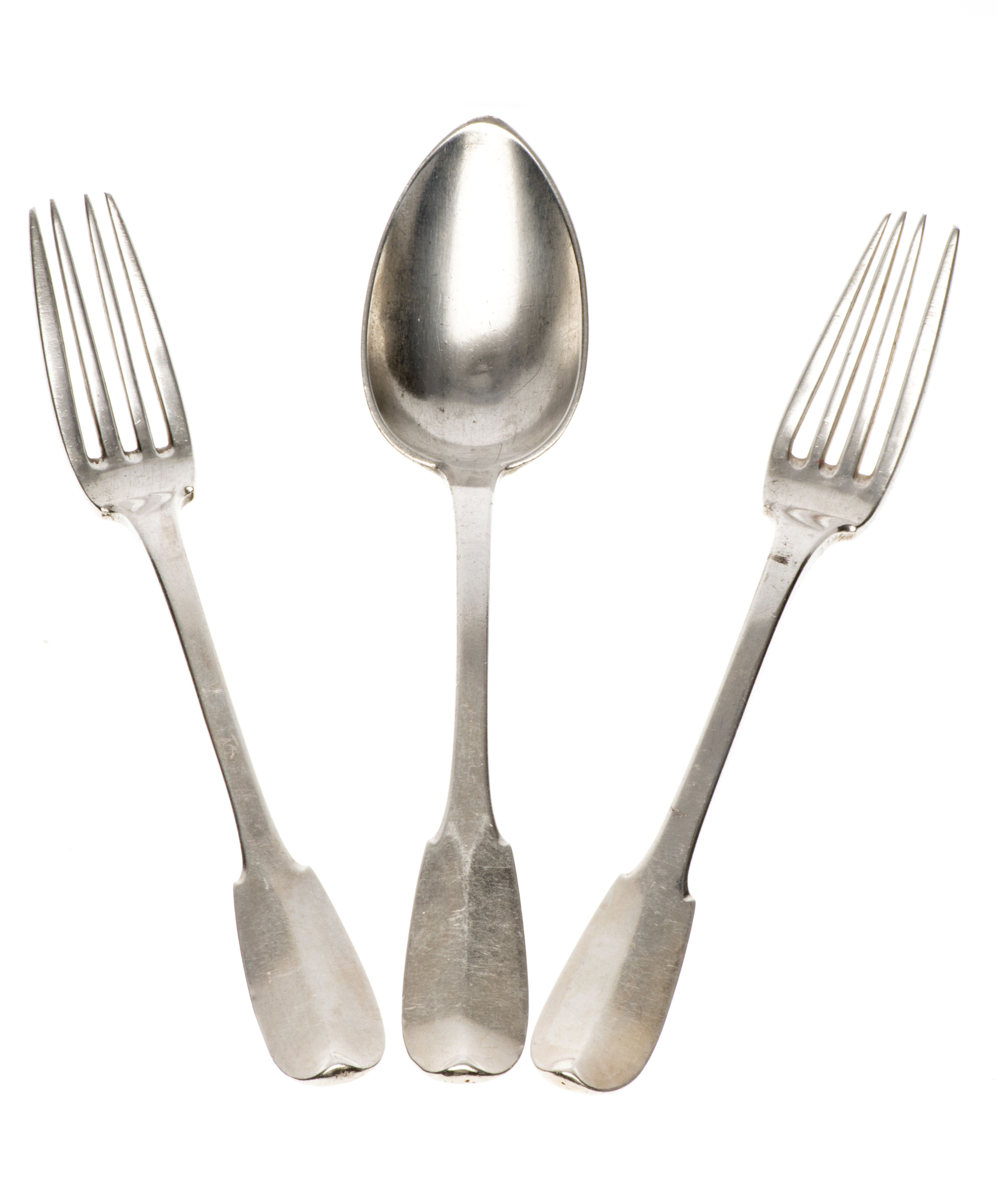 Trois pièces de service en argent .800 par FOCHON monogramme gravé FQB de 2 grandes fourchettes et une grande cuillère à soupe.