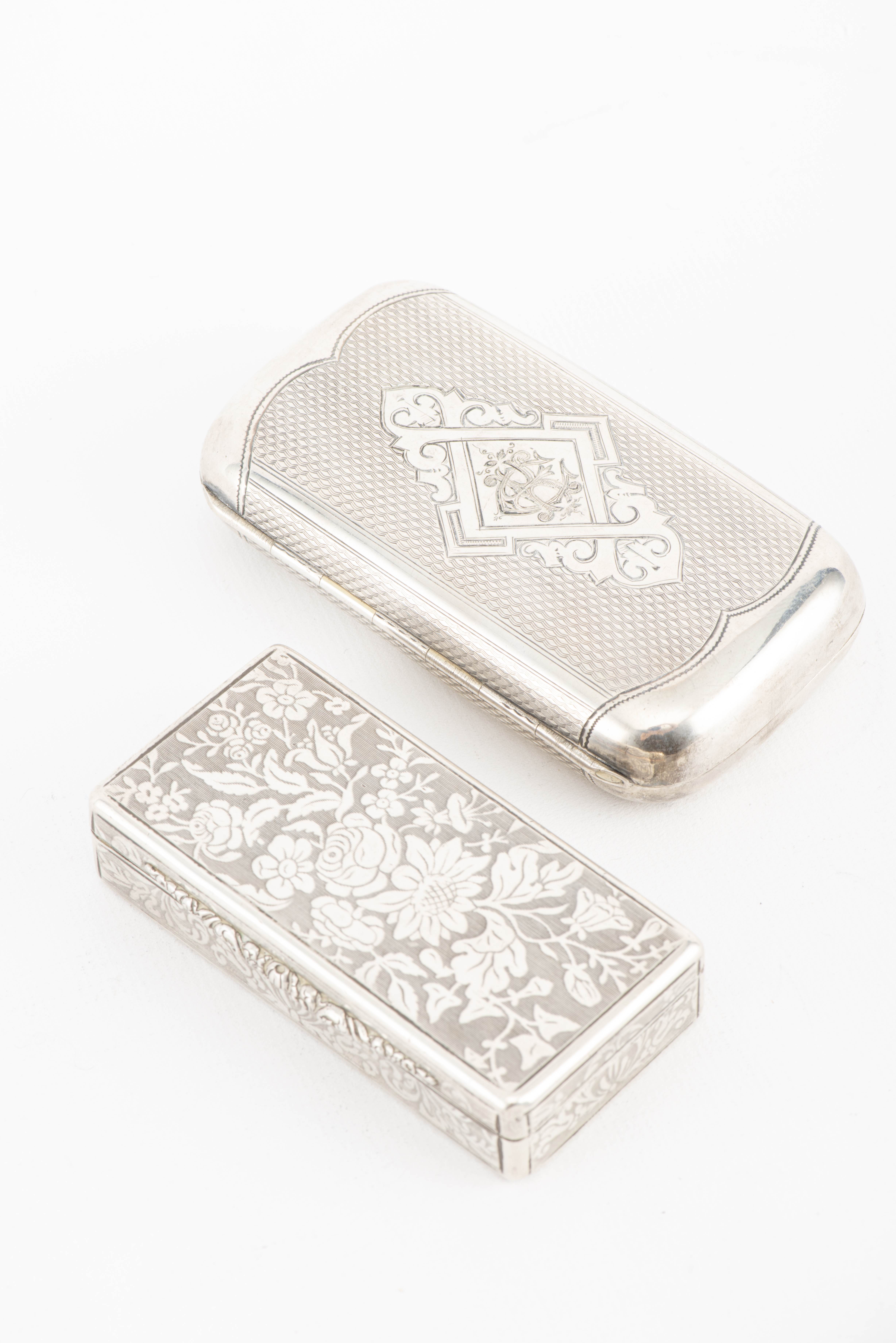 - 1 boîte rectangulaire en argent français 2ème titre, décor extérieur floral, intérieur vermeil. H. 1.7 x 4 x 8.2 cm