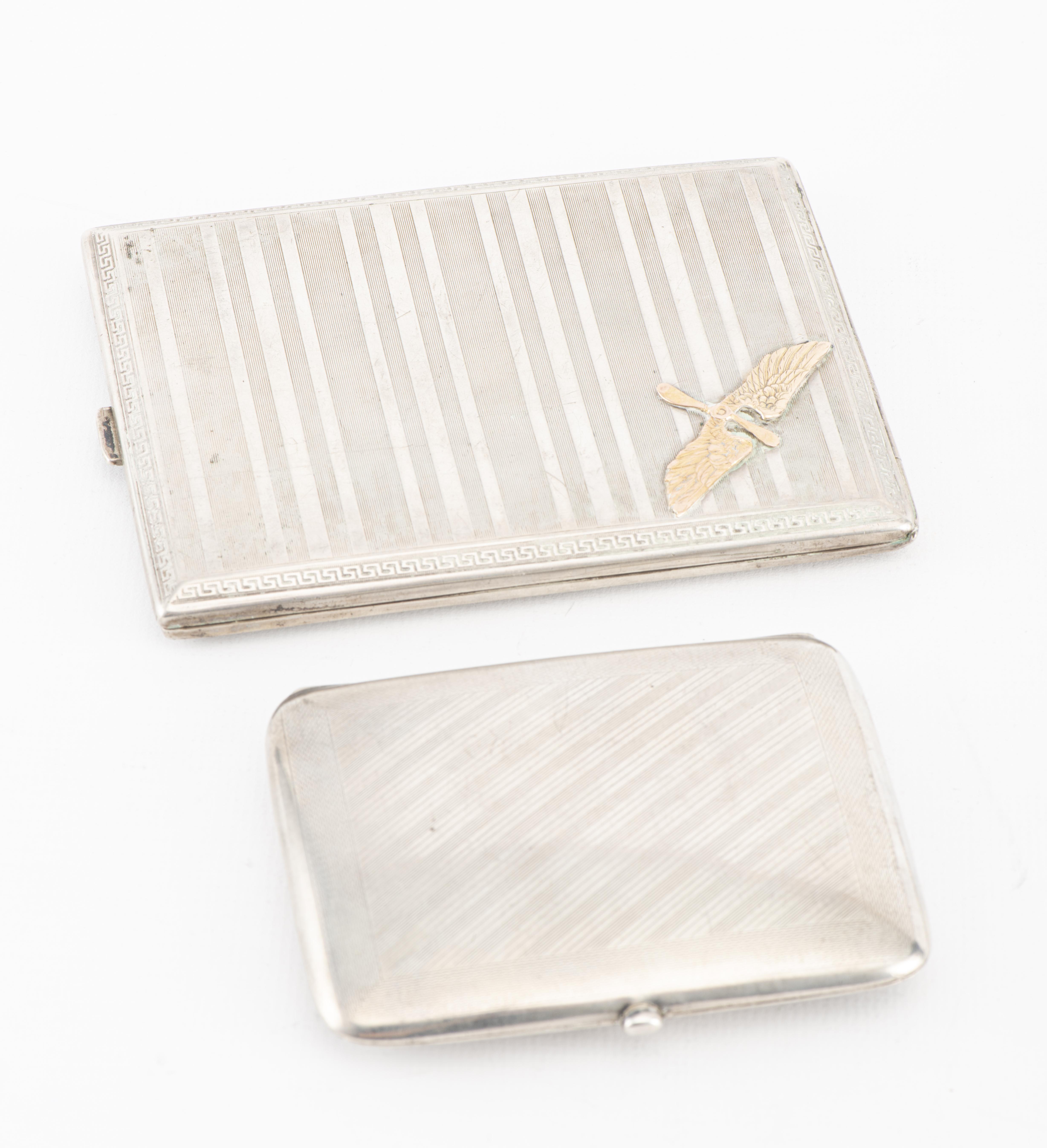 - 1 boîte rectangulaire en argent .800 allemand, intérieur vermeil avec multiples dédicaces. H. 1 x 11.5 x 8.5 cm