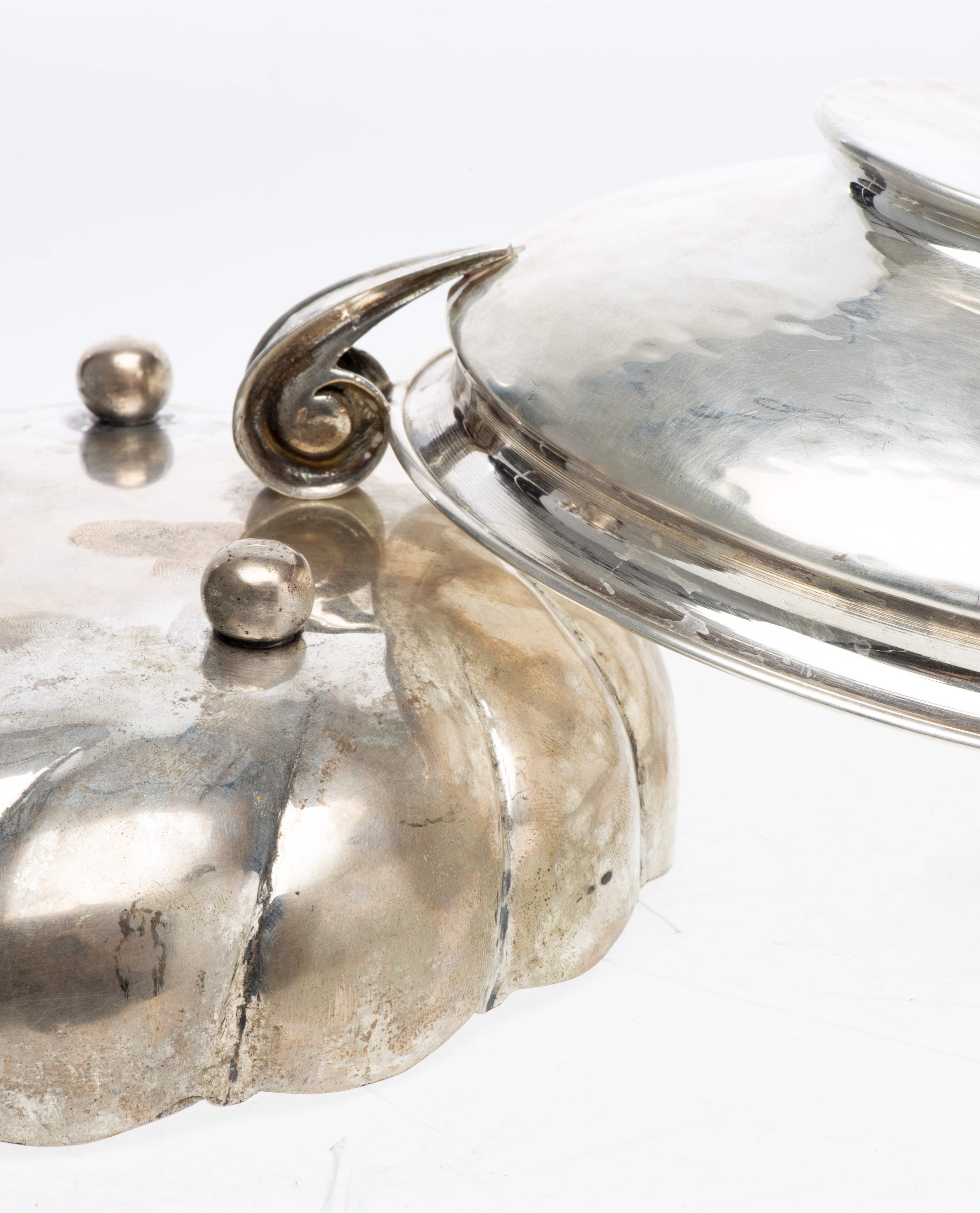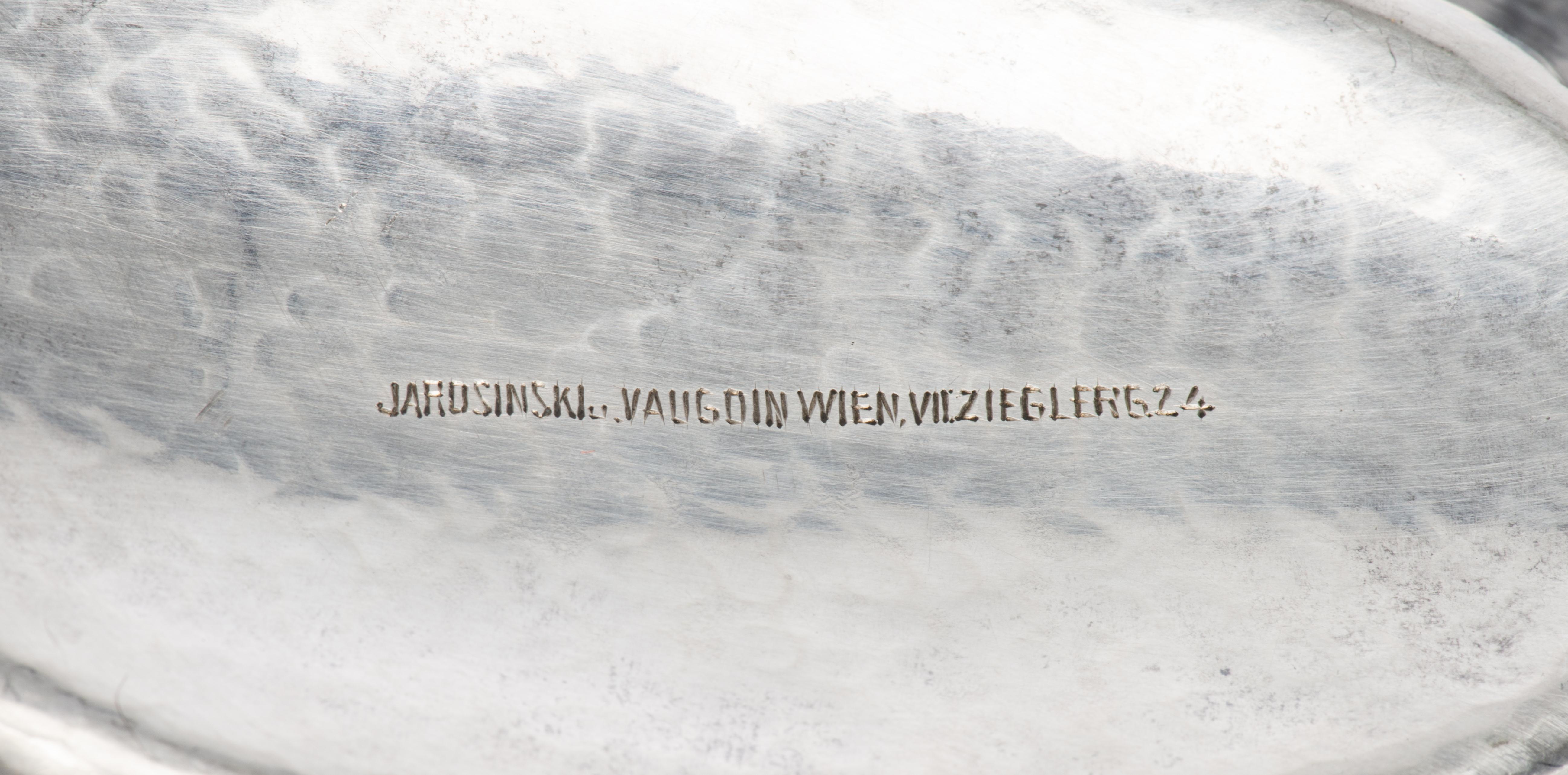 - 1 coupe en argent martelé .800. marqué "JAROSINSKI & VAUGOIN WIEN" L : 17 cm l : 13 cm