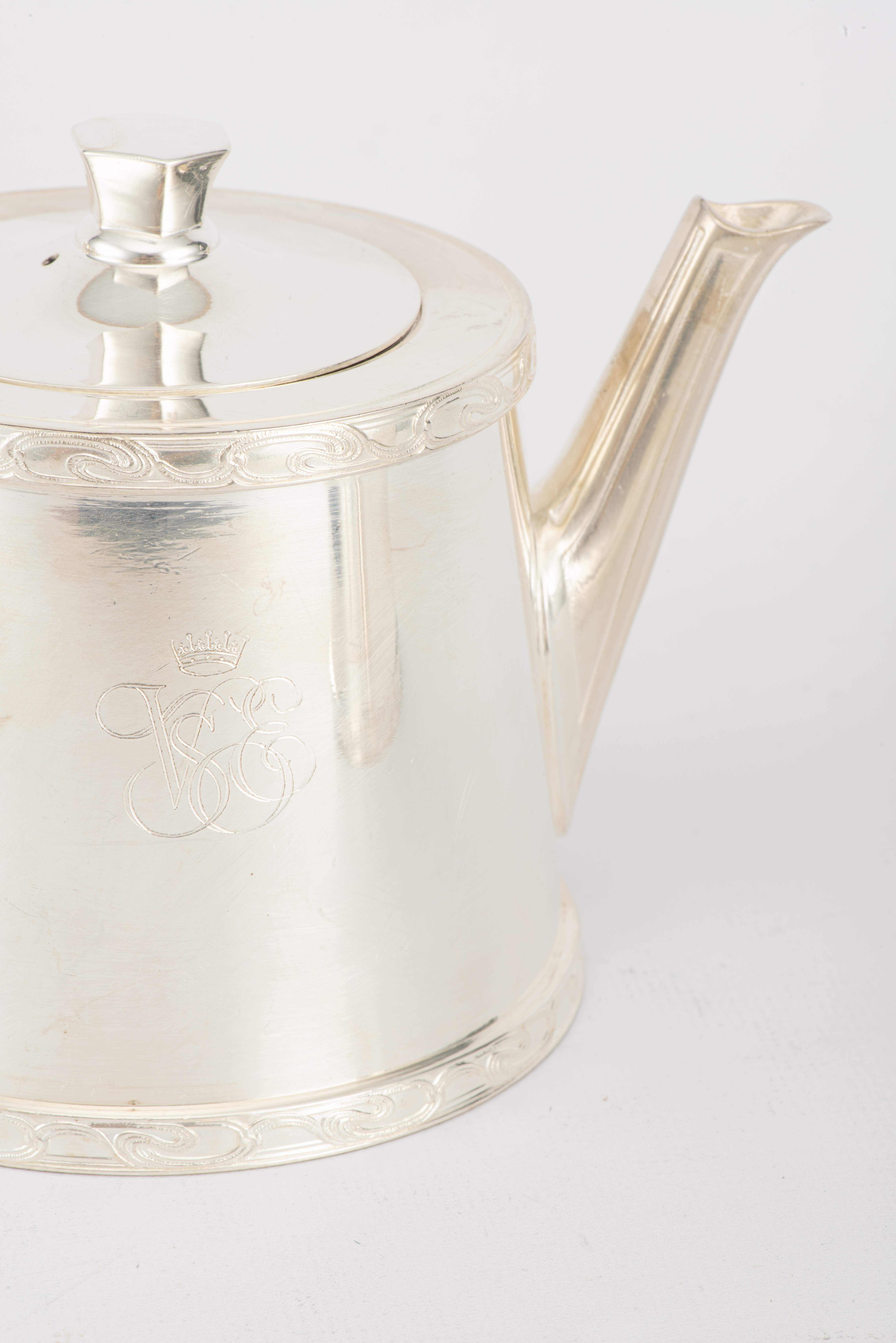 ERCUIS, service à thé et café en métal argenté de l'Orient Express, monogrammé, comprenant :