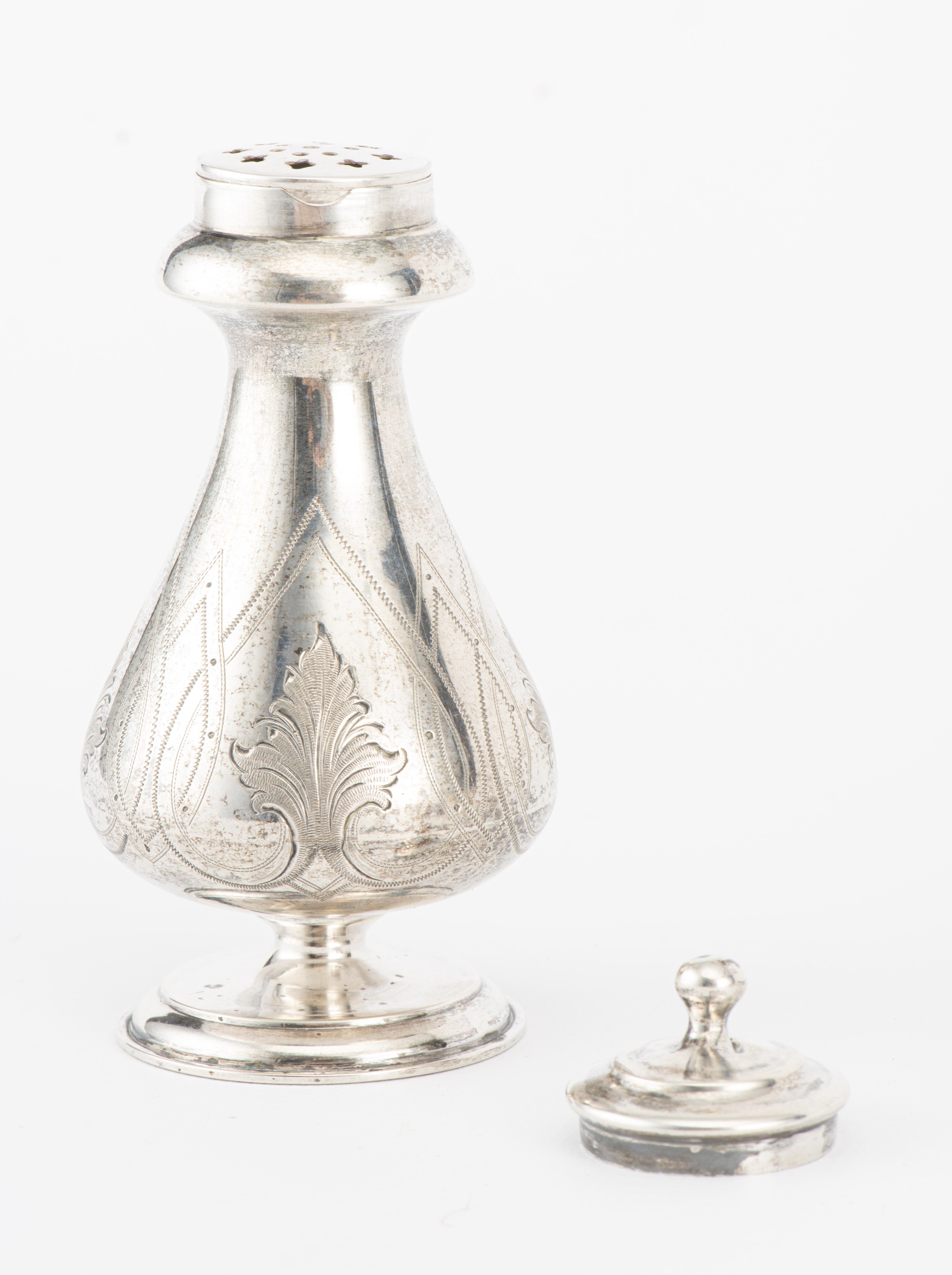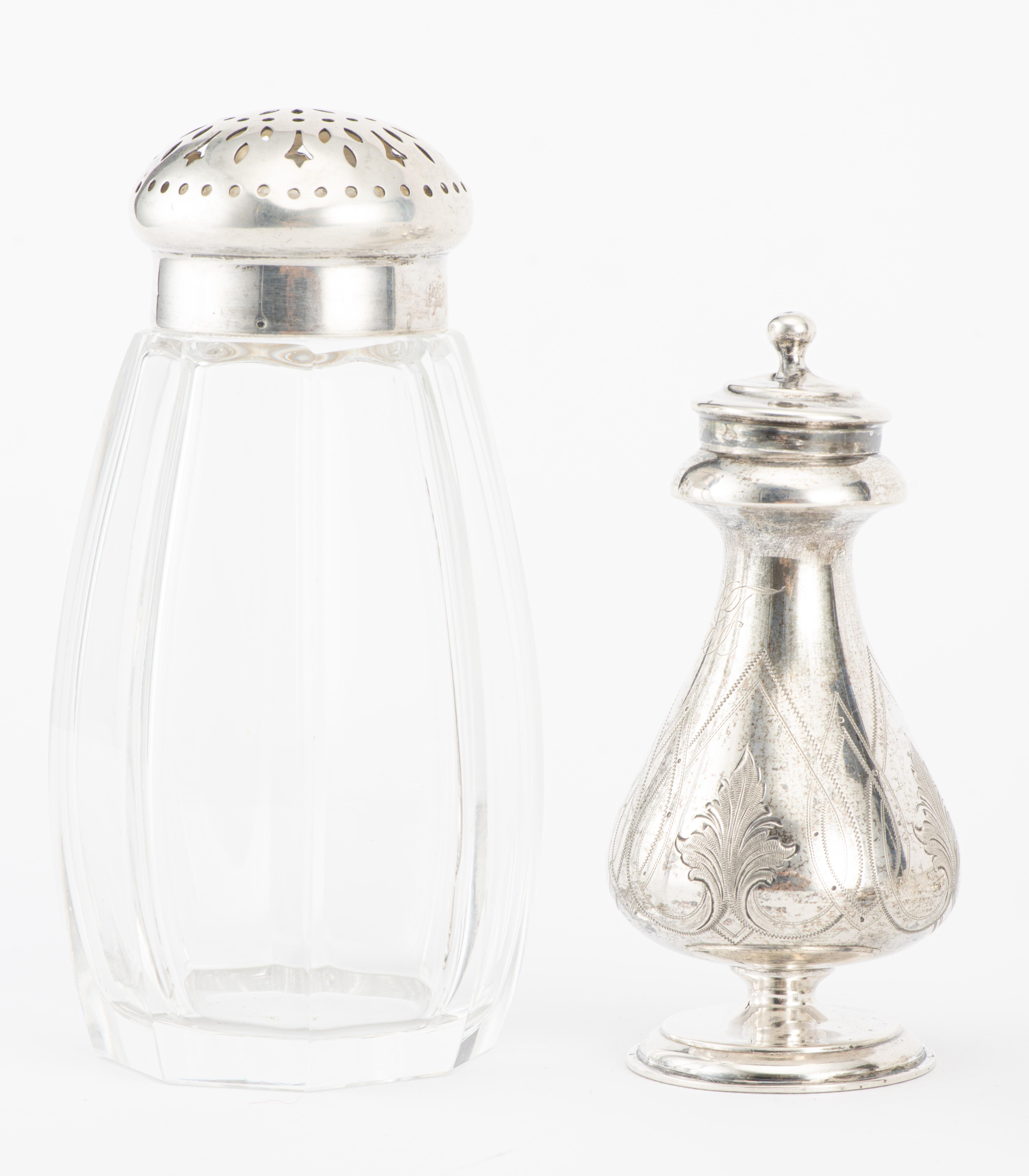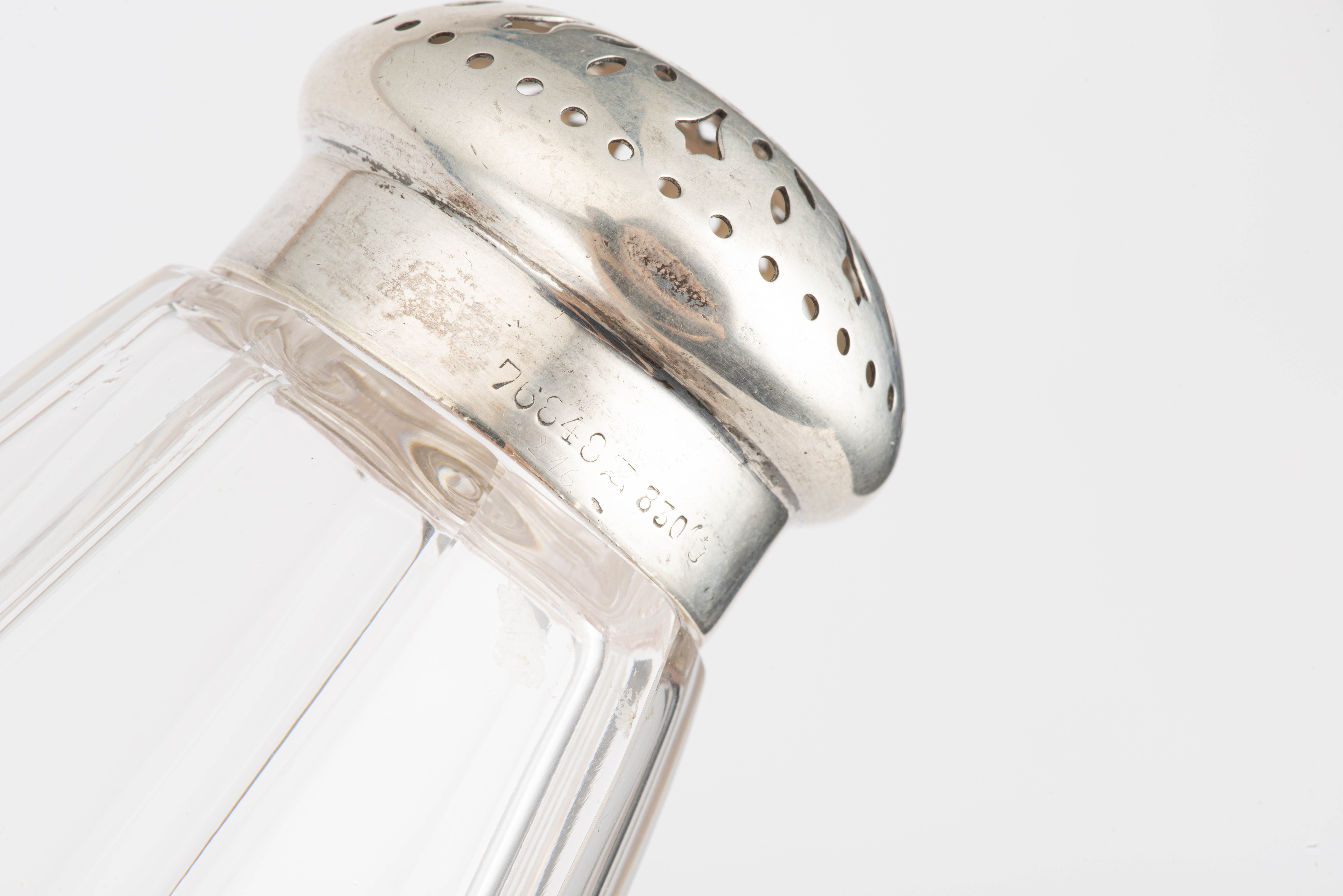 - saupoudroir en cristal taillé avec couvercle en argent allemand .830. H. 14 cm