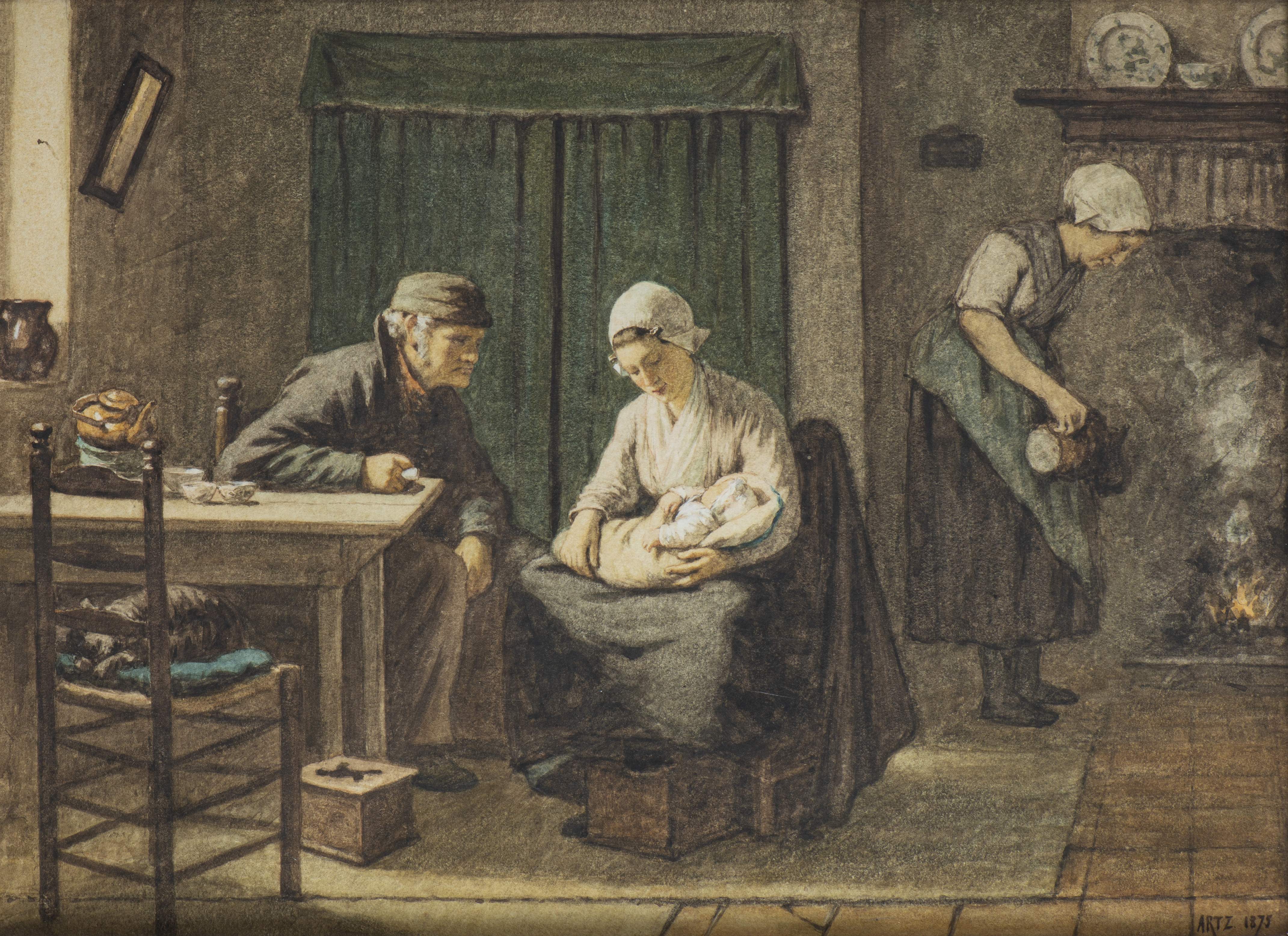 David Adolf Constant Artz (1837-1890), "La famille", aquarelle sur papier signé en bas à droite Artz et daté 1873