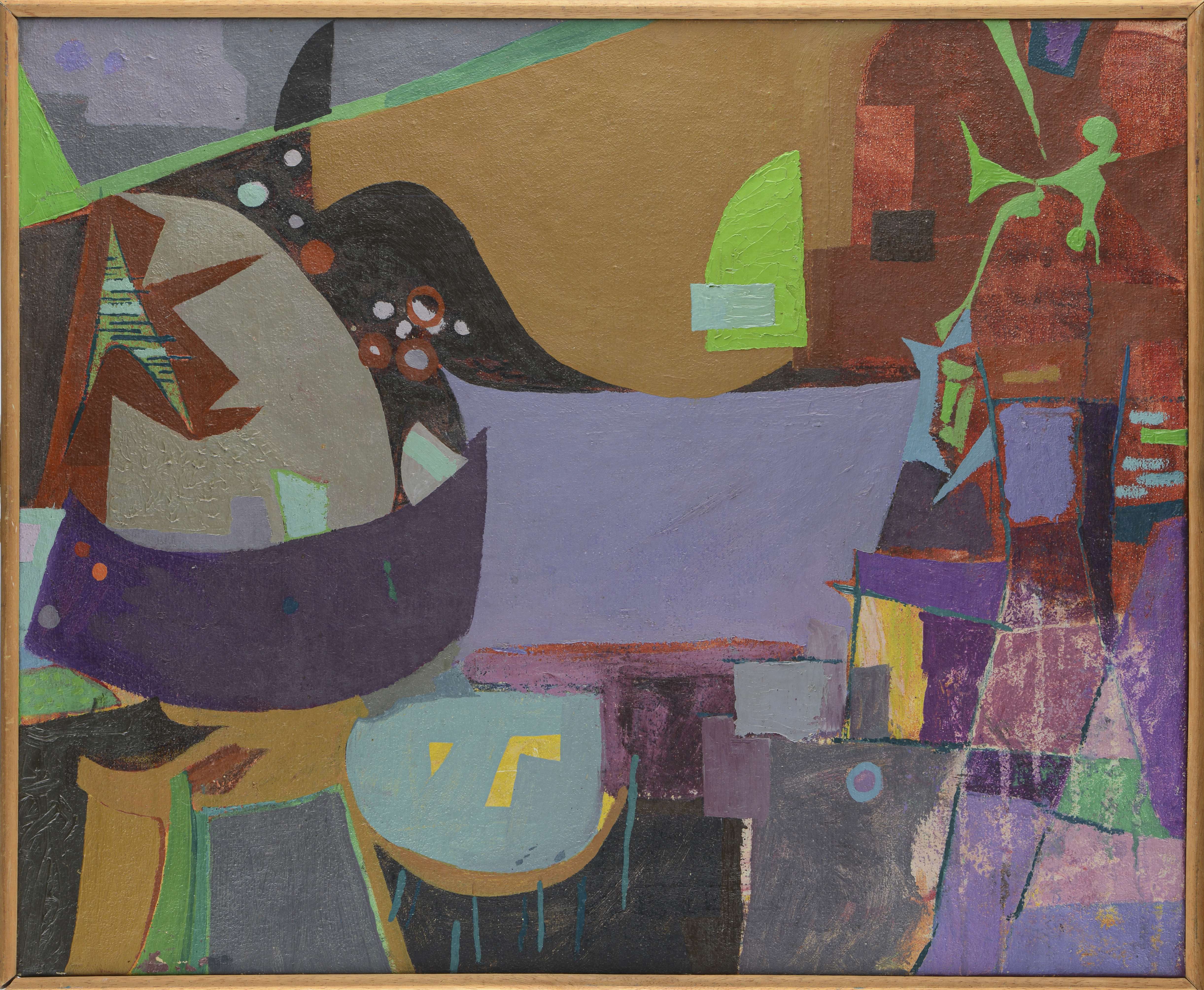 Jean-Claude HESSELBARTH (1925) "Composition", huile sur toile, signé et daté 55 au dos sur le chassis