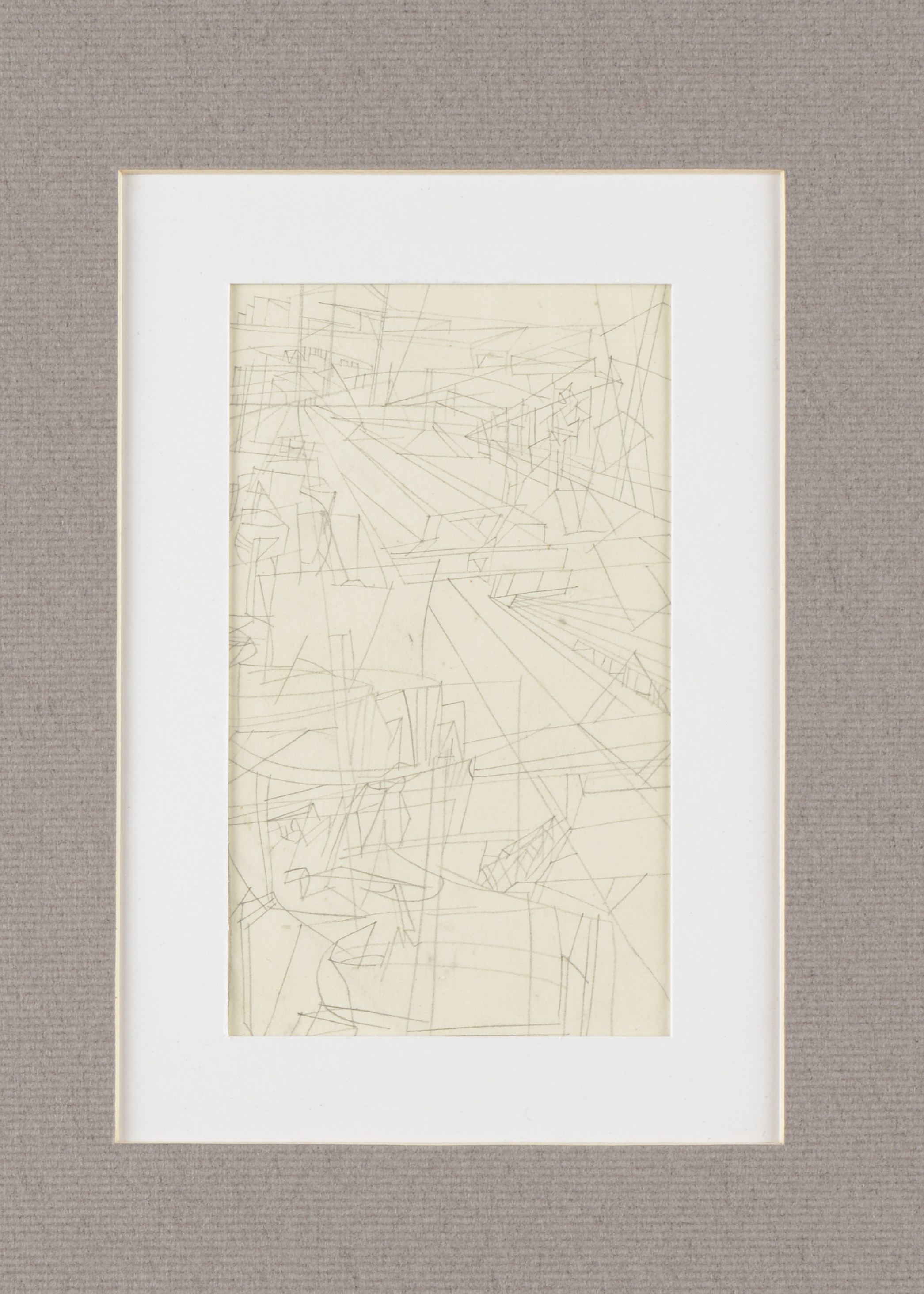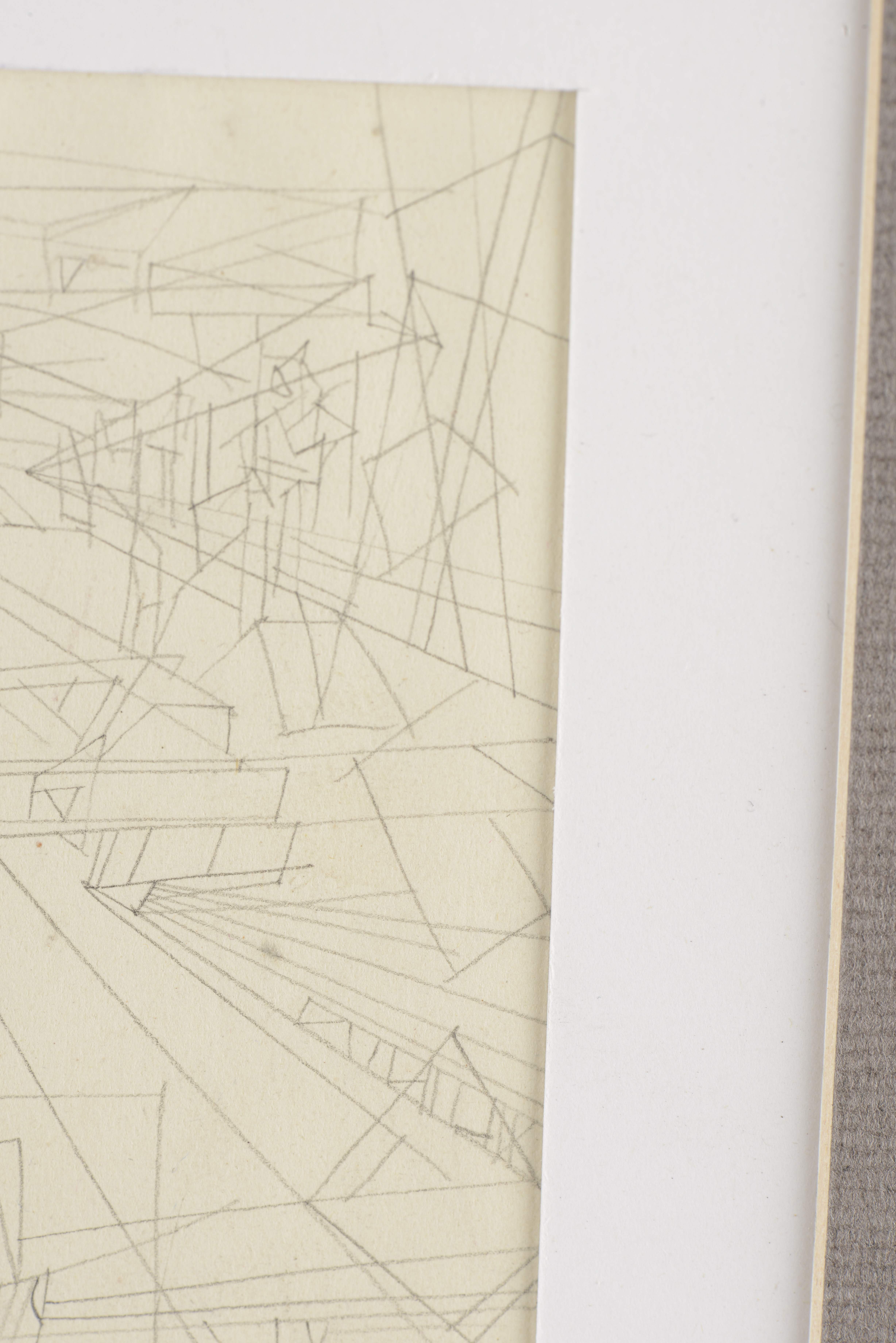 "Le long du rail", étude, crayon sur papier, signé en bas au milieu en dessous du dessin J.S., daté à droite 28.1.50, 12.5 x 7 cm à vue