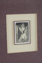 "Tête de femme", crayon lithographique sur papier, circa 1942, non signé et non daté