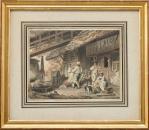 "La petite fête imprévue" lithographie rehaussée à l'aquarelle et signée dans la planche en bas à gauche. 1785
