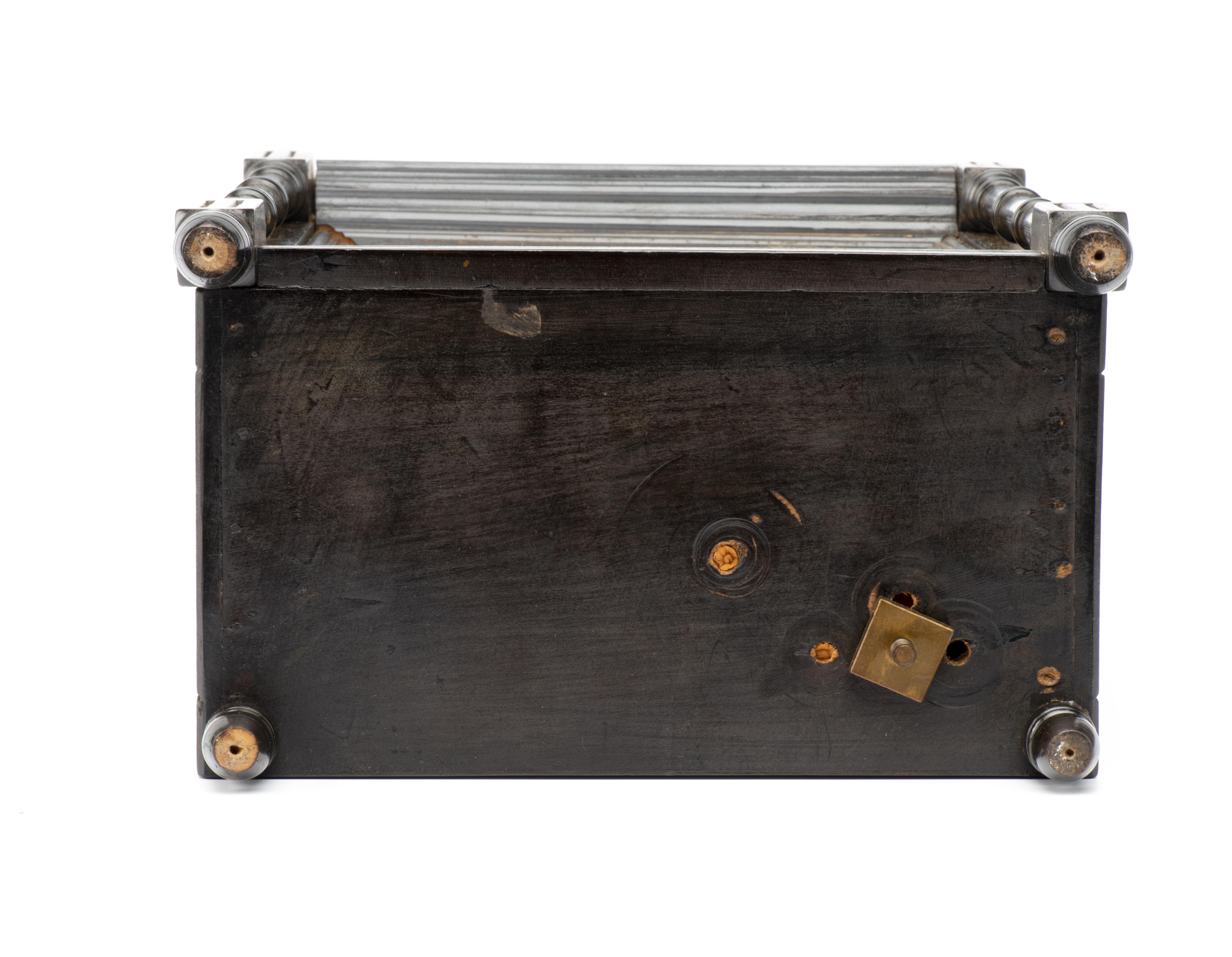 Horloge de table à cadran en laiton et caisse en bois noirci. Mouvement XIXe