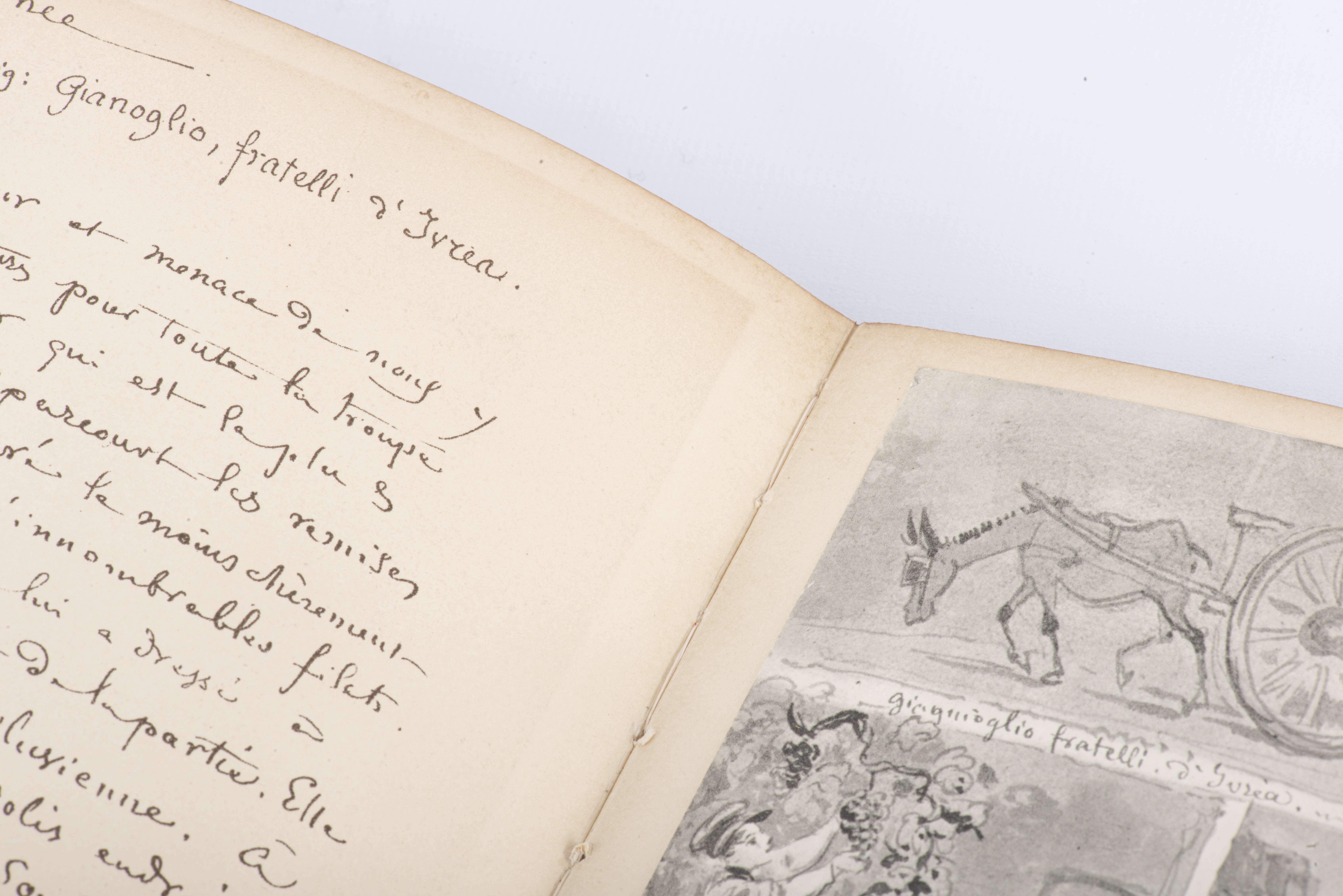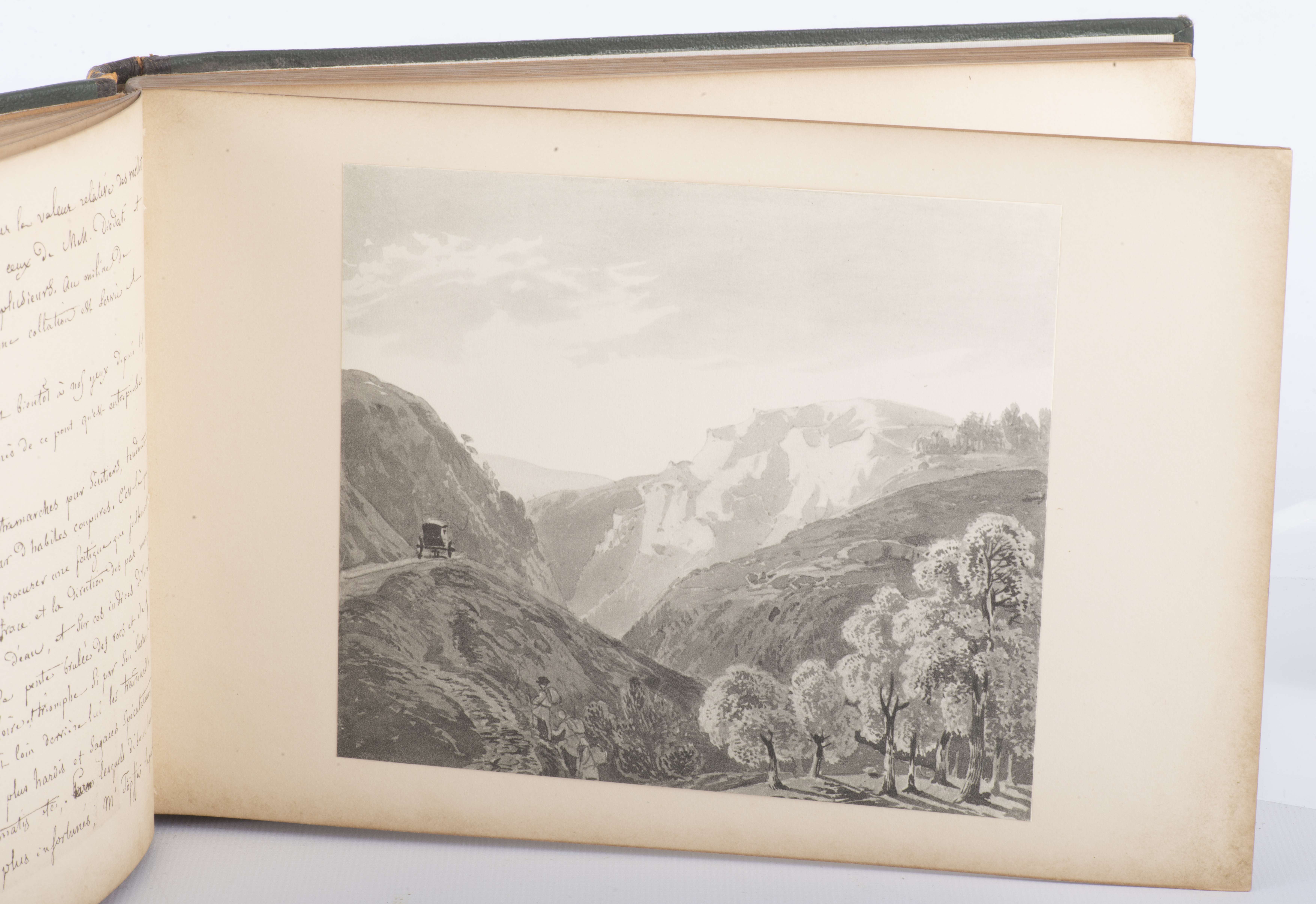 Rodolphe TOPFFER, Carnet de voyage decrivant 16 journées, 46 pages autographiées illustrées par 15 lithorgaphies, format oblong reliure percaline verte, dos chagrin brun. Édité à 200 exemplaires en 1930.
