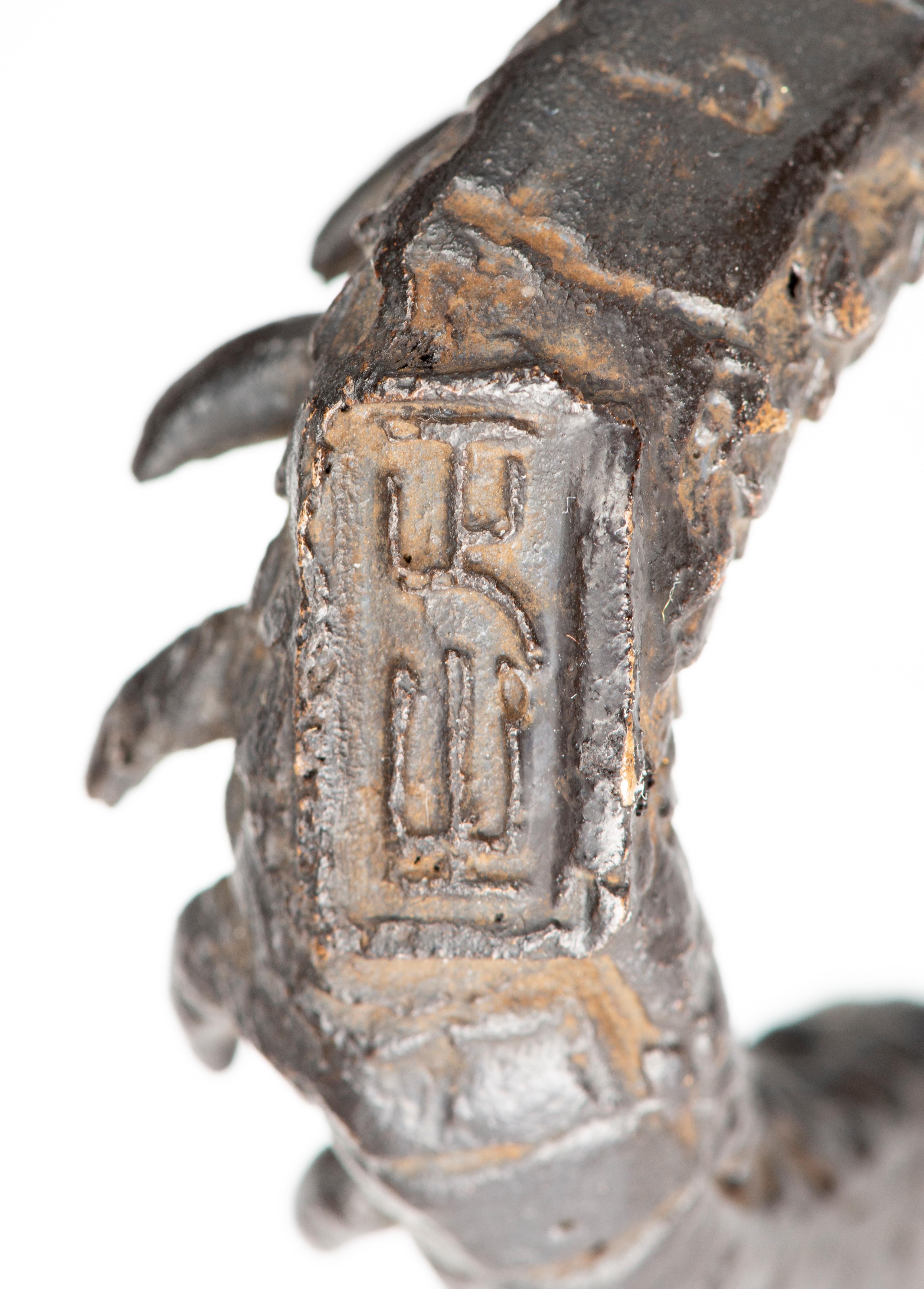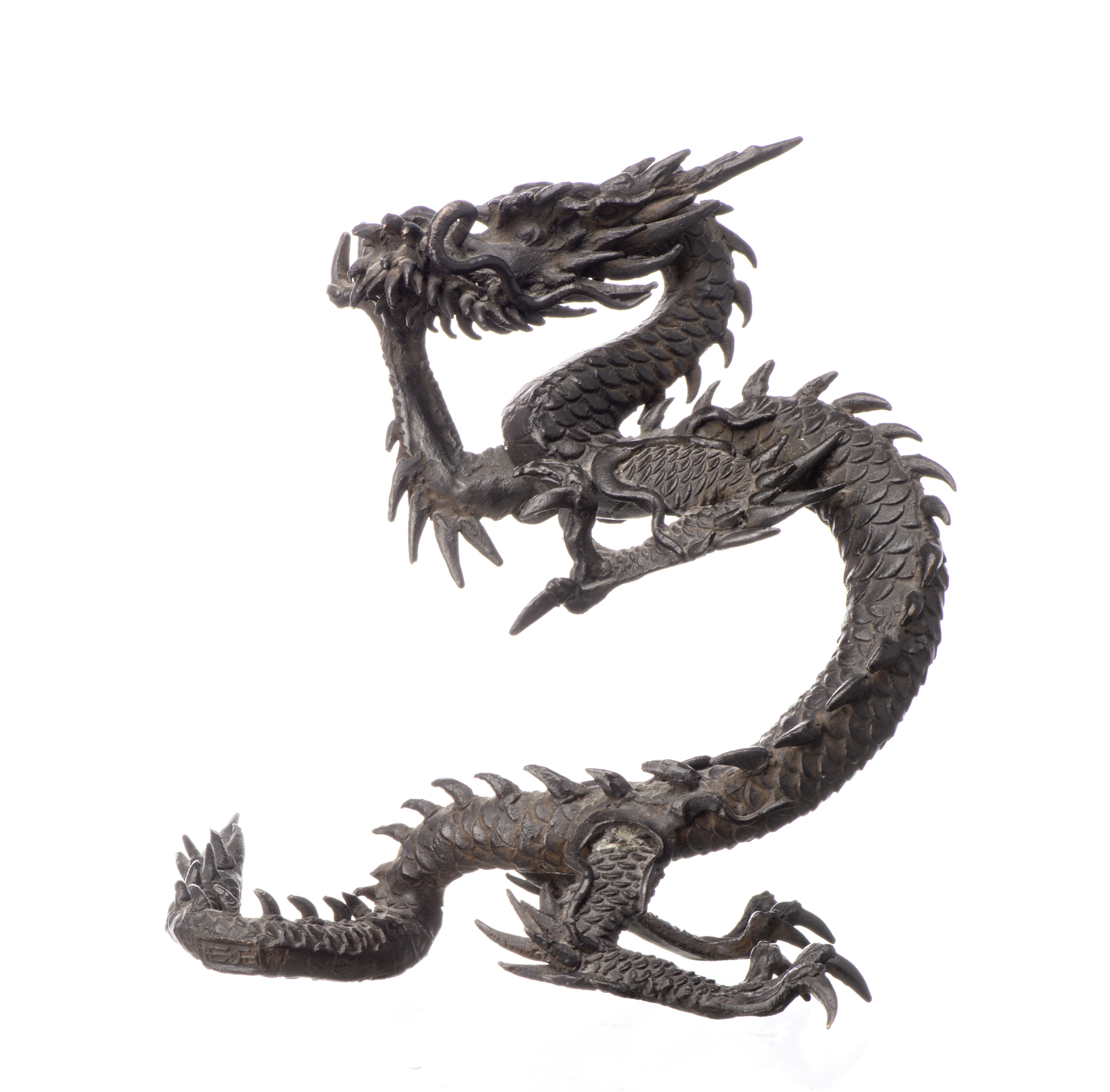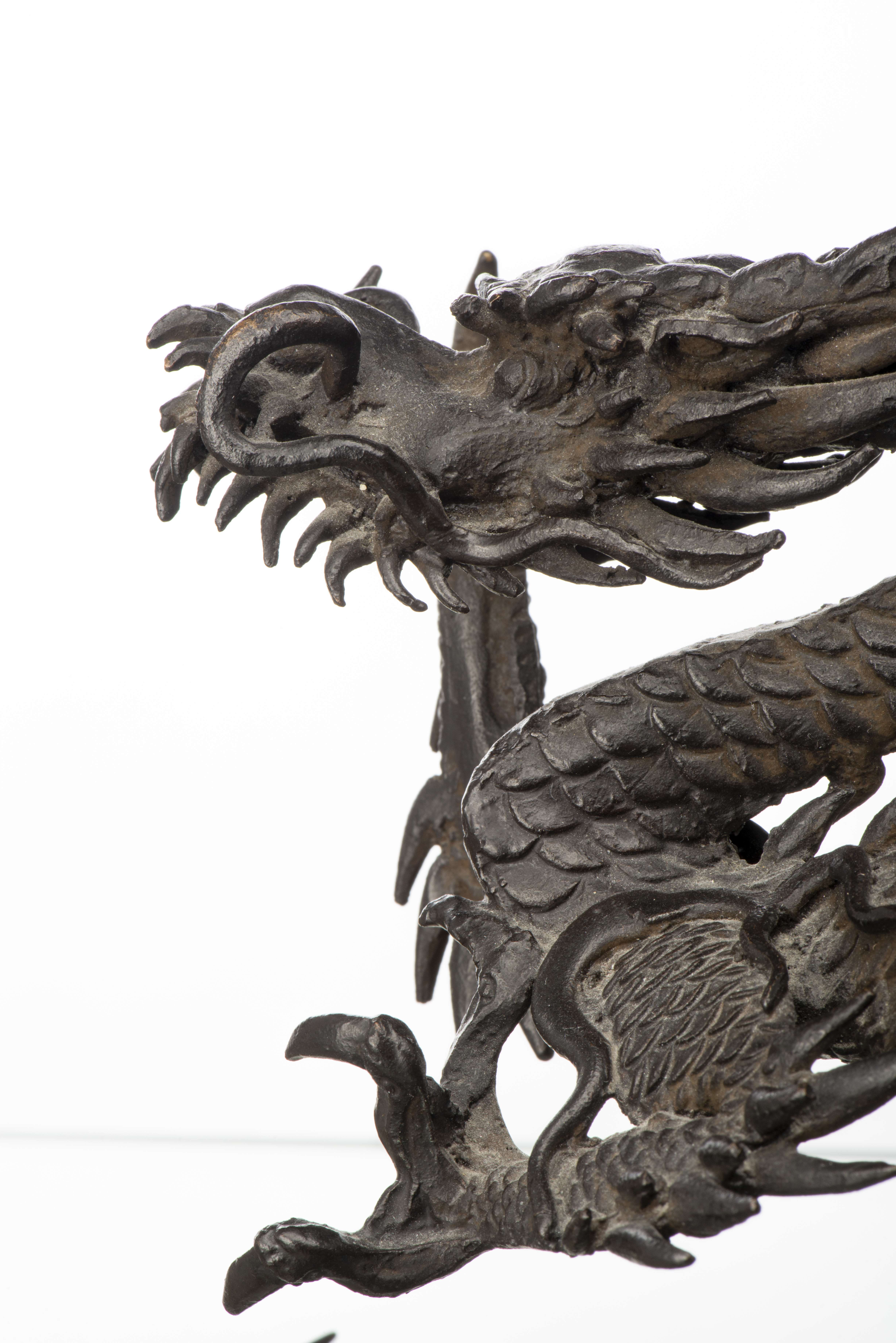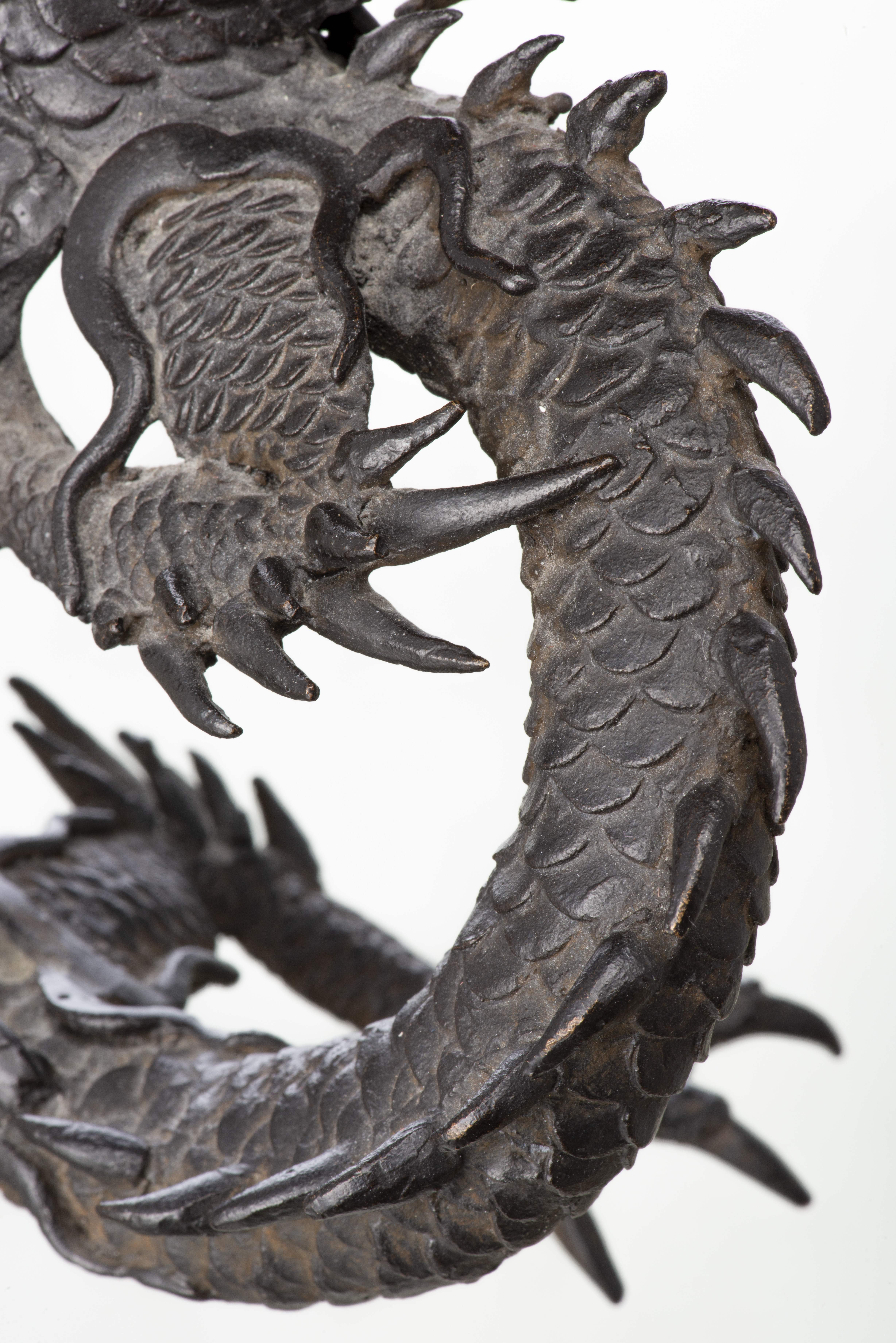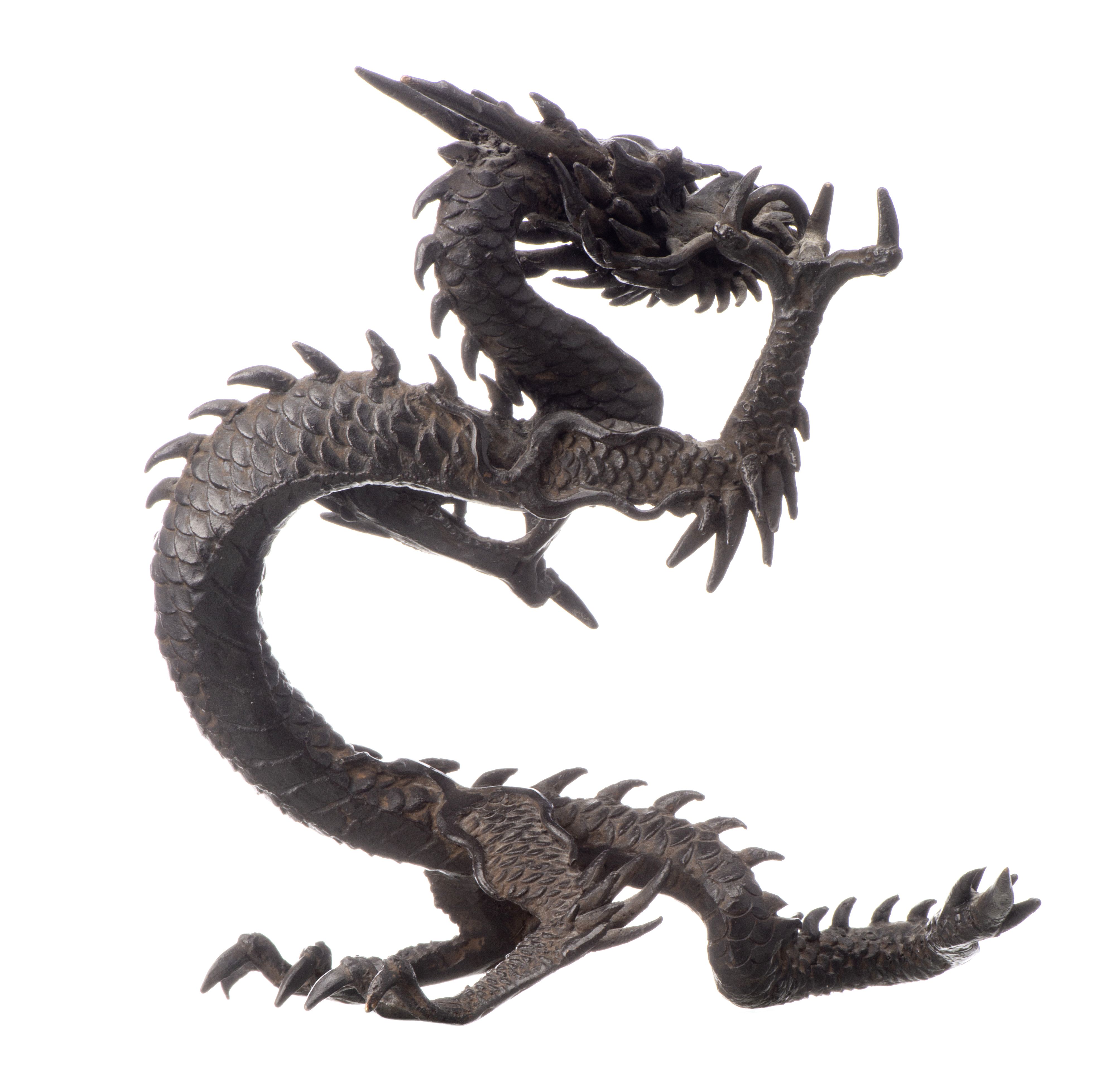 Dragon à 3 griffes en bronze plein du Japon à patine noire. Ere Meiji