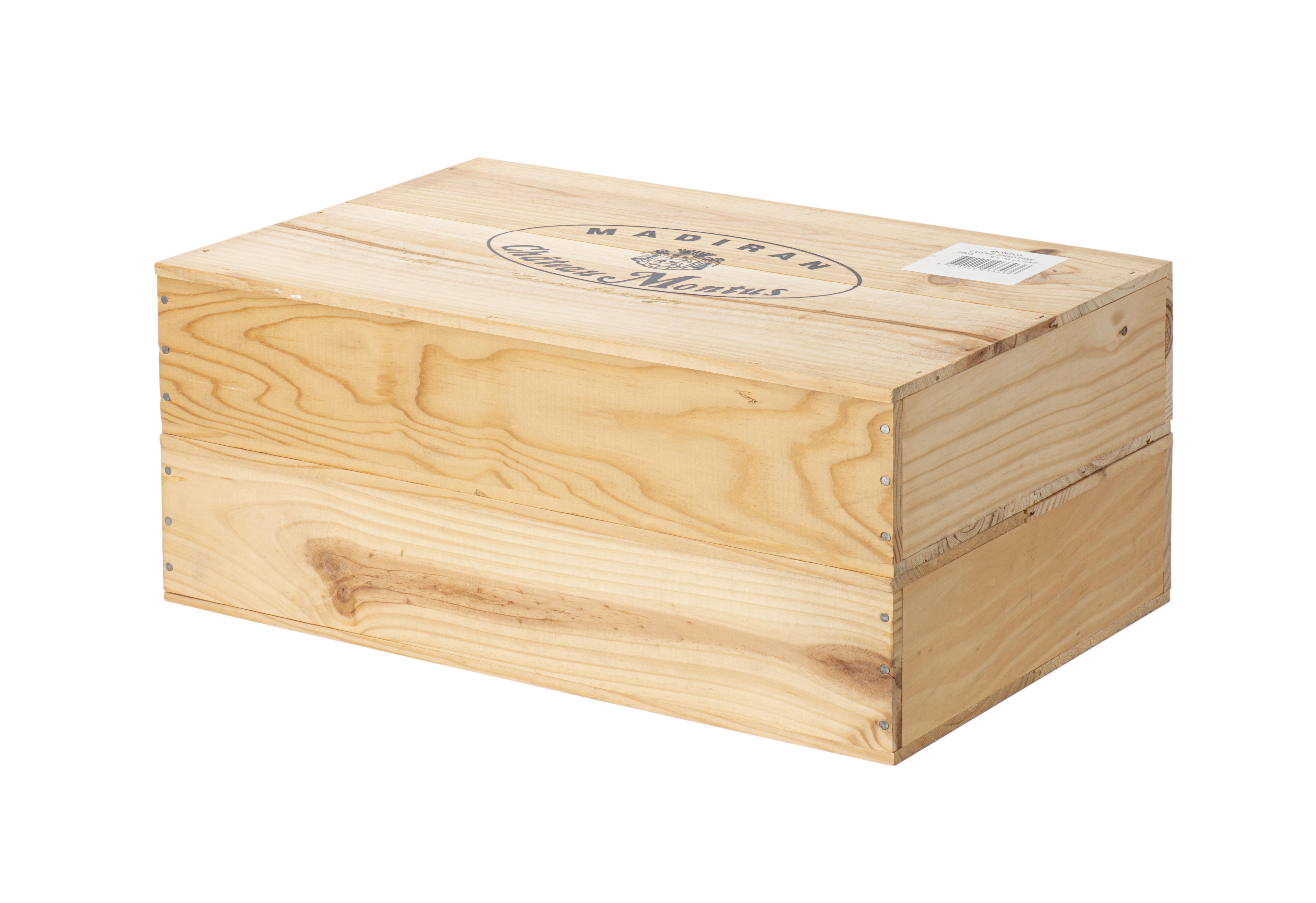 12 bouteilles de 75 cl, 2 caisses en bois.